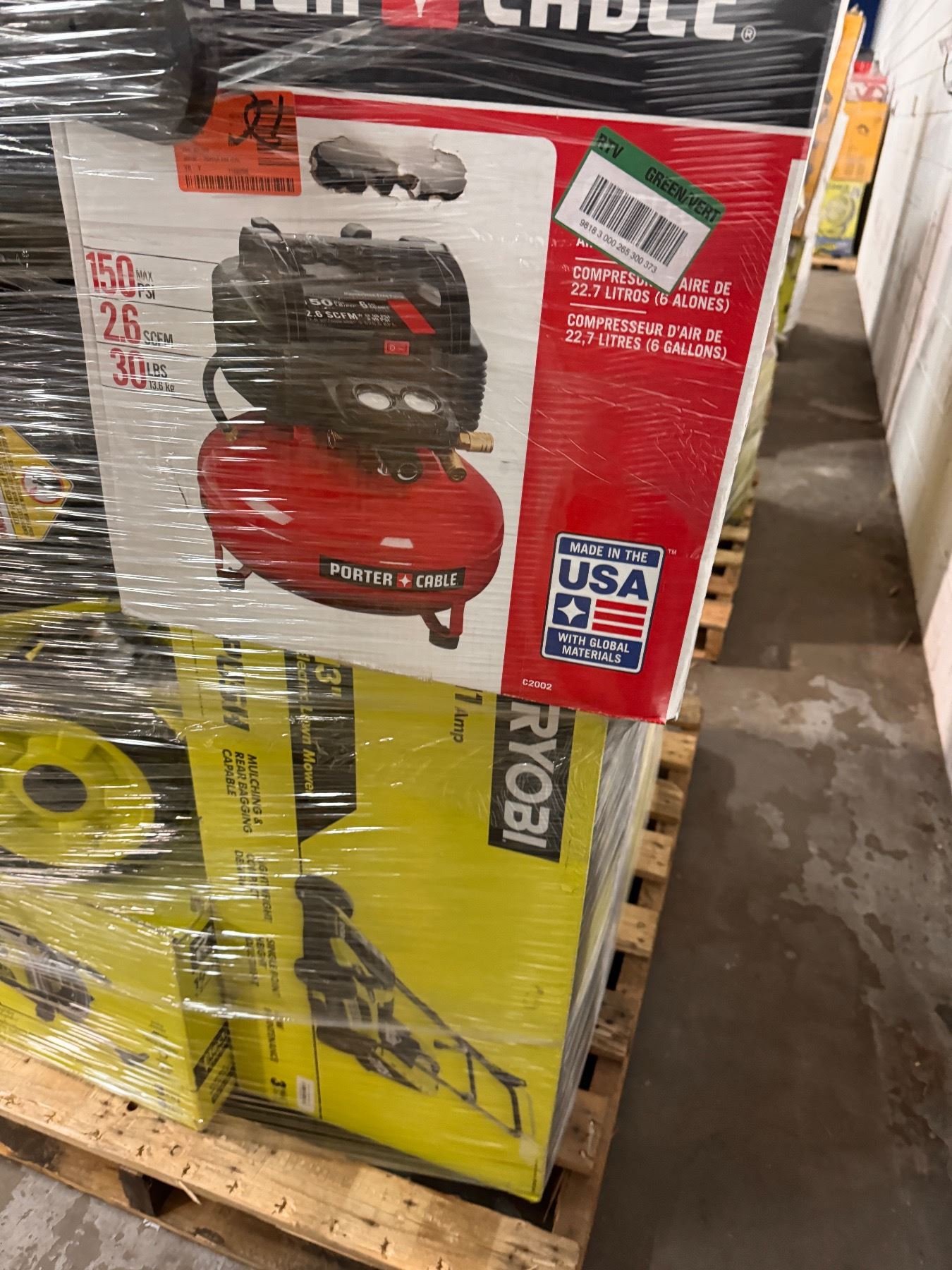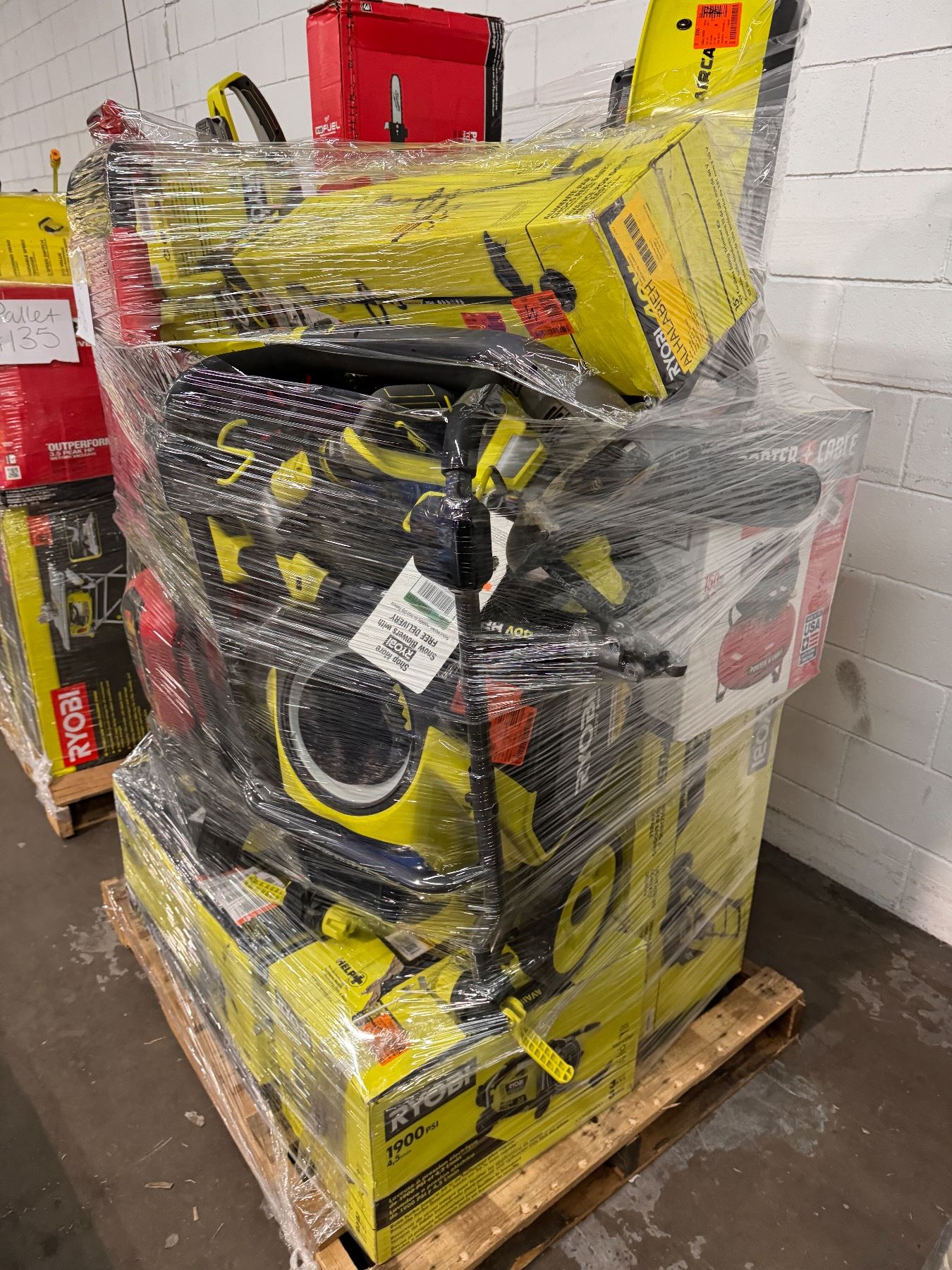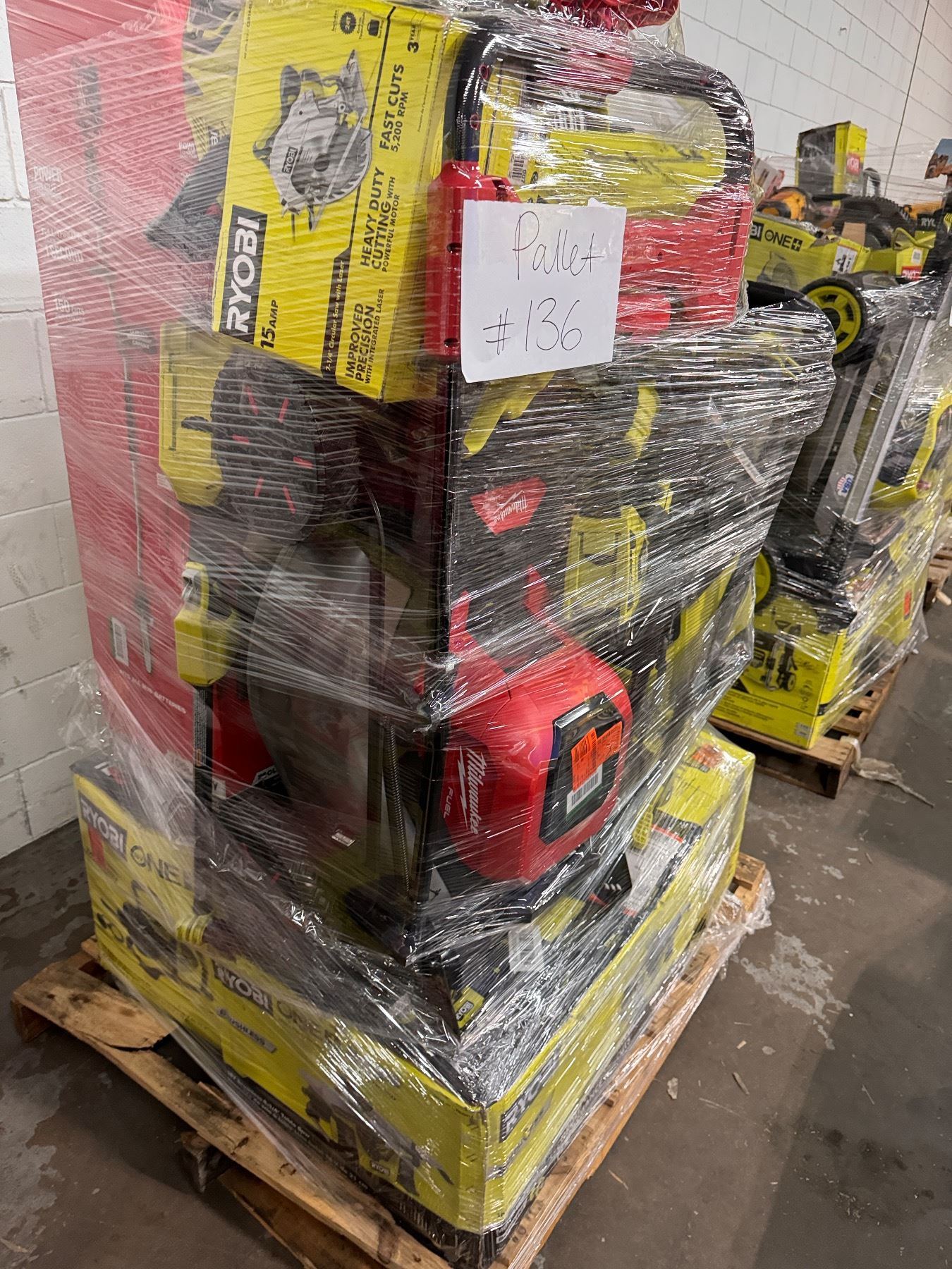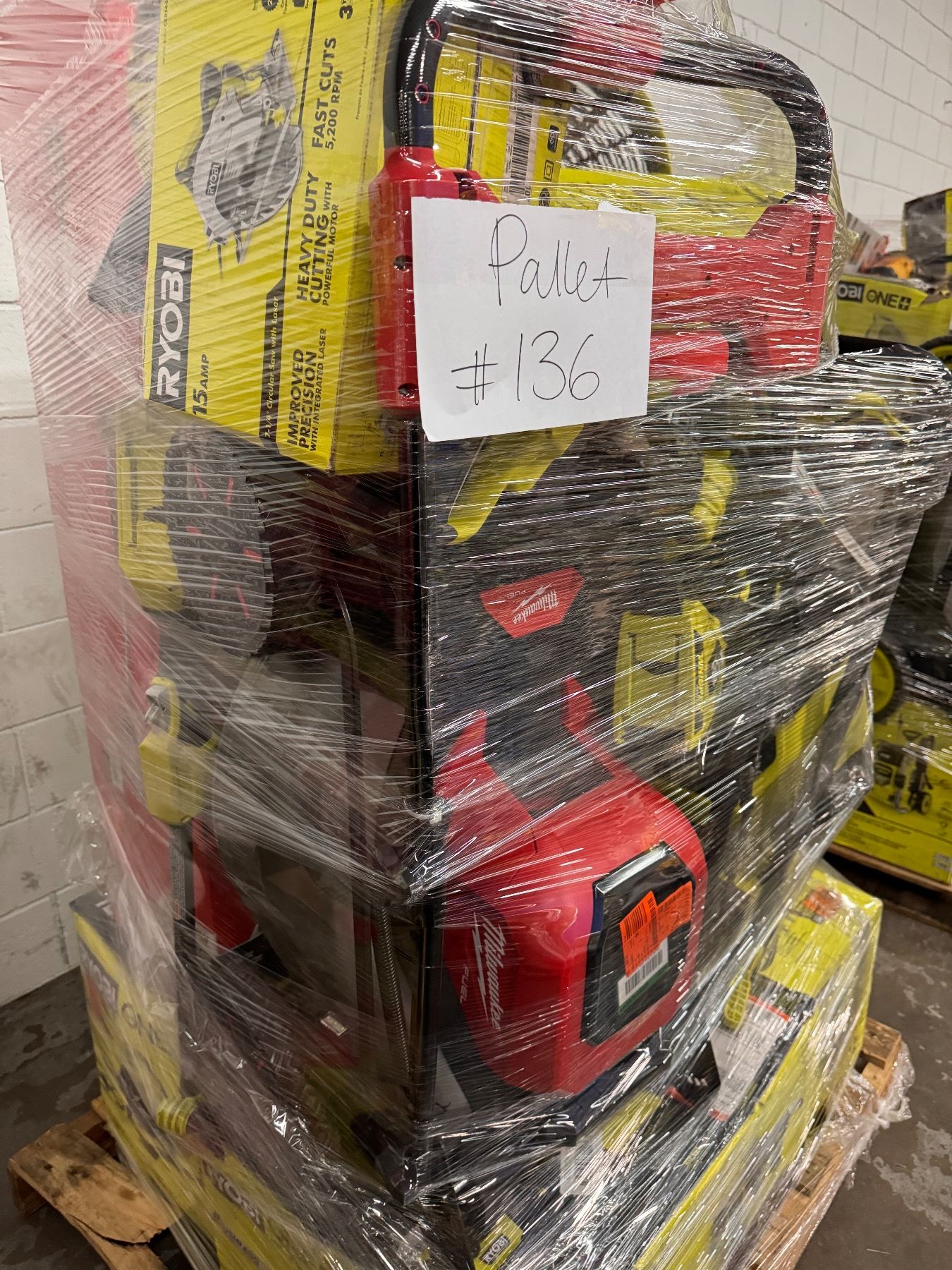 Pallet de Herramienta Home Depot, cada uno de los productos están clasificados como retornos y liquidaciones los cuales pueden venir usados, rotos y incluso completamente nuevos, apueste con responsabilidad y a lo que usted mire.