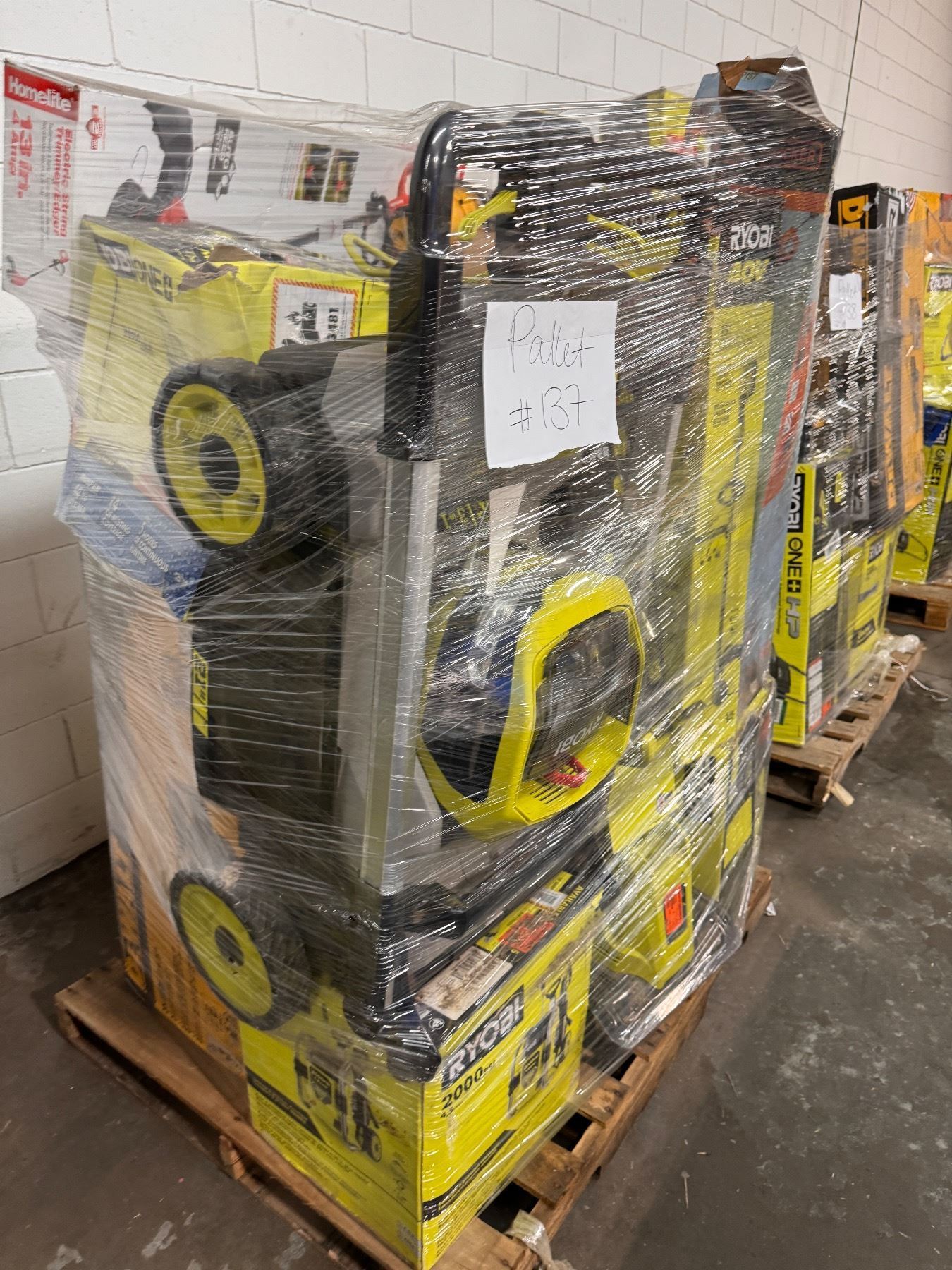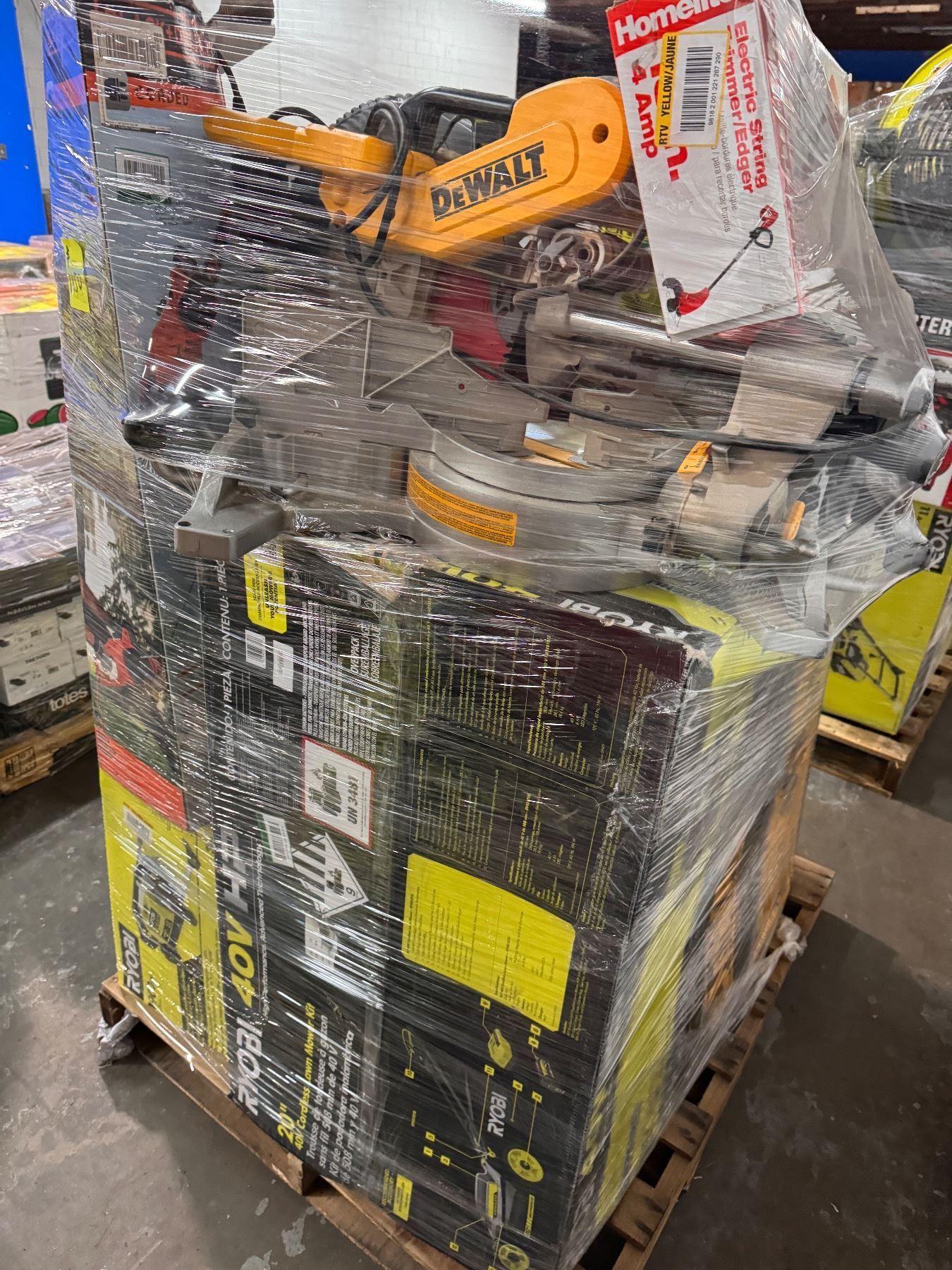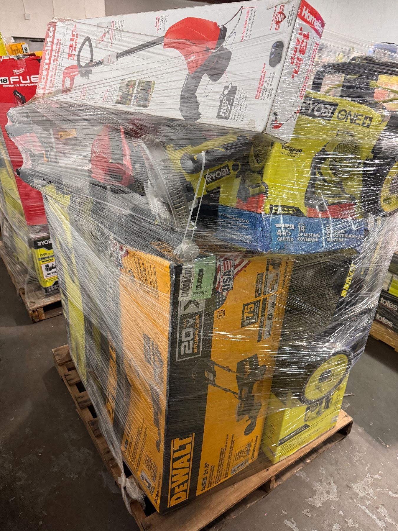 Pallet de Herramienta Home Depot, cada uno de los productos están clasificados como retornos y liquidaciones los cuales pueden venir usados, rotos y incluso completamente nuevos, apueste con responsabilidad y a lo que usted mire.