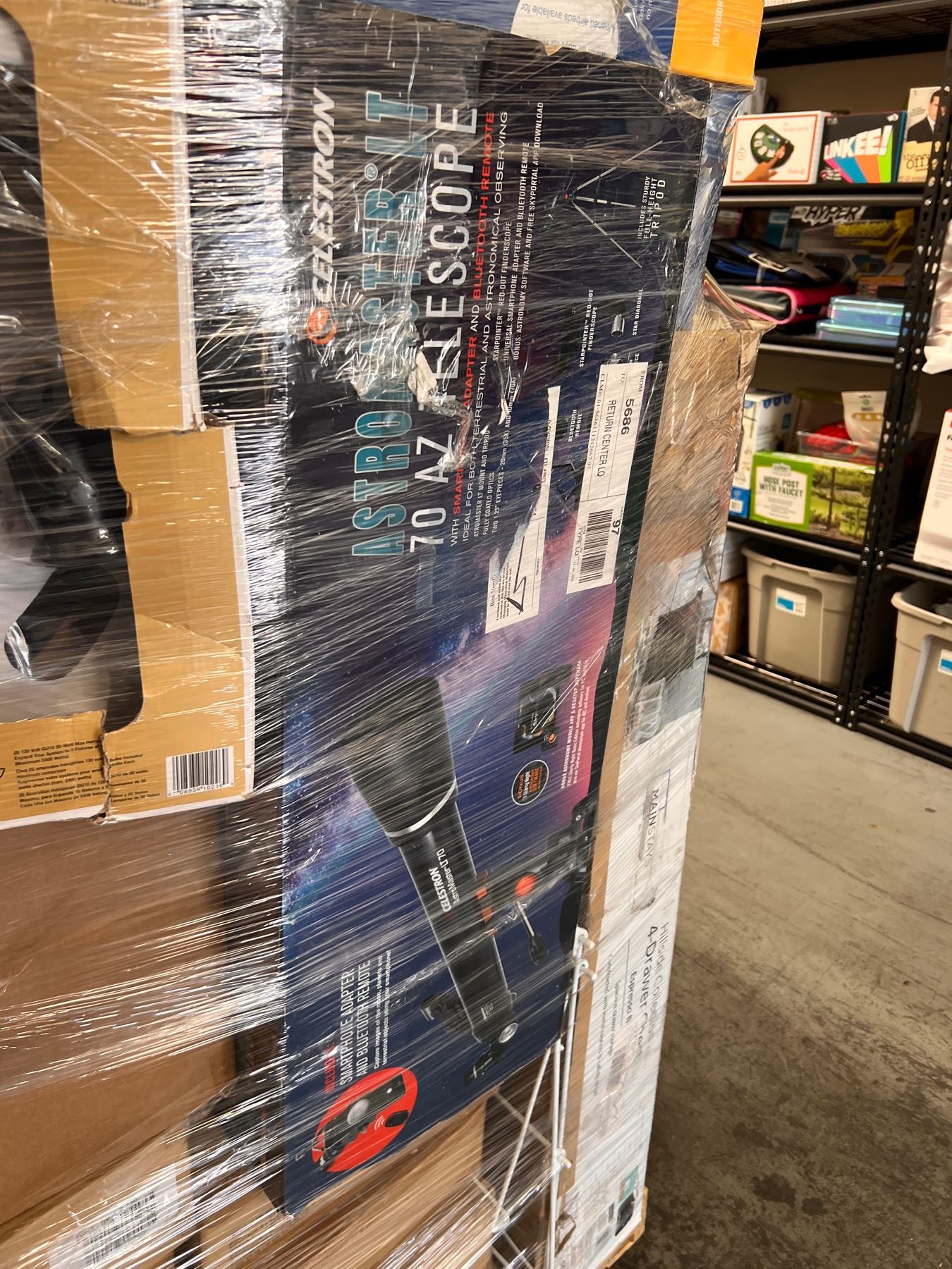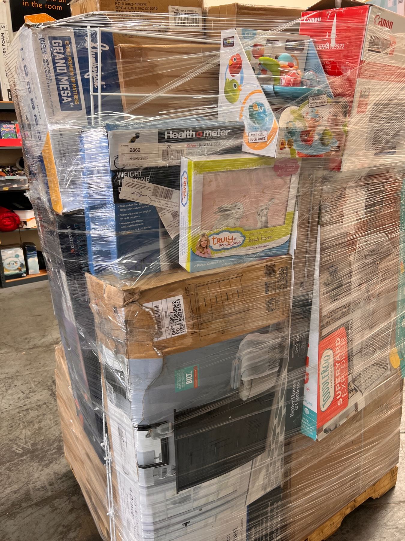 Over 7 ft tall, includes many general merchandise from Walmart such as electronics, returns and liquidations.