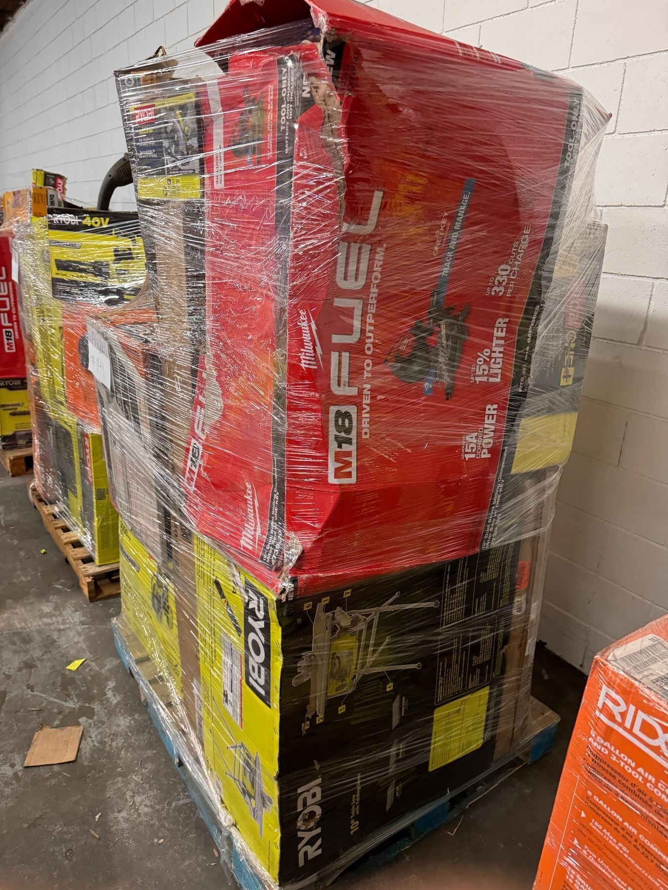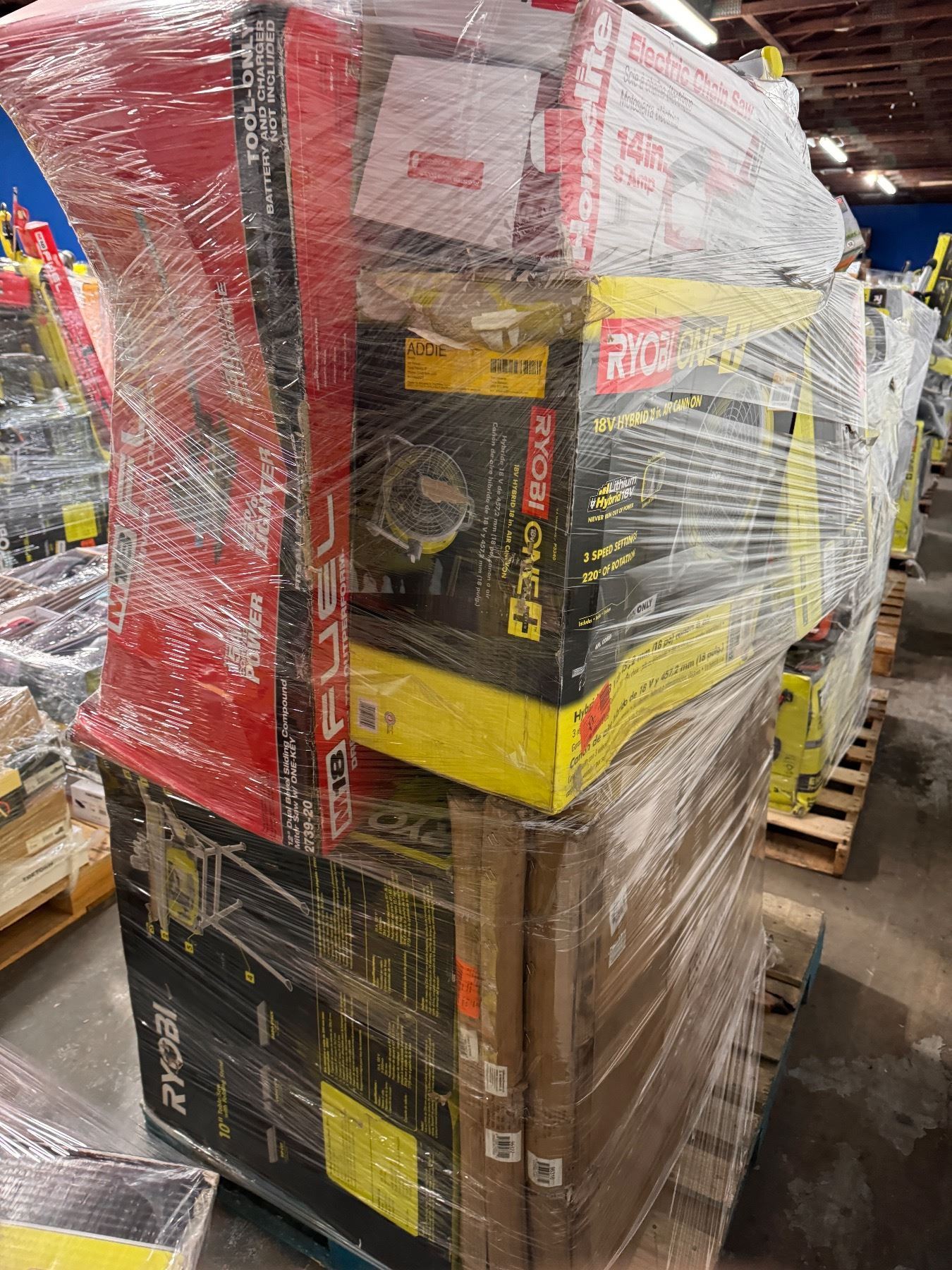 Pallet de Herramienta Home Depot, cada uno de los productos están clasificados como retornos y liquidaciones los cuales pueden venir usados, rotos y incluso completamente nuevos, apueste con responsabilidad y a lo que usted mire.
