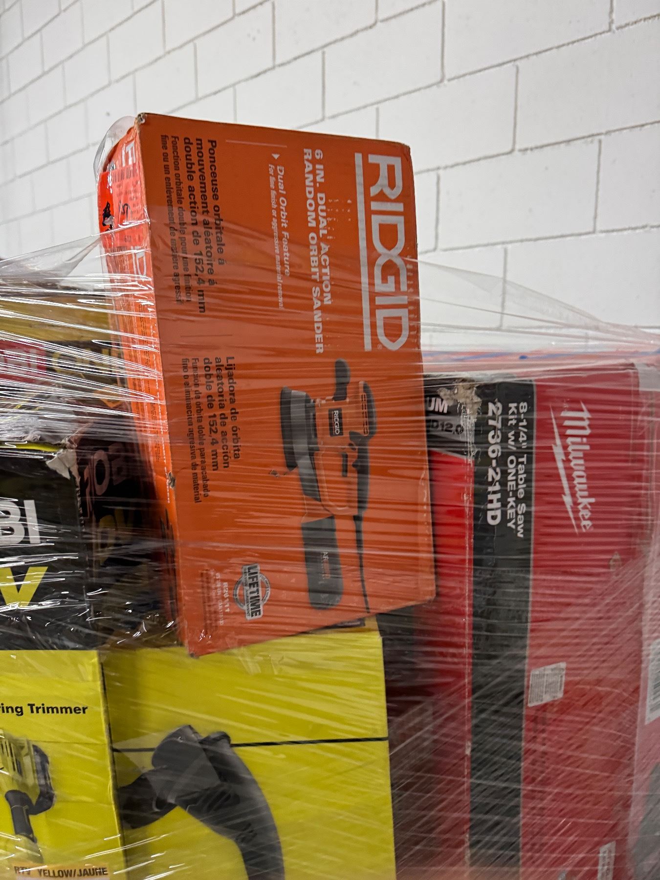 Pallet de Herramienta Home Depot, cada uno de los productos están clasificados como retornos y liquidaciones los cuales pueden venir usados, rotos y incluso completamente nuevos, apueste con responsabilidad y a lo que usted mire.