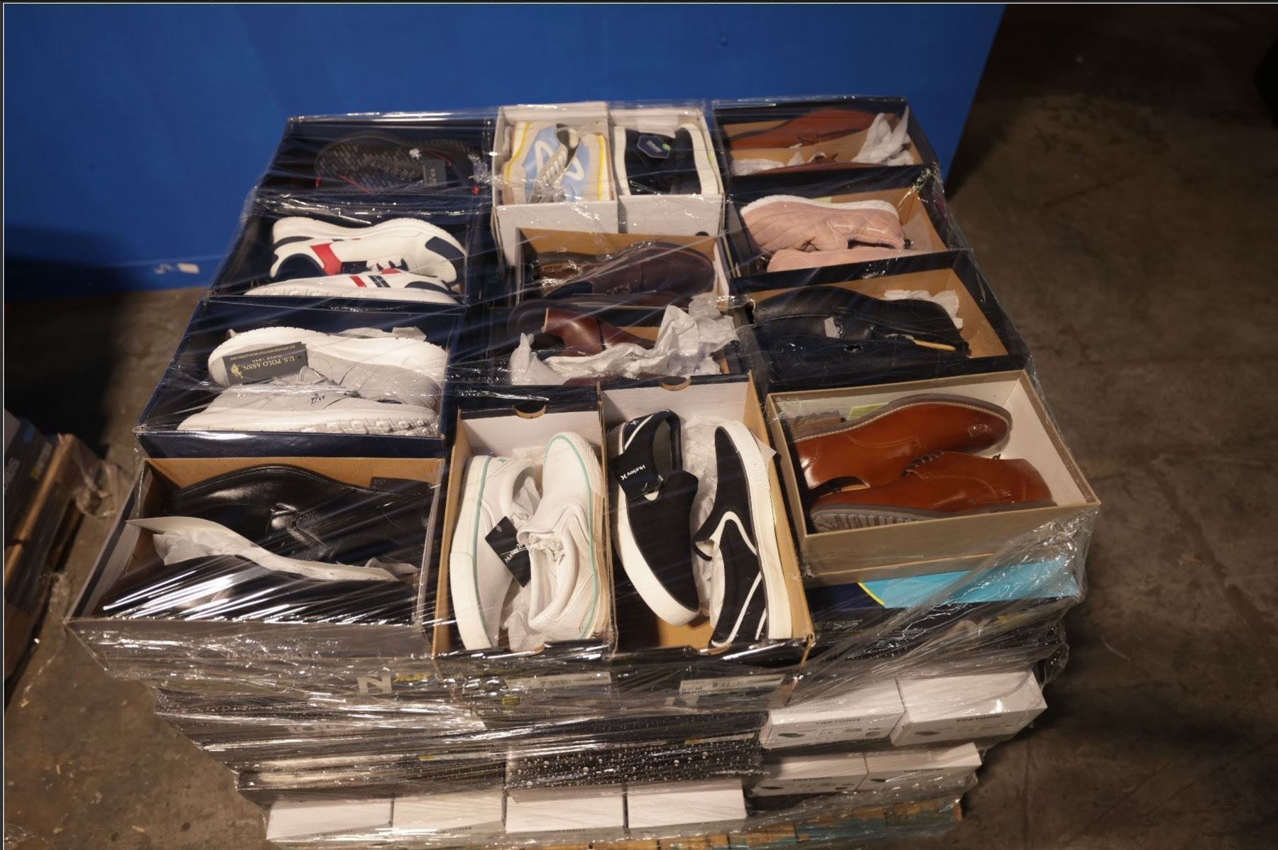 Pallet con 100 piezas de Zapatos y Tennis Mixto. Diferentes estilos, tallas y colores. Cada uno de los pares son nuevos sin usar.