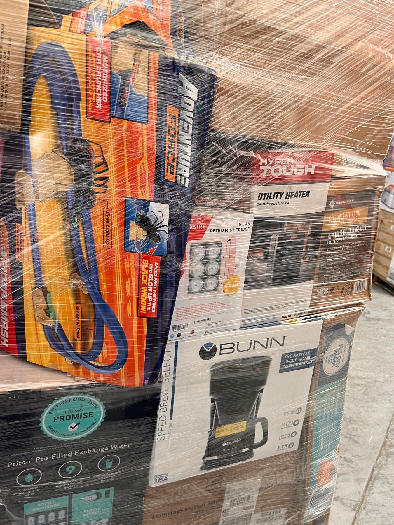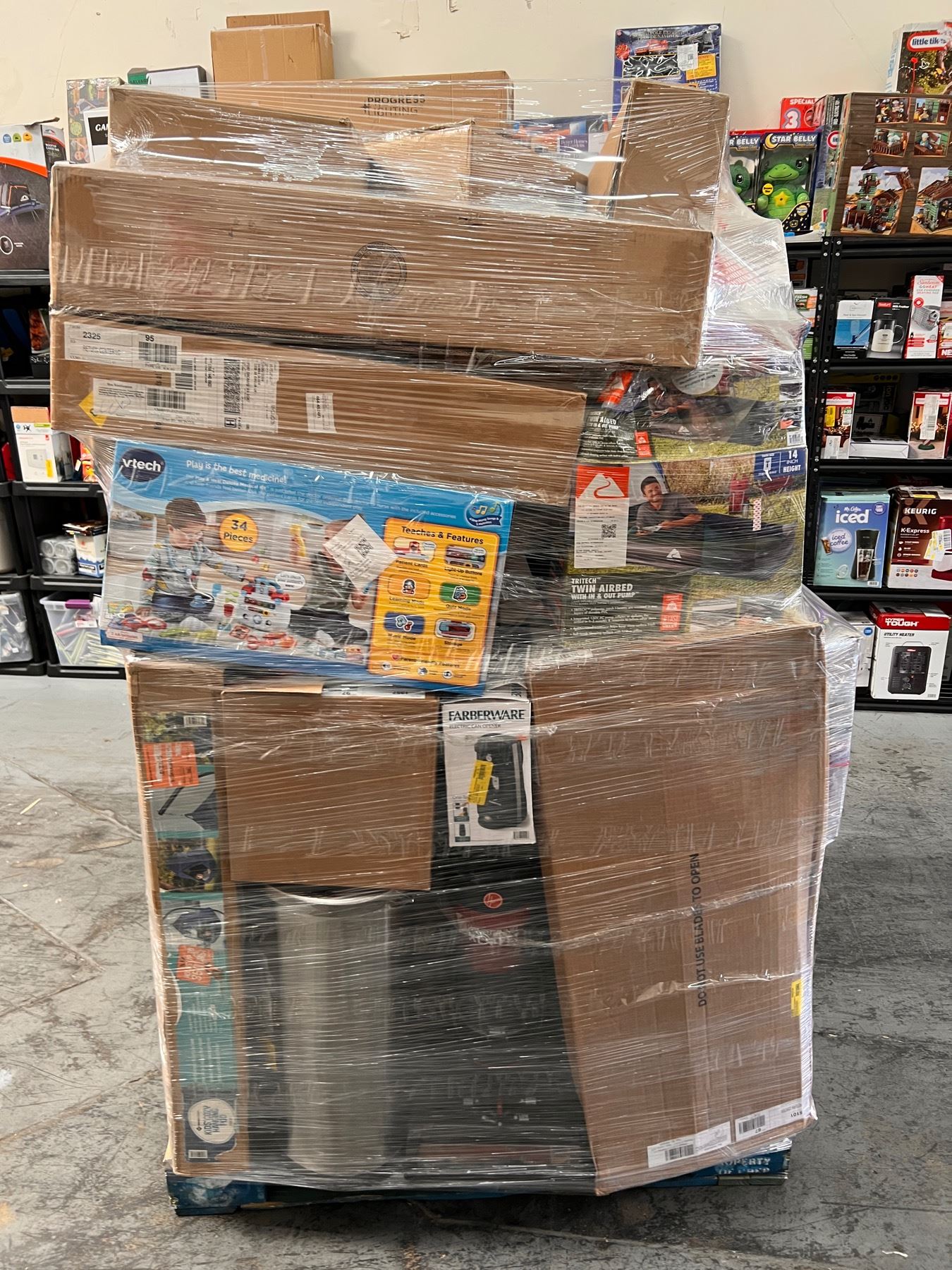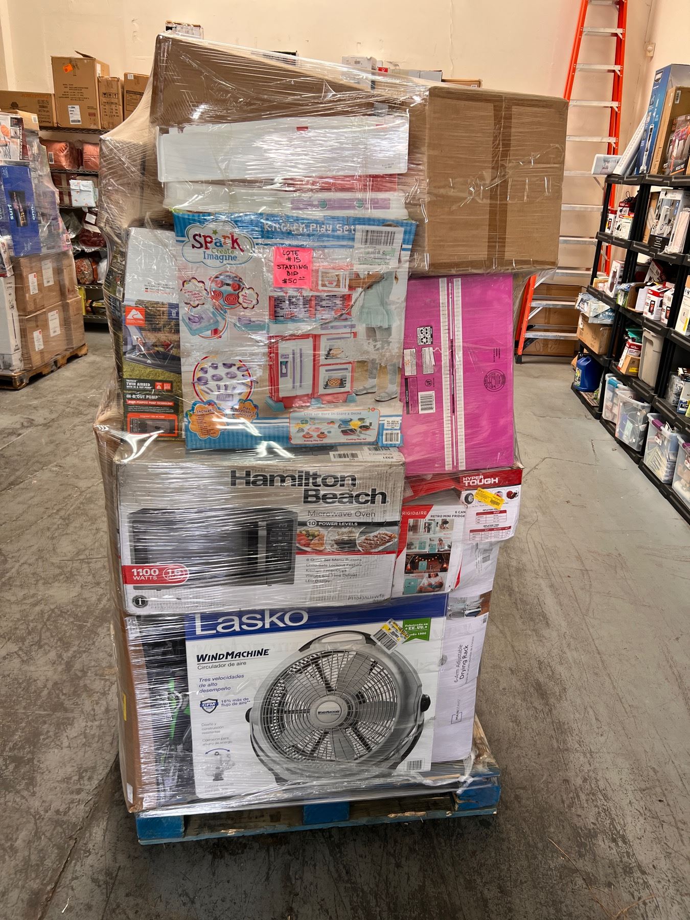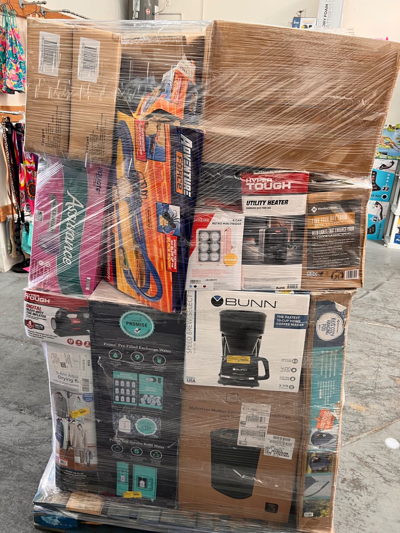 Lots of electrodomestics and general merchandise from Target and Walmart, this pallet measures over 6ft tall, it also comes with mystery boxes.