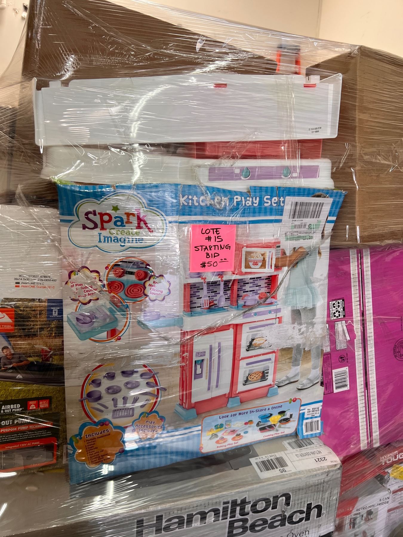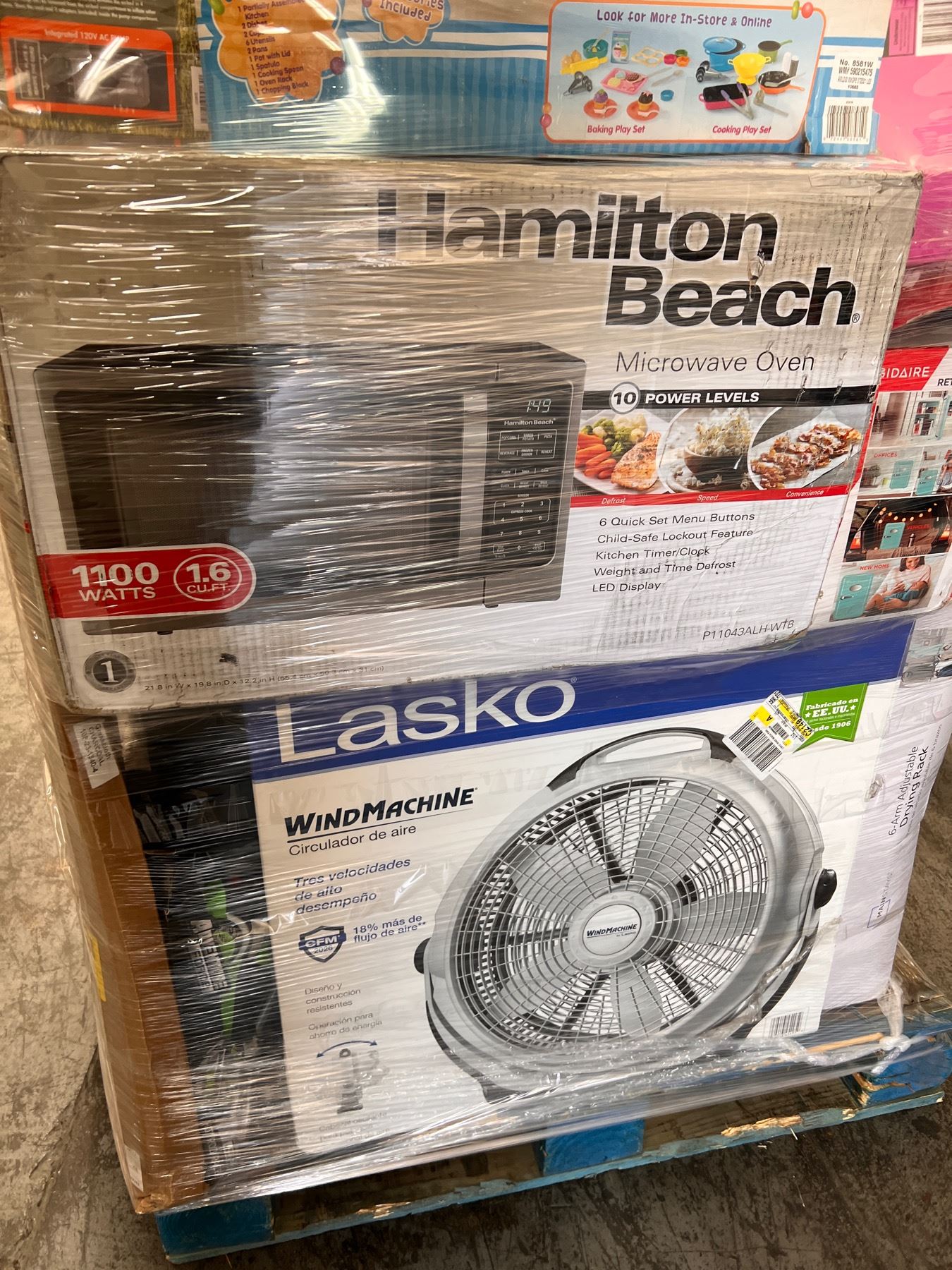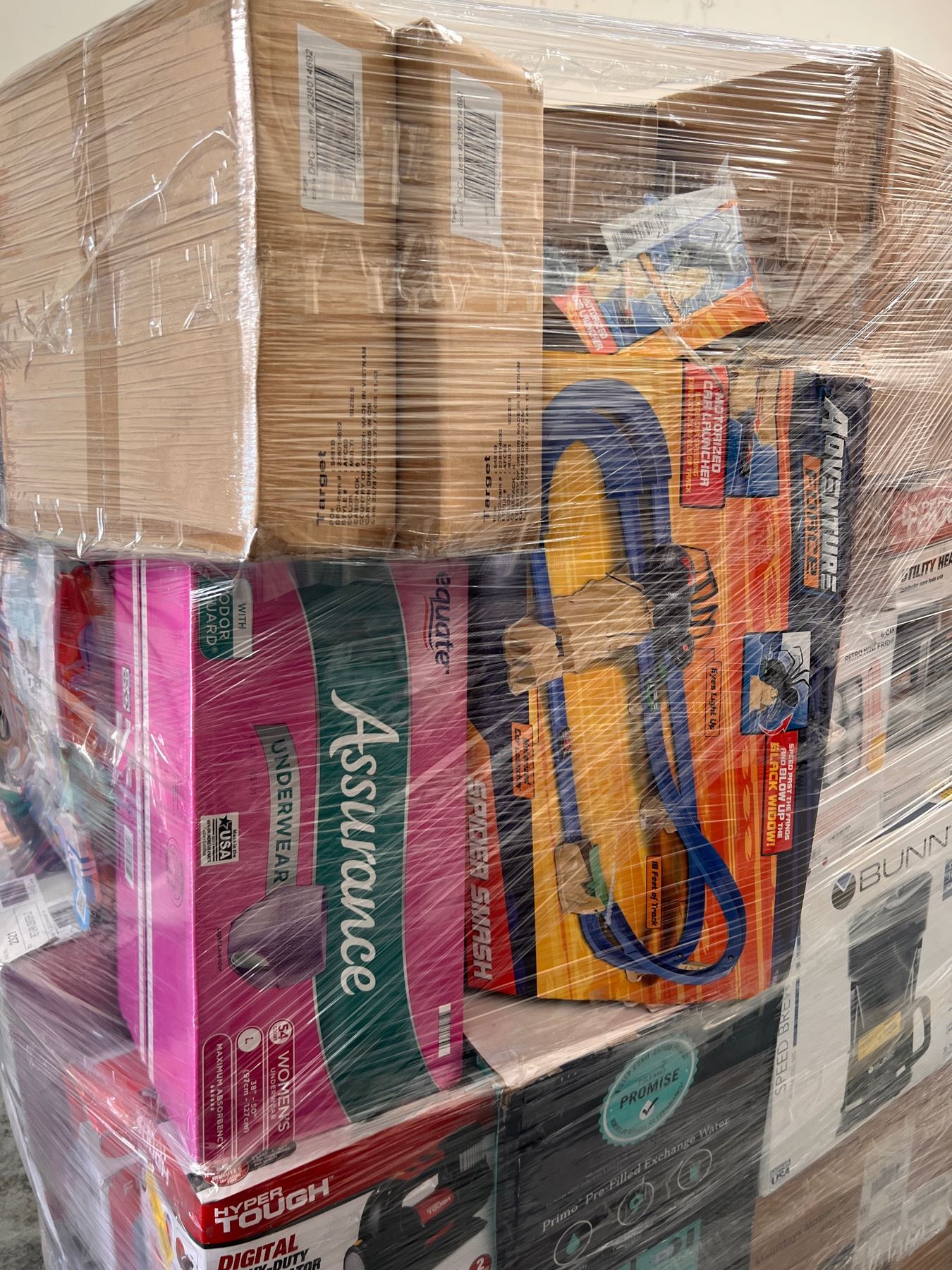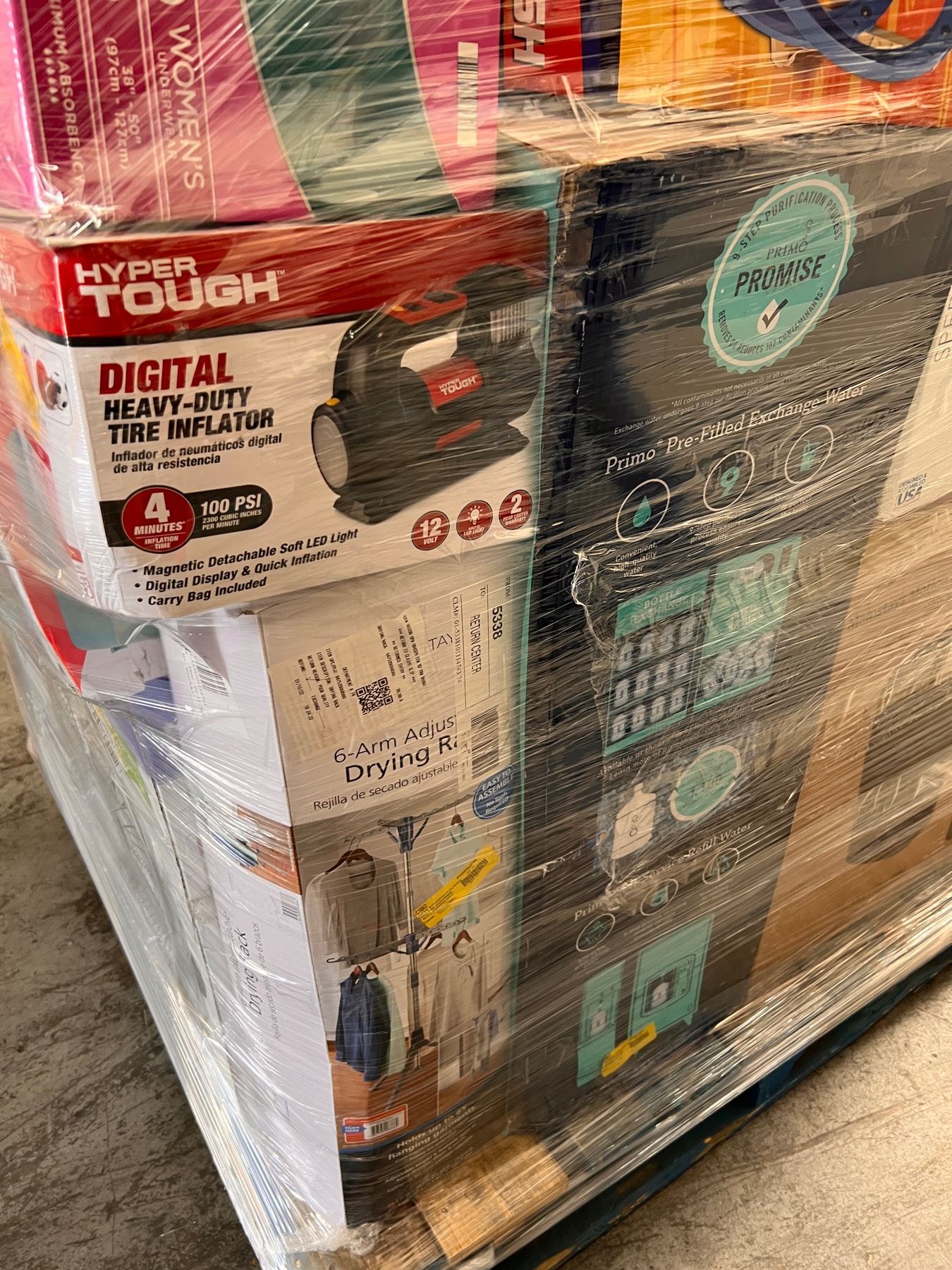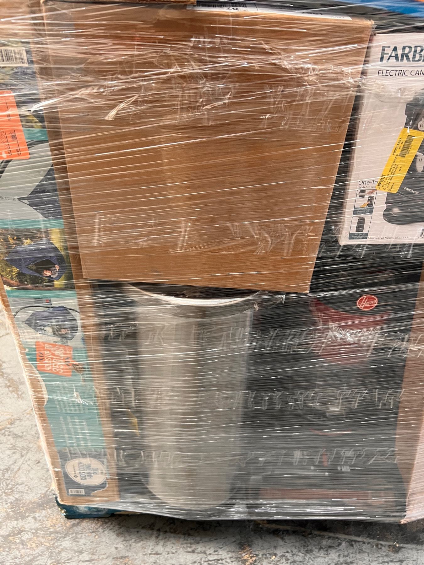 Lots of electrodomestics and general merchandise from Target and Walmart, this pallet measures over 6ft tall, it also comes with mystery boxes.