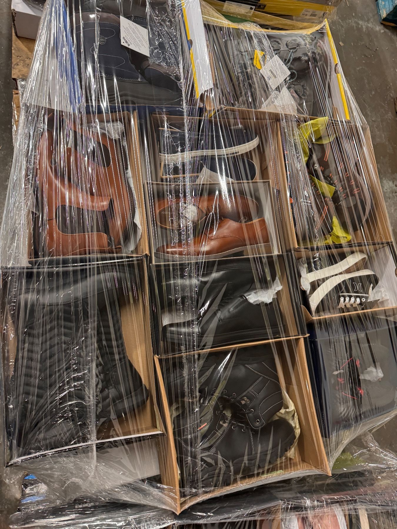 50 pares de calzado, diferentes modelos y tamaños. Cada uno de los pares es completamente nuevo. clasificados como liquidaciones y sobrecargo.