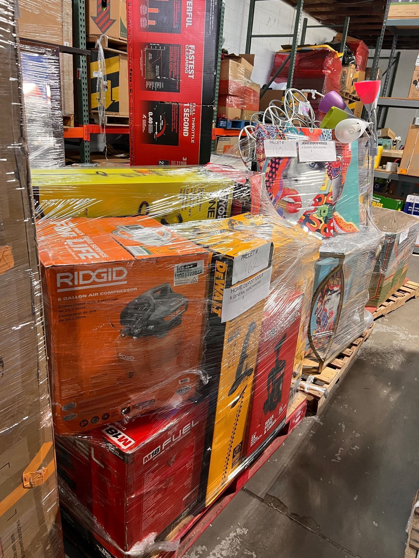Home Depot Tools. Please be advised that all products within this pallet are considered returns or overstock from the specified store(s). All products/pallets are to be sold in an "AS IS, WHERE IS" condition. We request that you base your bids on the visible items exclusively, and not on those that are not observable.