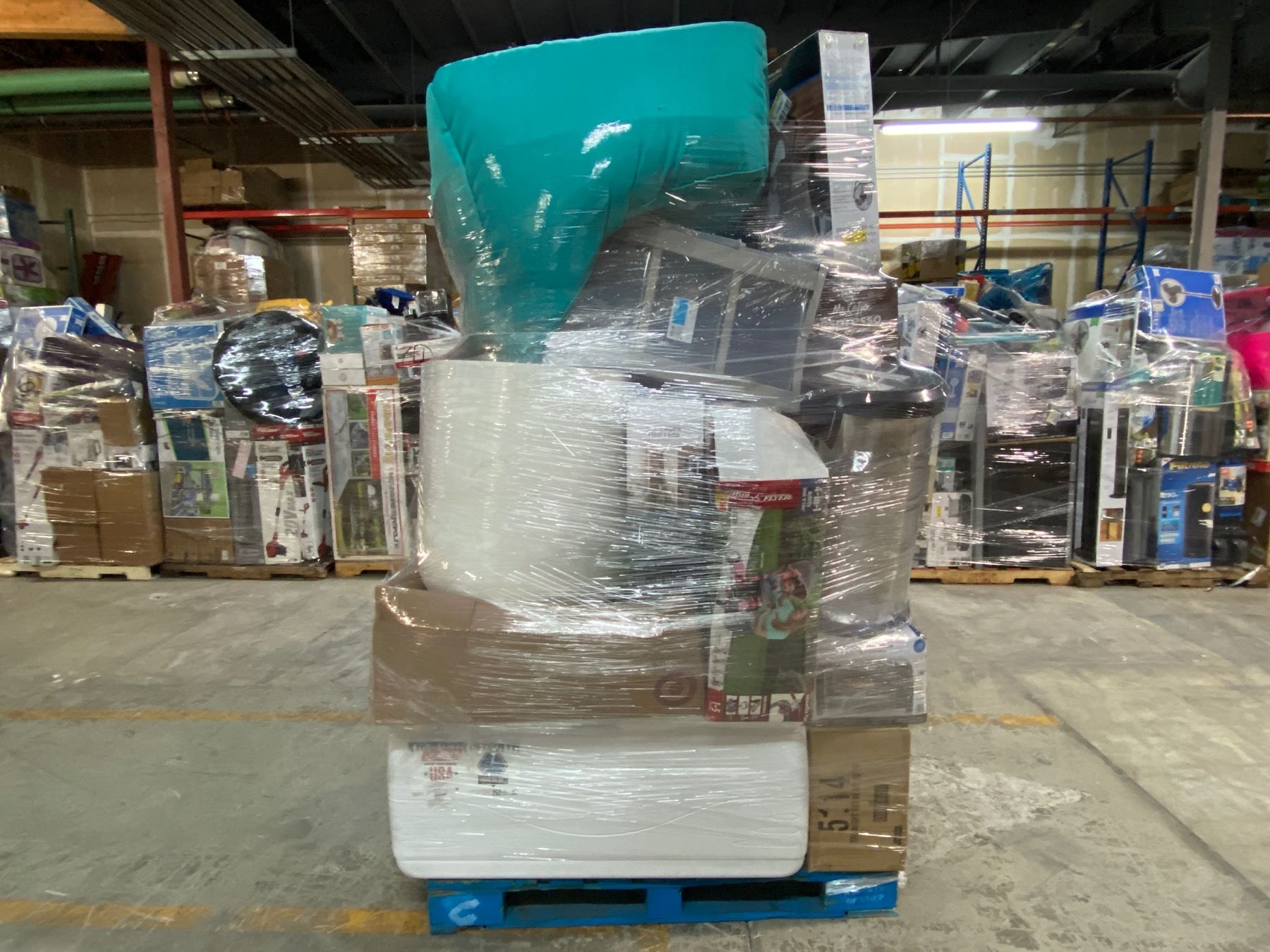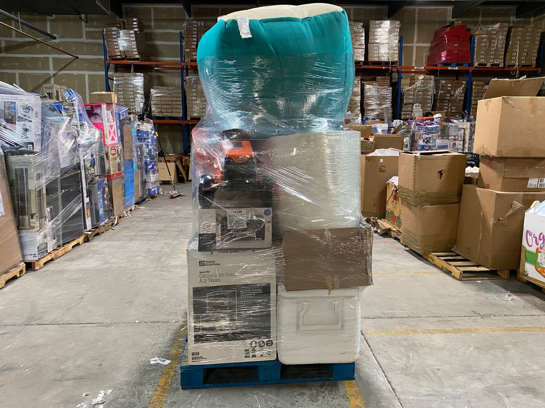 En este pallet usted podria encontrar mercancia general de los diferentes almacenes de los Estados Unidos tales como Walmart, Target, Home Depot, JCPenney
