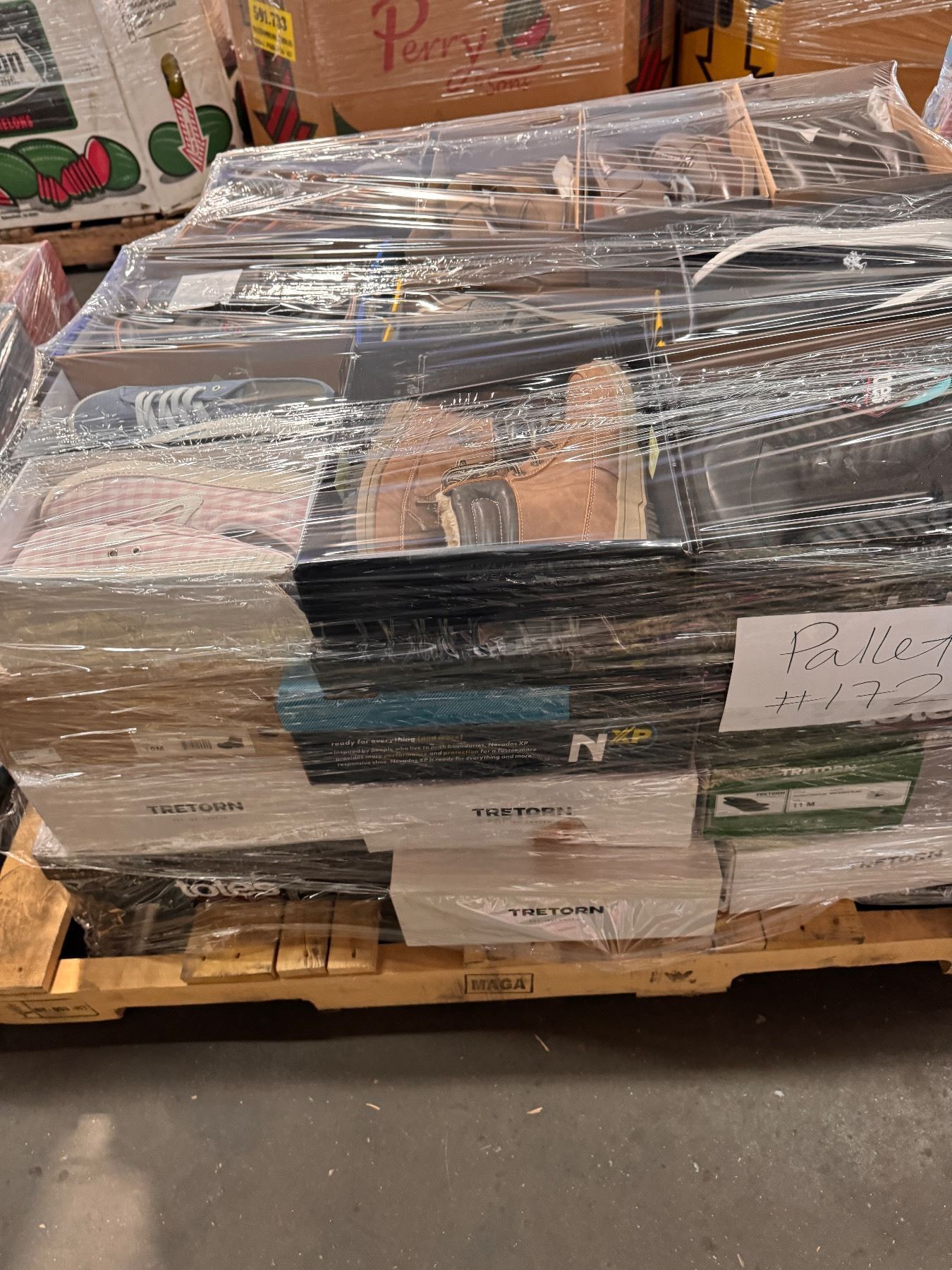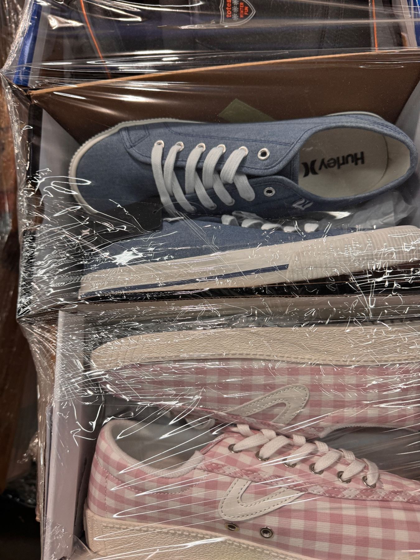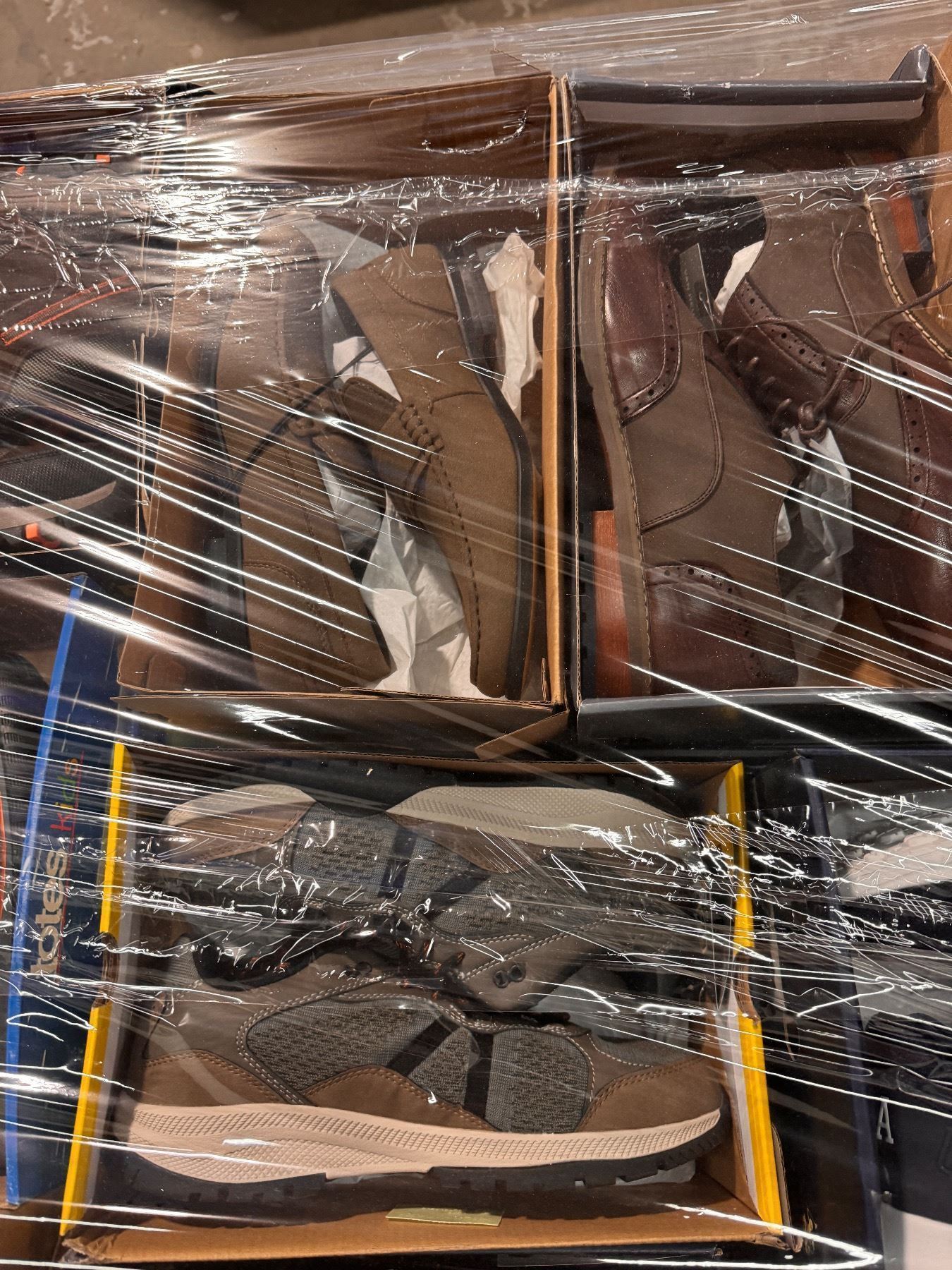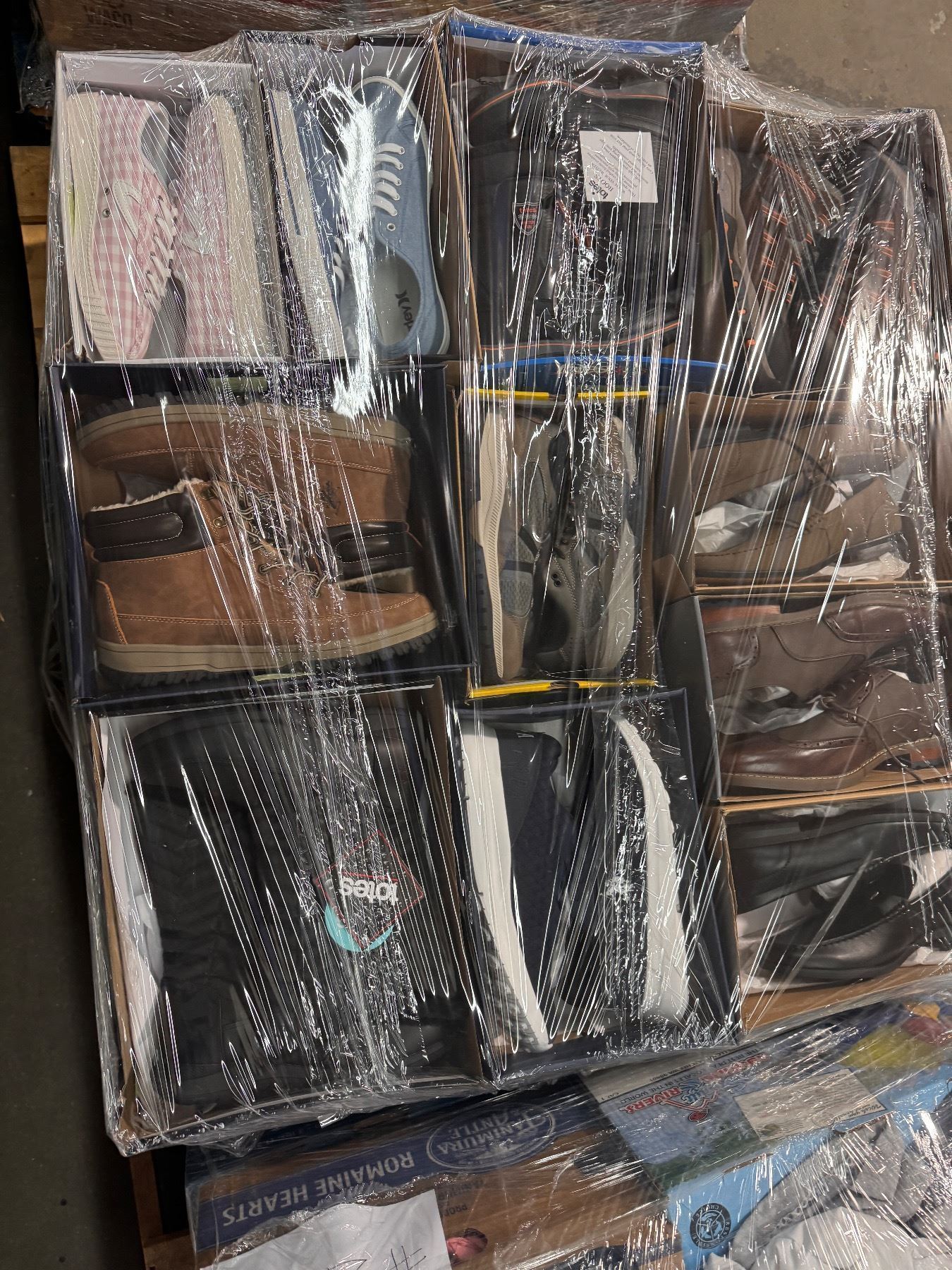 50 pares de calzado, diferentes modelos y tamaños. Cada uno de los pares es completamente nuevo. clasificados como liquidaciones y sobrecargo.