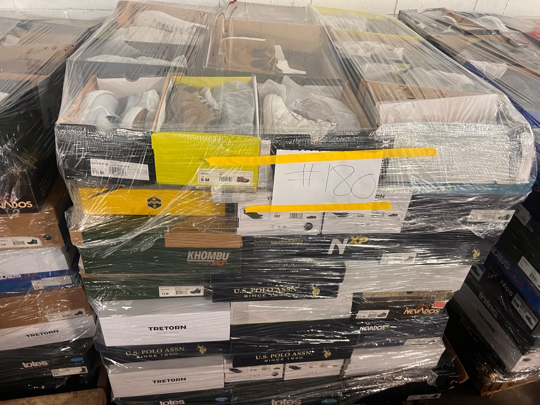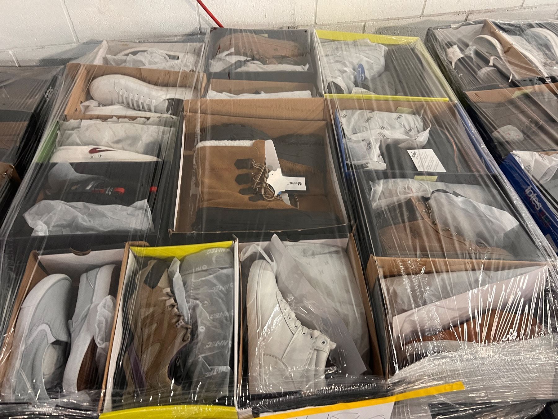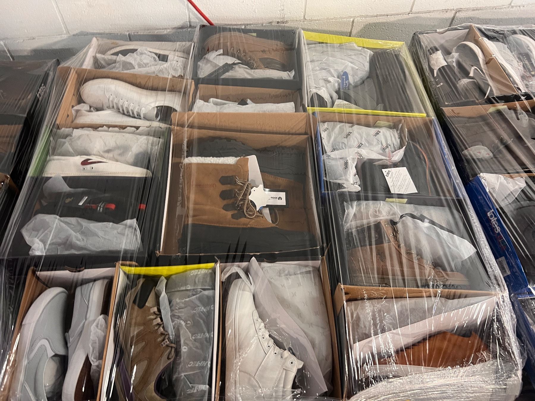100 pares de calzado, diferentes modelos y tamaños. Cada uno de los pares es completamente nuevo. clasificados como liquidaciones y sobrecargo.