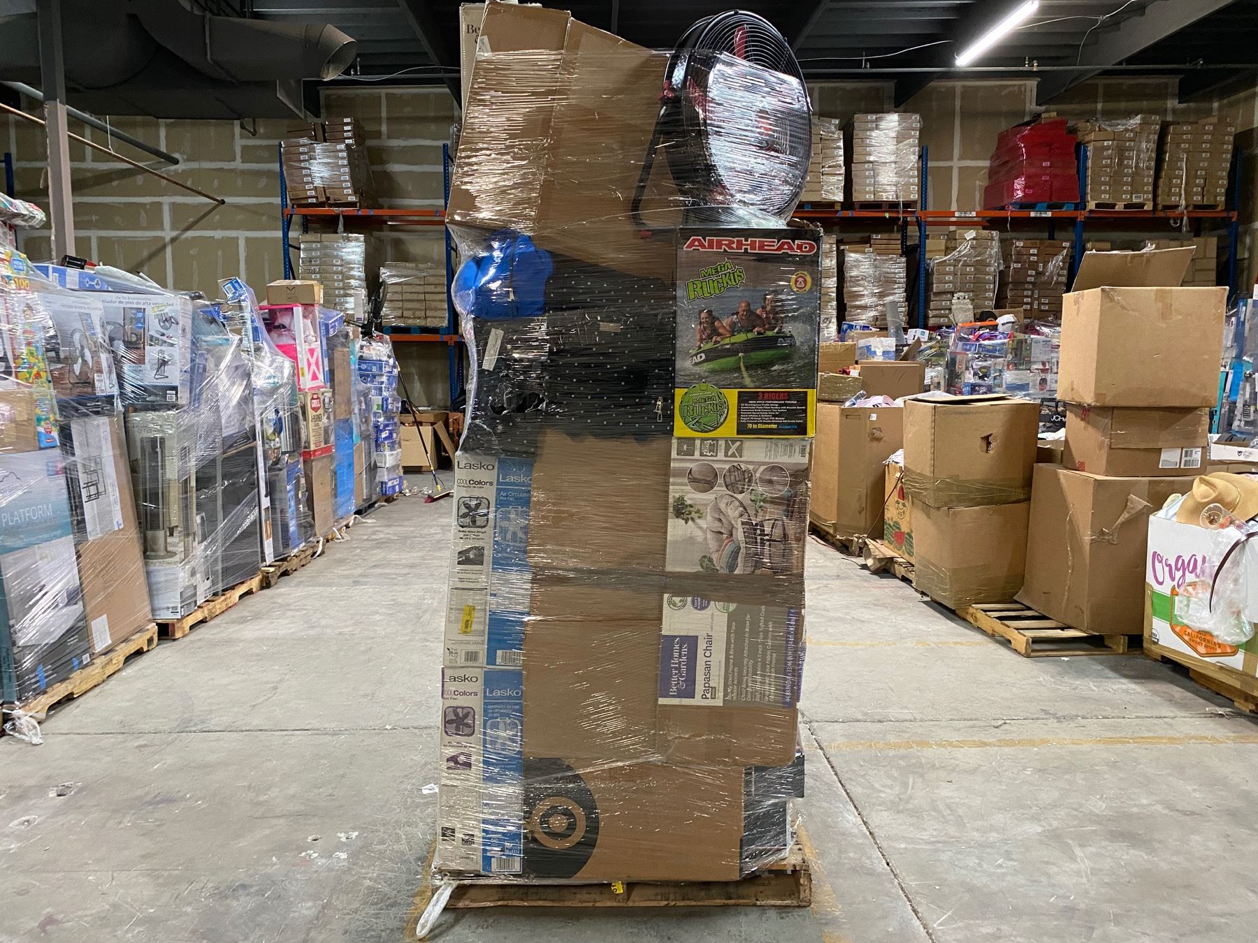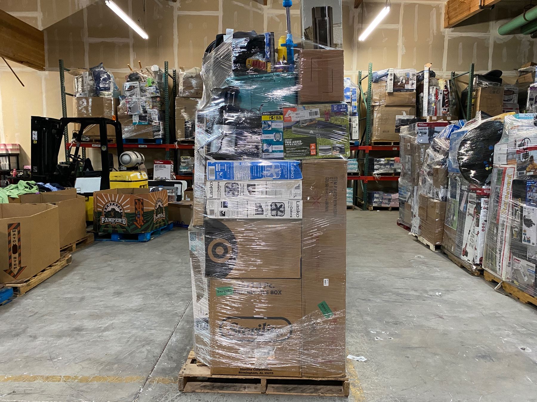 En este pallet usted podria encontrar mercancia general de los diferentes almacenes de los Estados Unidos tales como Walmart, Target, Home Depot, JCPenney