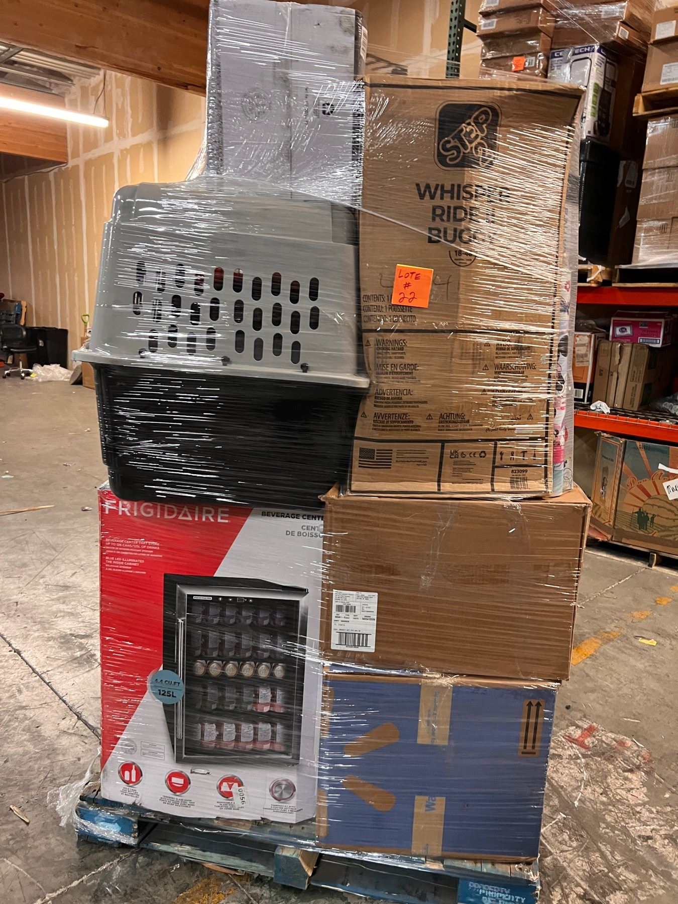 Pallet con bastante mercancia de Walmart y también varias cajas misteriosas
