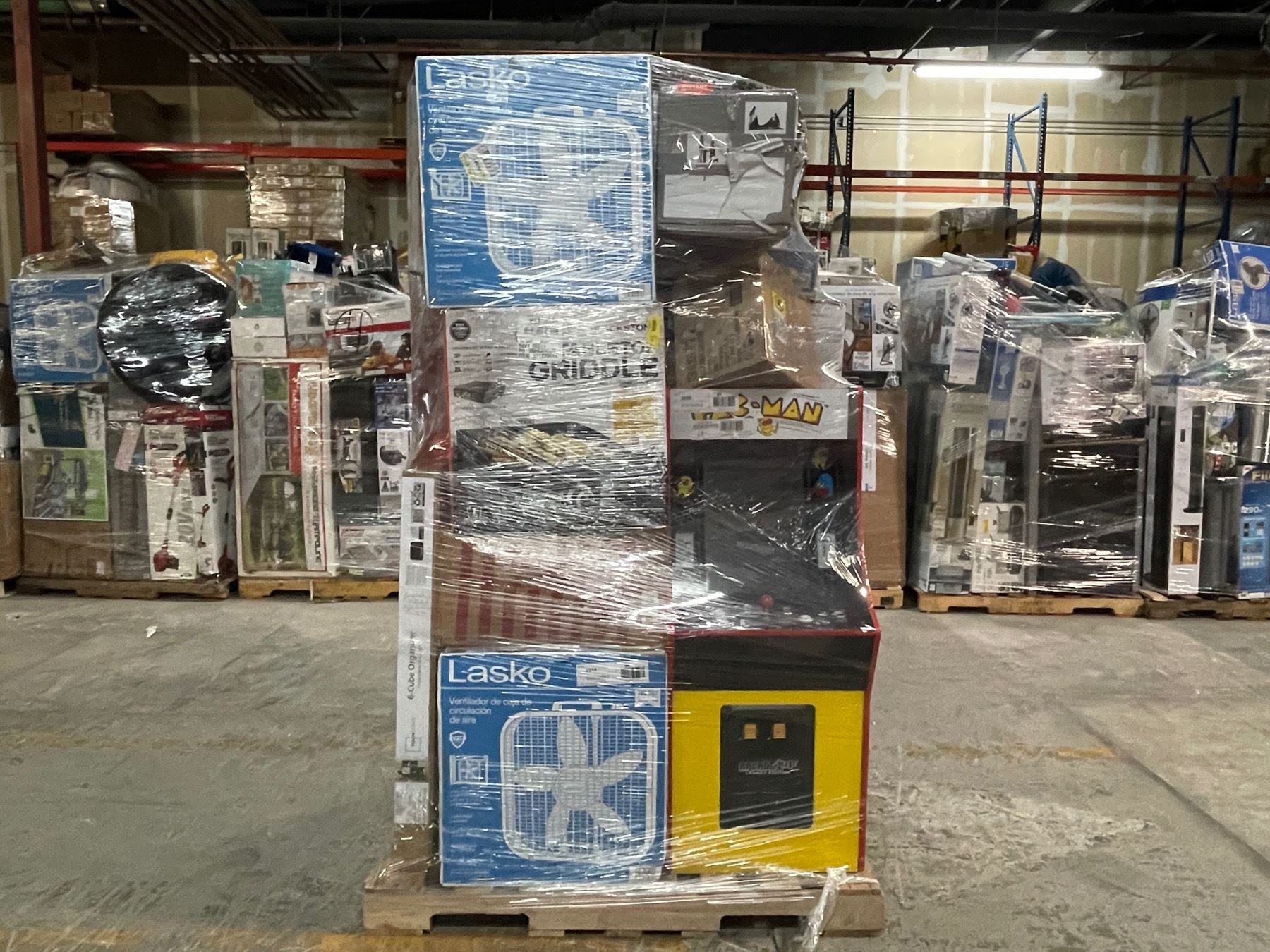 En este pallet usted podria encontrar mercancia general de los diferentes almacenes de los Estados Unidos tales como Walmart, Target, Home Depot, JCPenney