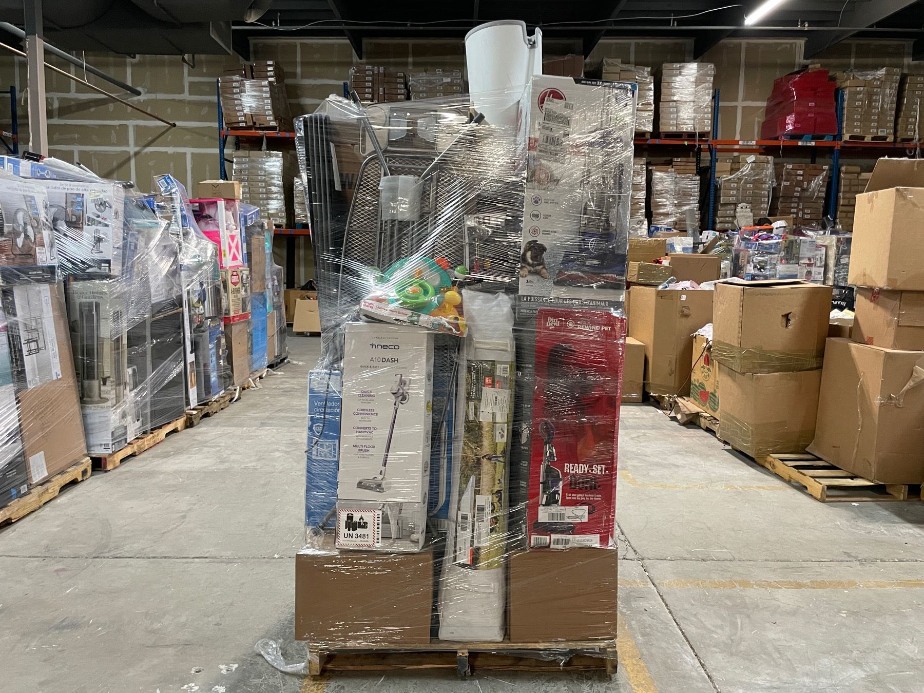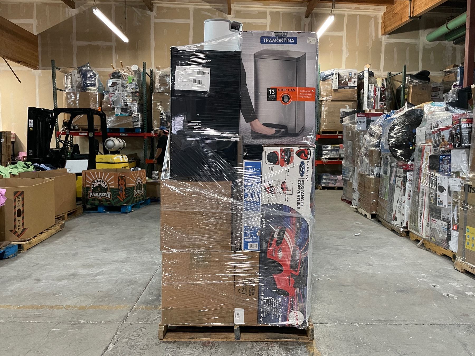 En este pallet usted podria encontrar mercancia general de los diferentes almacenes de los Estados Unidos tales como Walmart, Target, Home Depot, JCPenney