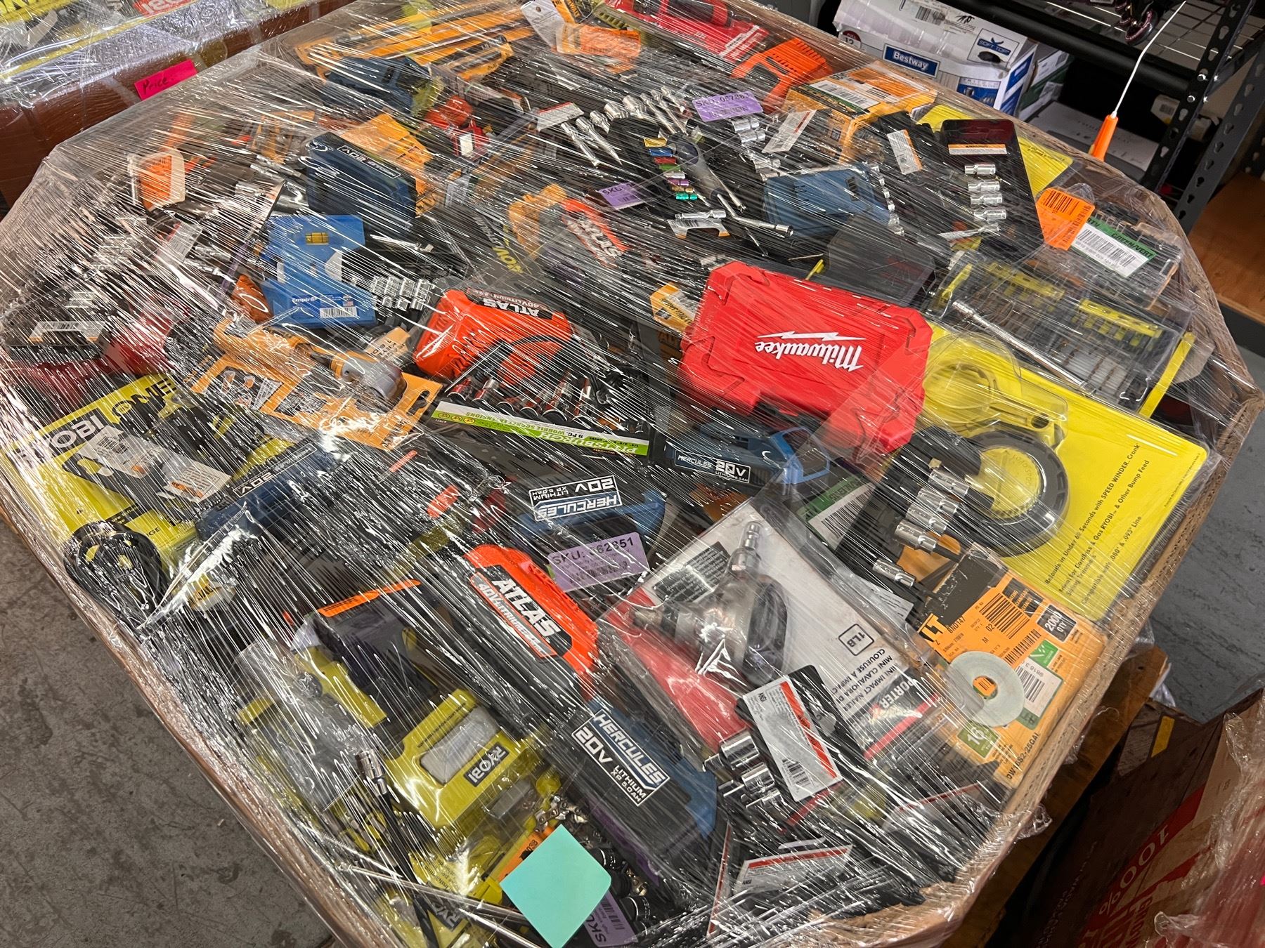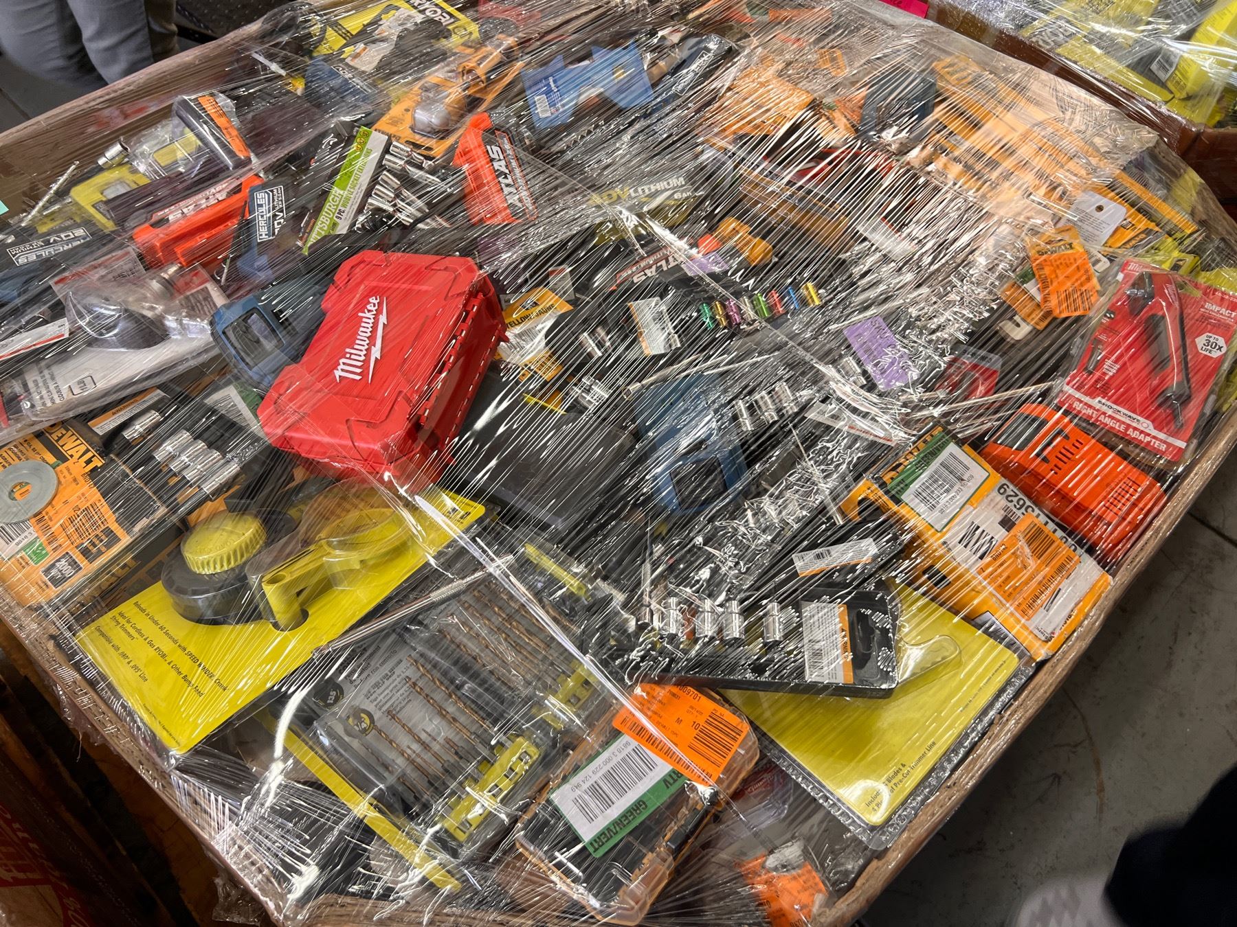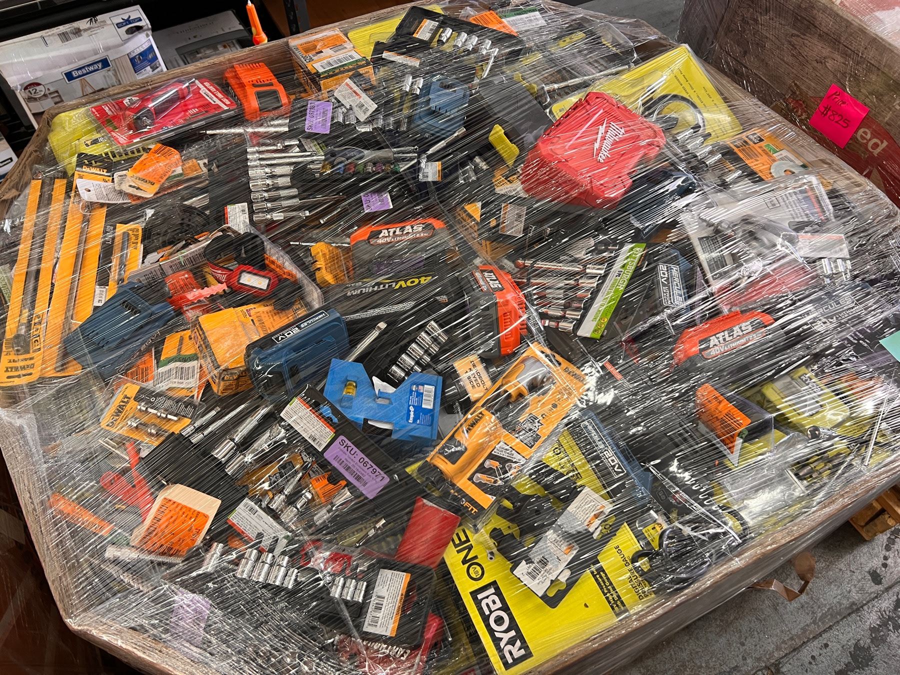 Pallet con Herramienta de Home Depot, ASI COMO marcas de Ryobi y Milwaukee. Tambien viene con mercancia de Walgreens y CVS