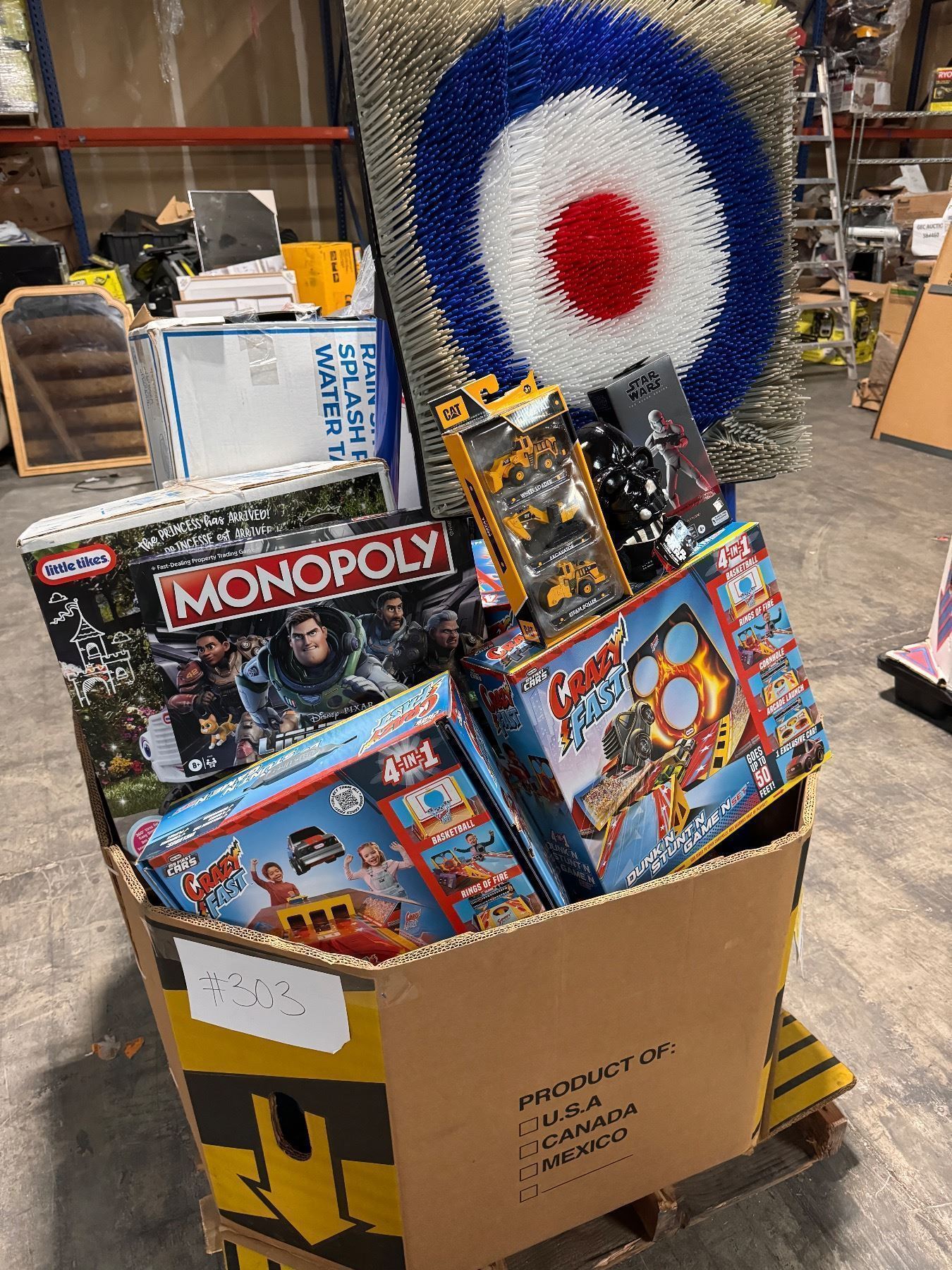 Pallet de Juguetes provenientes de la tienda Target, cada uno de los productos están clasificados como retornos y liquidaciones los cuales pueden venir usados, rotos y incluso completamente nuevos, apueste con responsabilidad y a lo que usted mire.