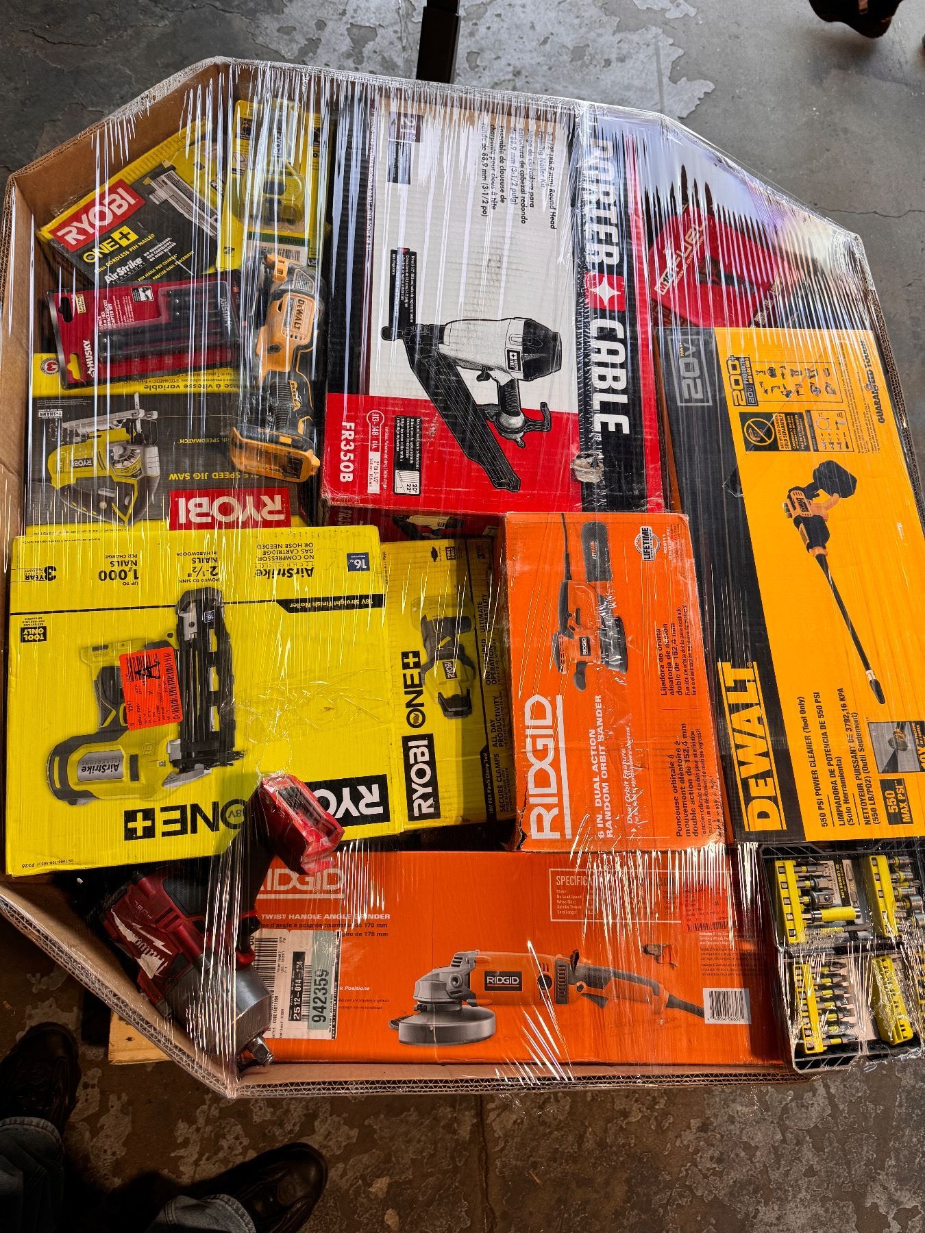 Pallet de Herramienta y Mercancia general Home Depot, cada uno de los productos están clasificados como retornos y liquidaciones los cuales pueden venir usados, rotos y incluso completamente nuevos, apueste con responsabilidad y a lo que usted mire.