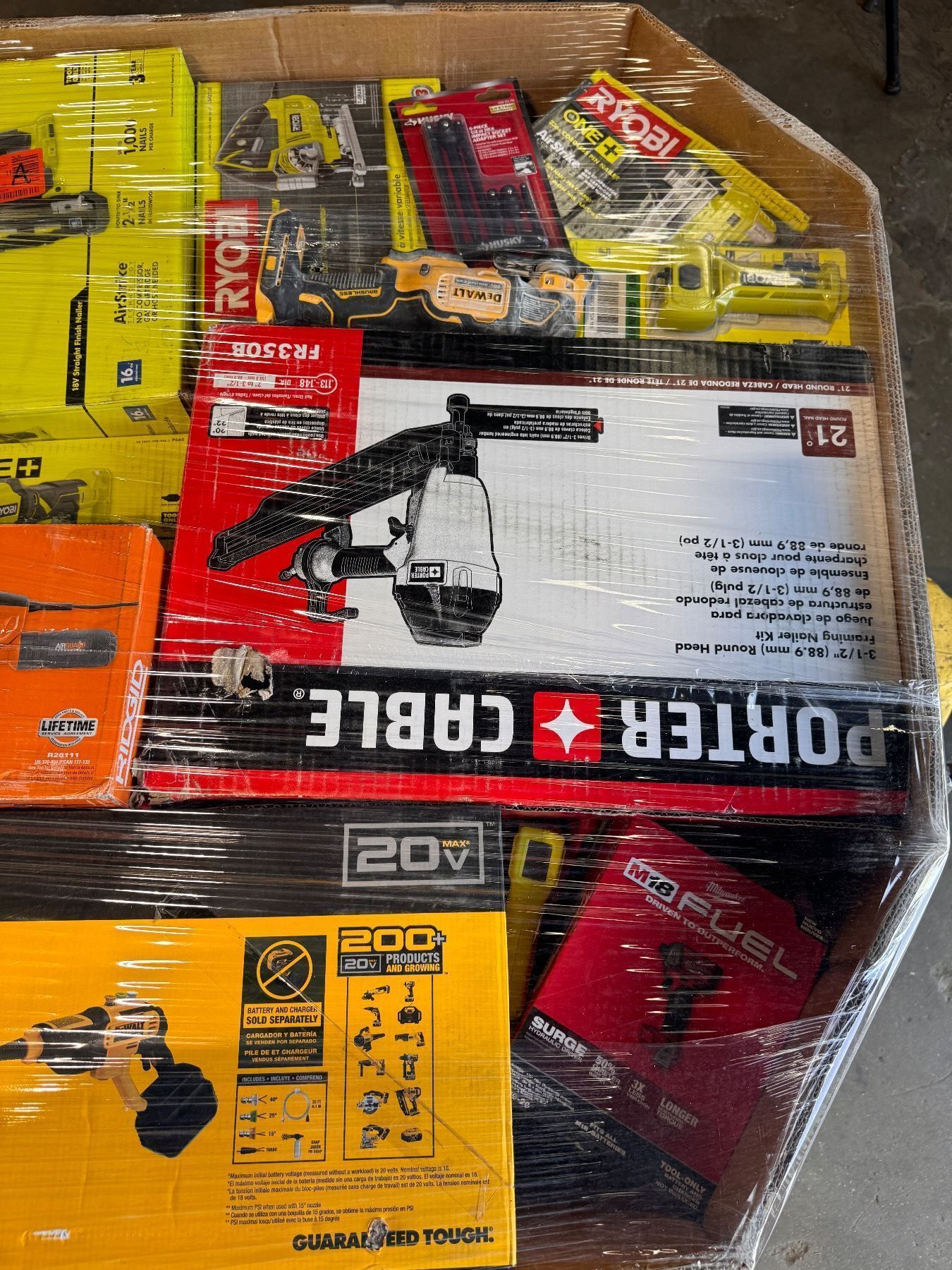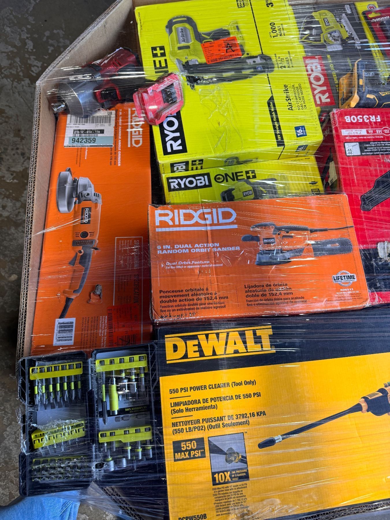 Pallet de Herramienta y Mercancia general Home Depot, cada uno de los productos están clasificados como retornos y liquidaciones los cuales pueden venir usados, rotos y incluso completamente nuevos, apueste con responsabilidad y a lo que usted mire.