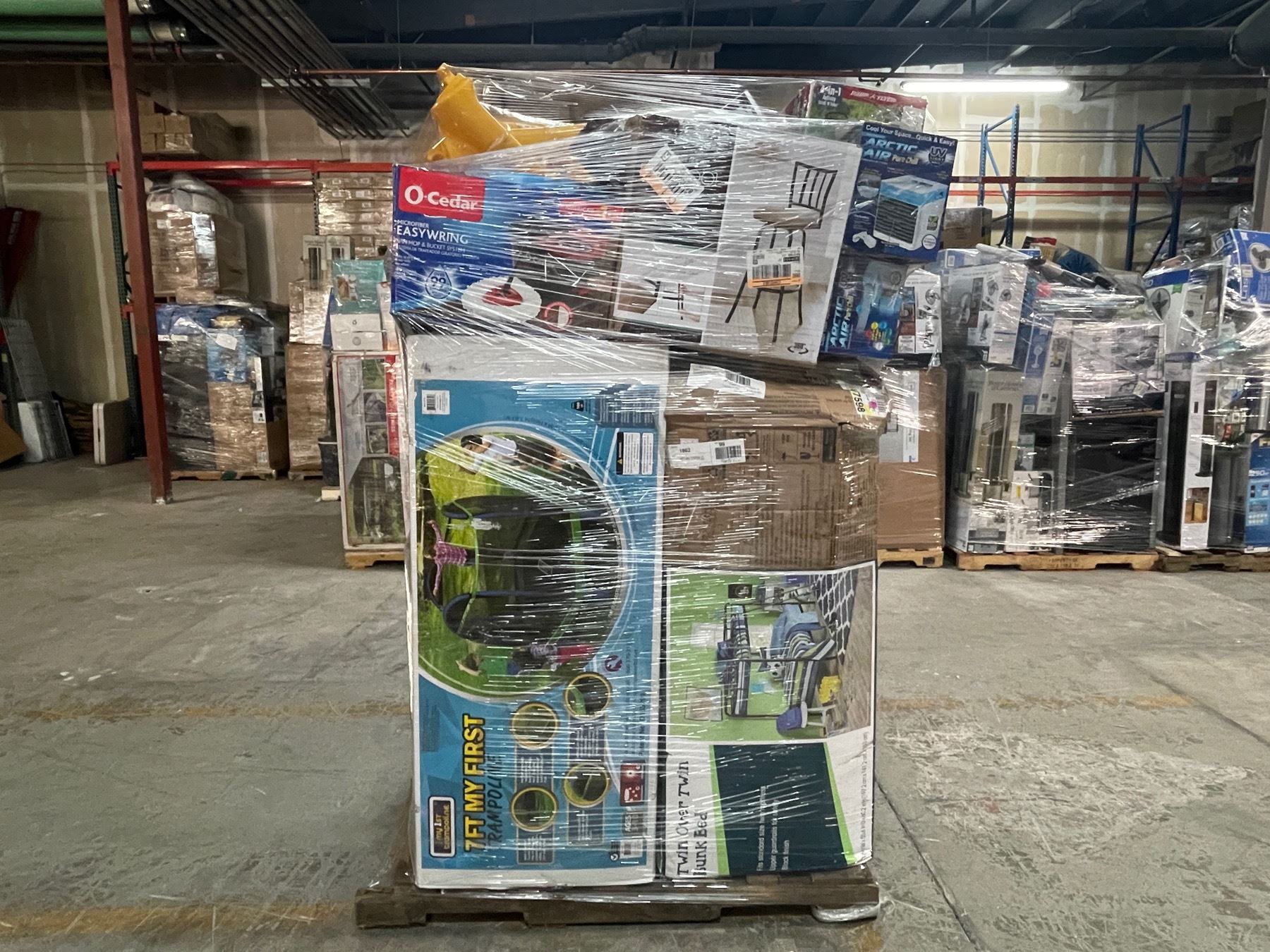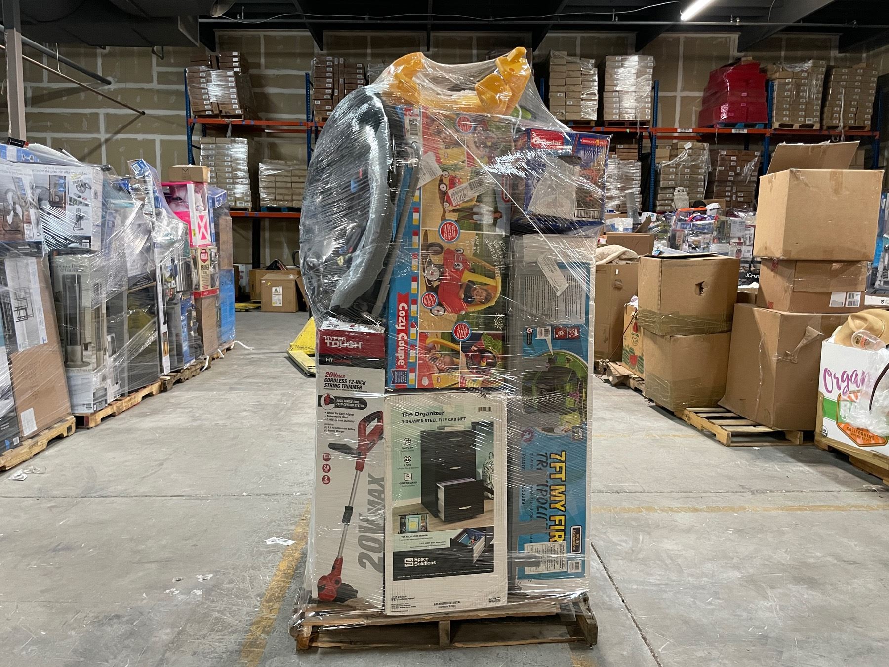 En este pallet usted podria encontrar mercancia general de los diferentes almacenes de los Estados Unidos tales como Walmart, Target, Home Depot, JCPenney