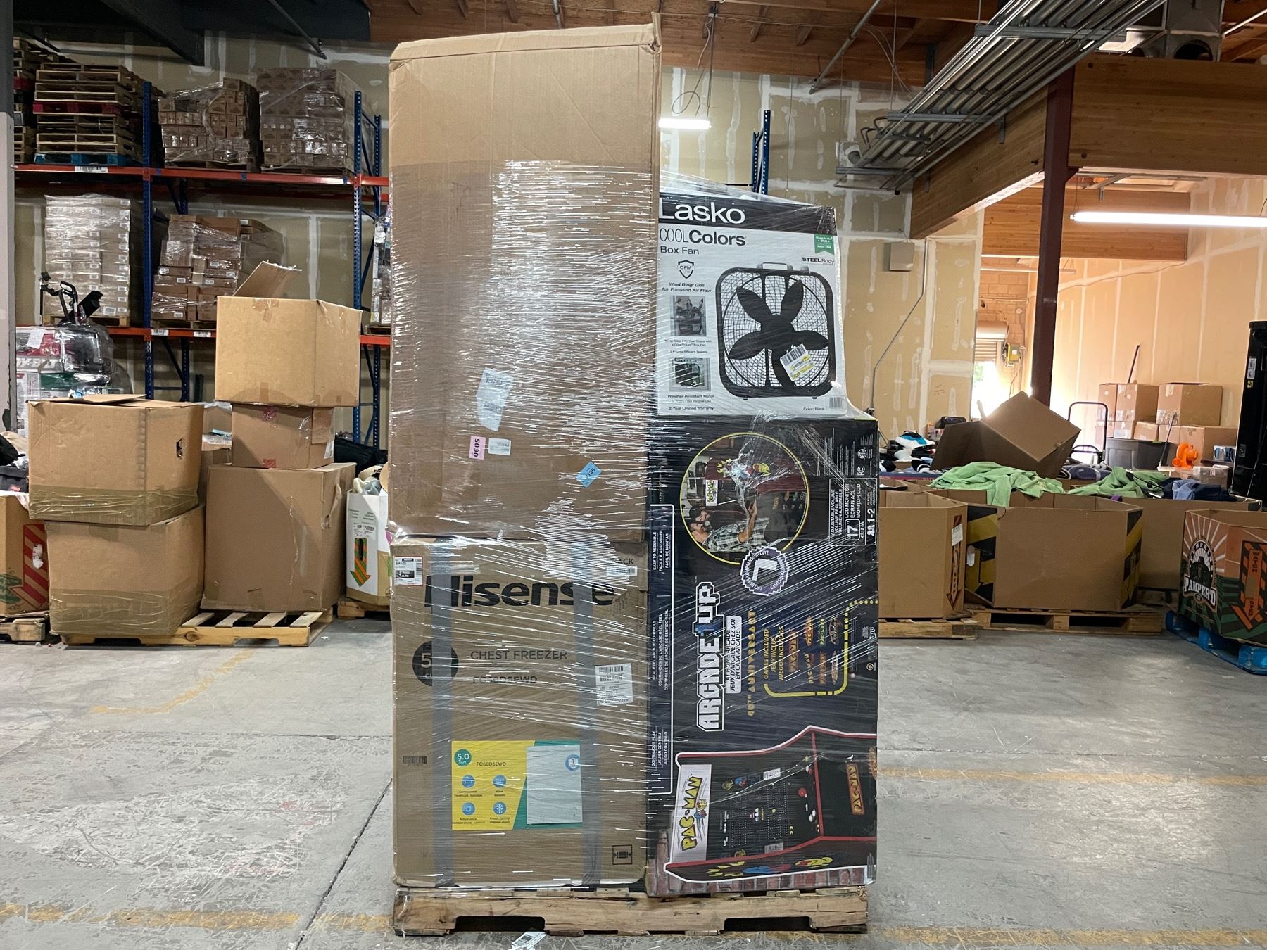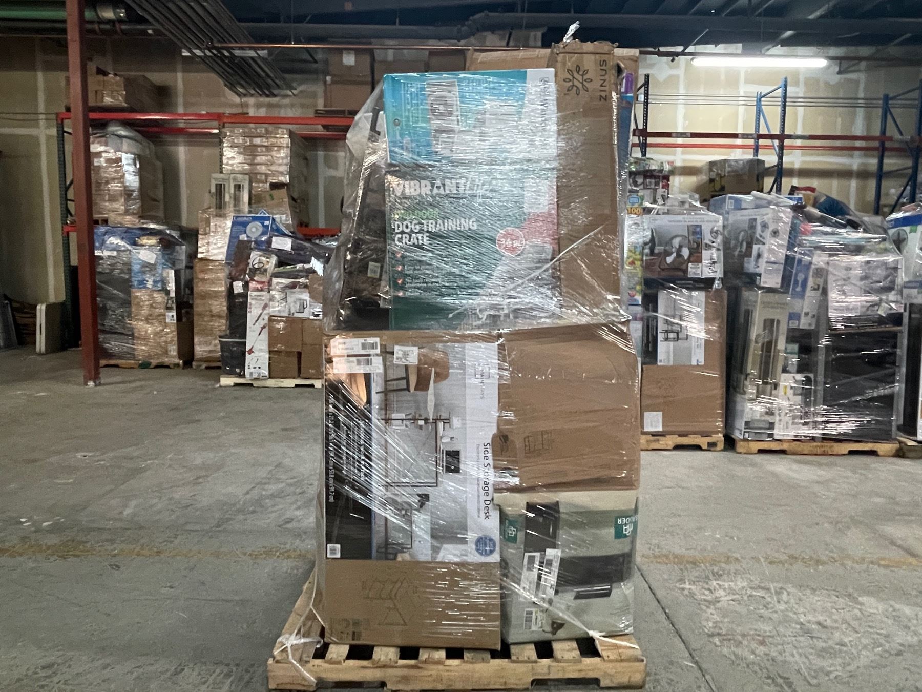 En este pallet usted podria encontrar mercancia general de los diferentes almacenes de los Estados Unidos tales como Walmart, Target, Home Depot, JCPenney