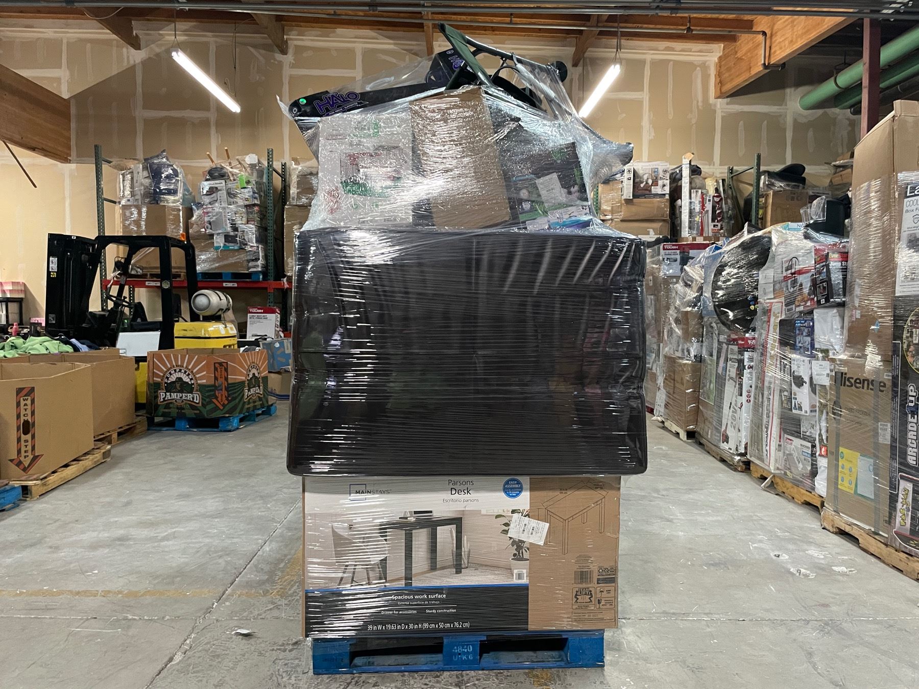 En este pallet usted podria encontrar mercancia general de los diferentes almacenes de los Estados Unidos tales como Walmart, Target, Home Depot, JCPenney
