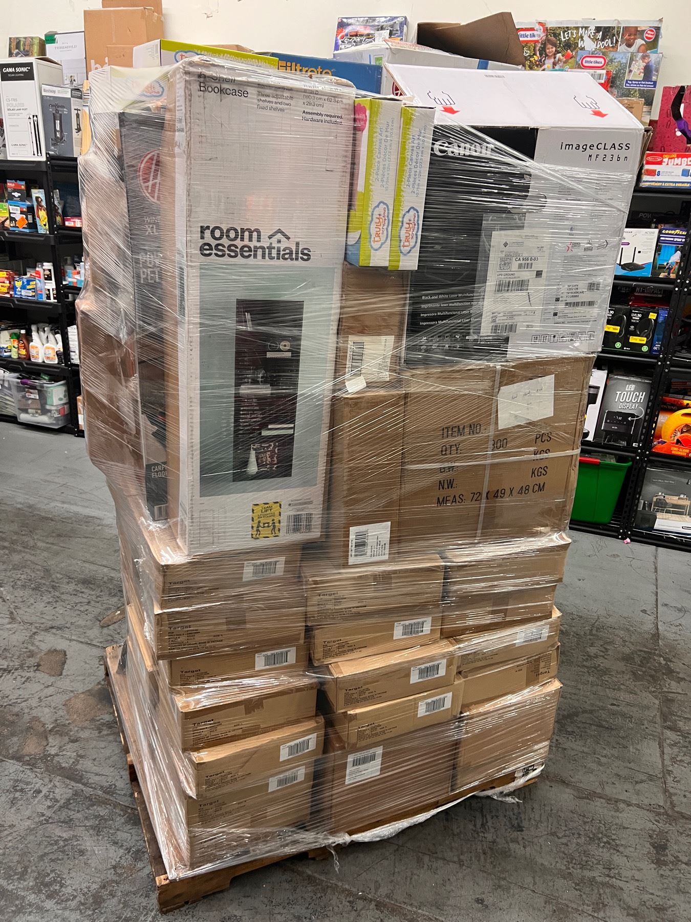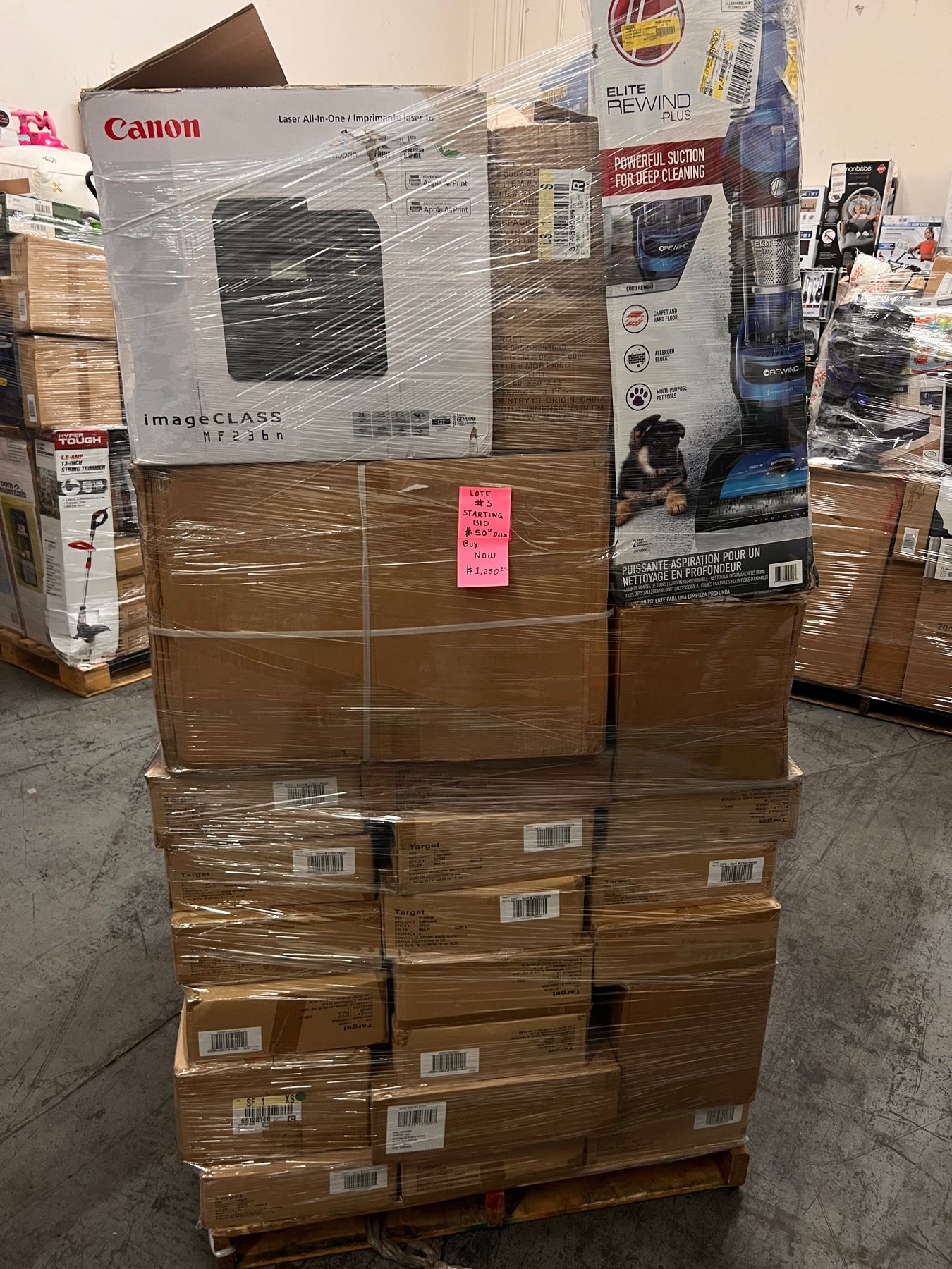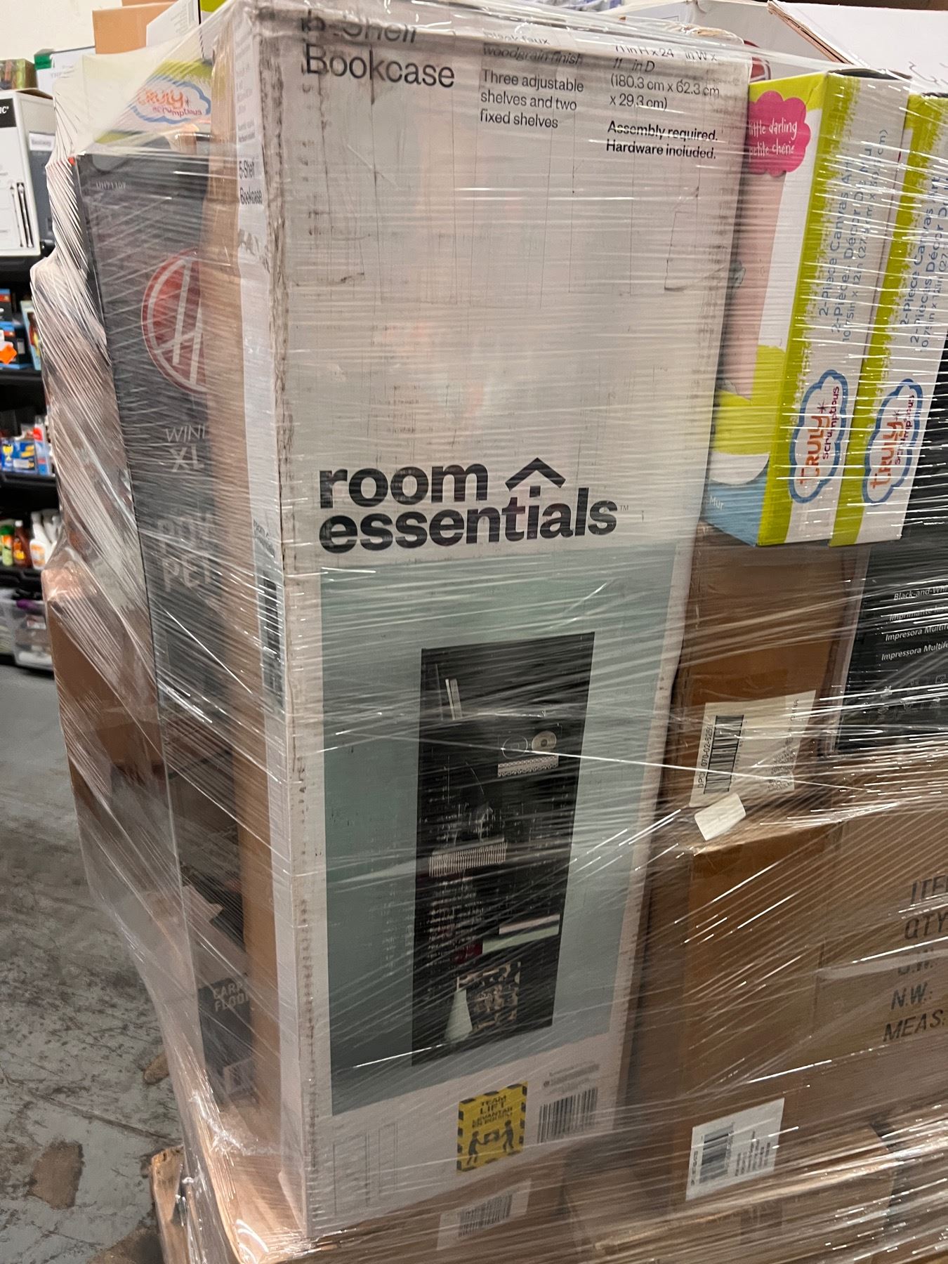 It comes with boxes of Target apparel, Walmart electronics, Home Goods ,Camping equipment, a ping pong table, vacuums and much more.