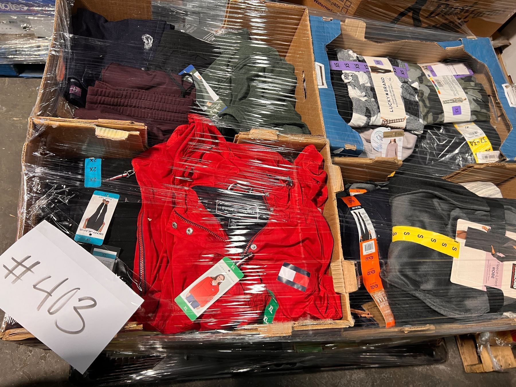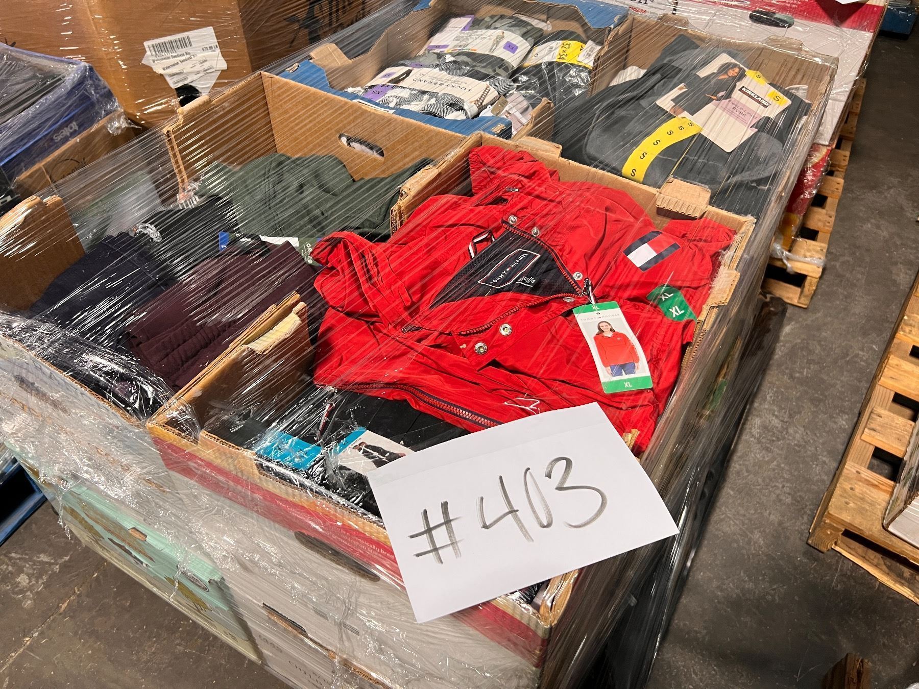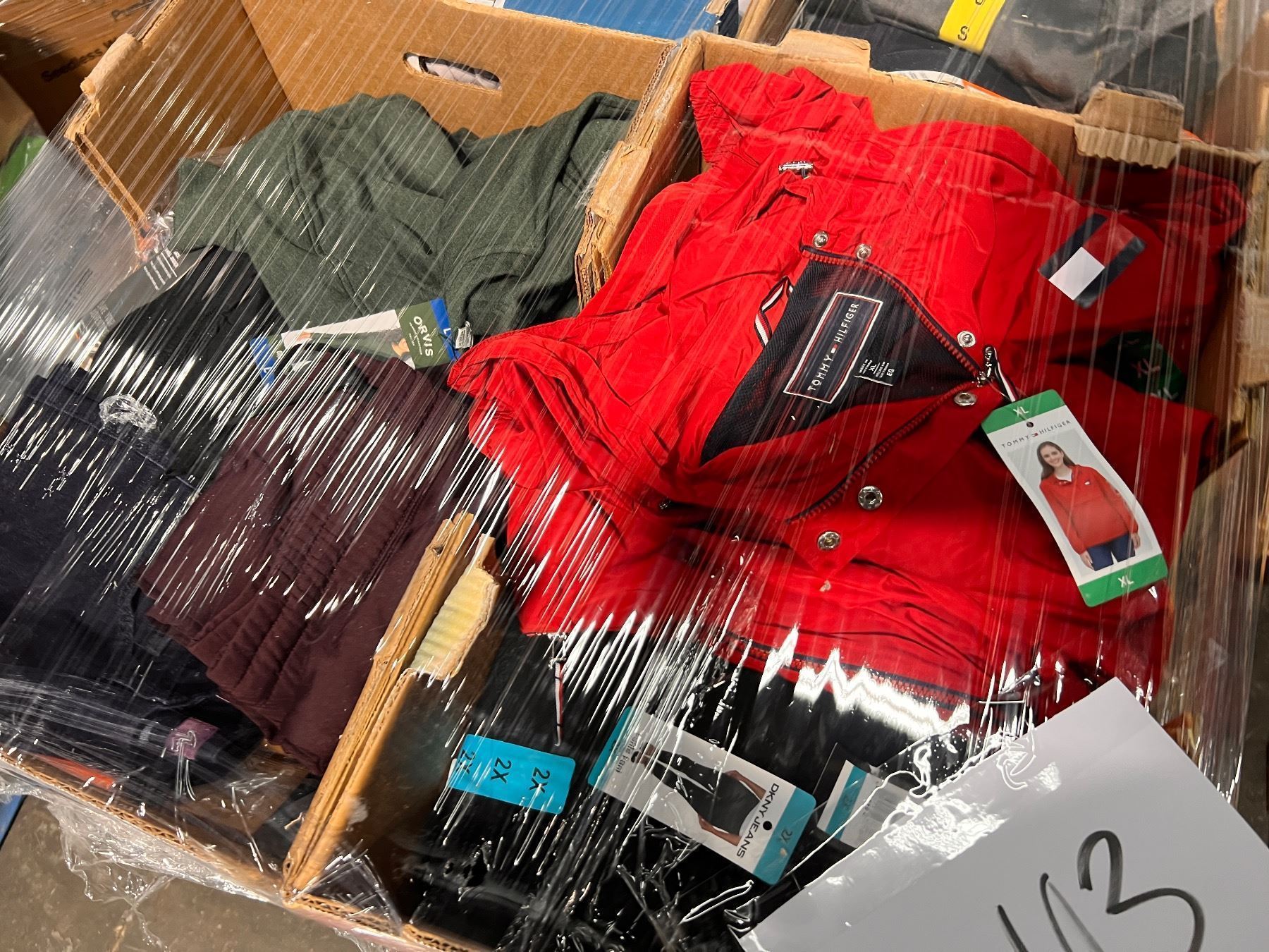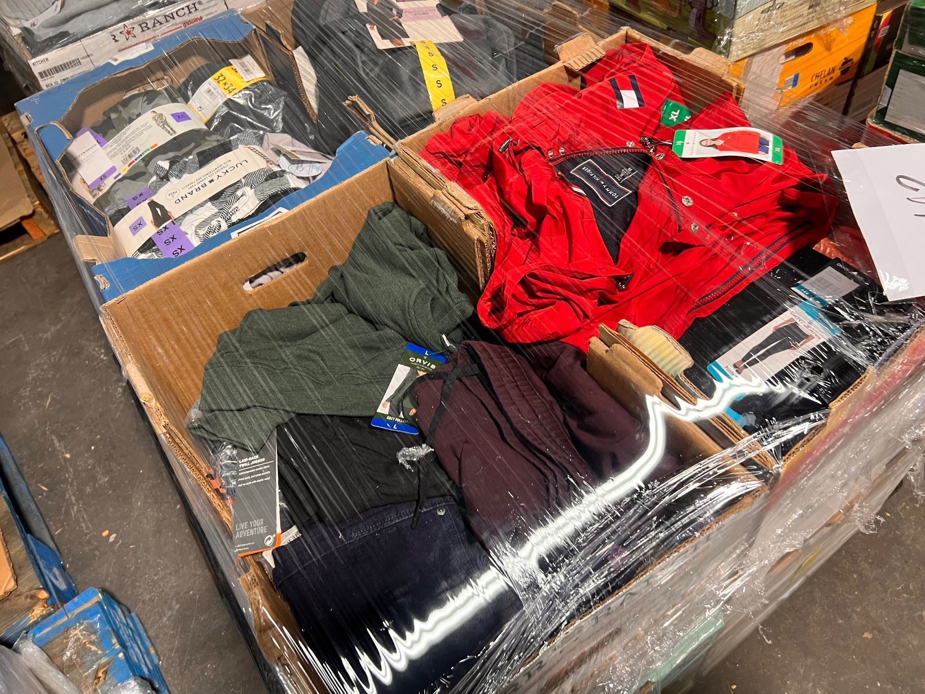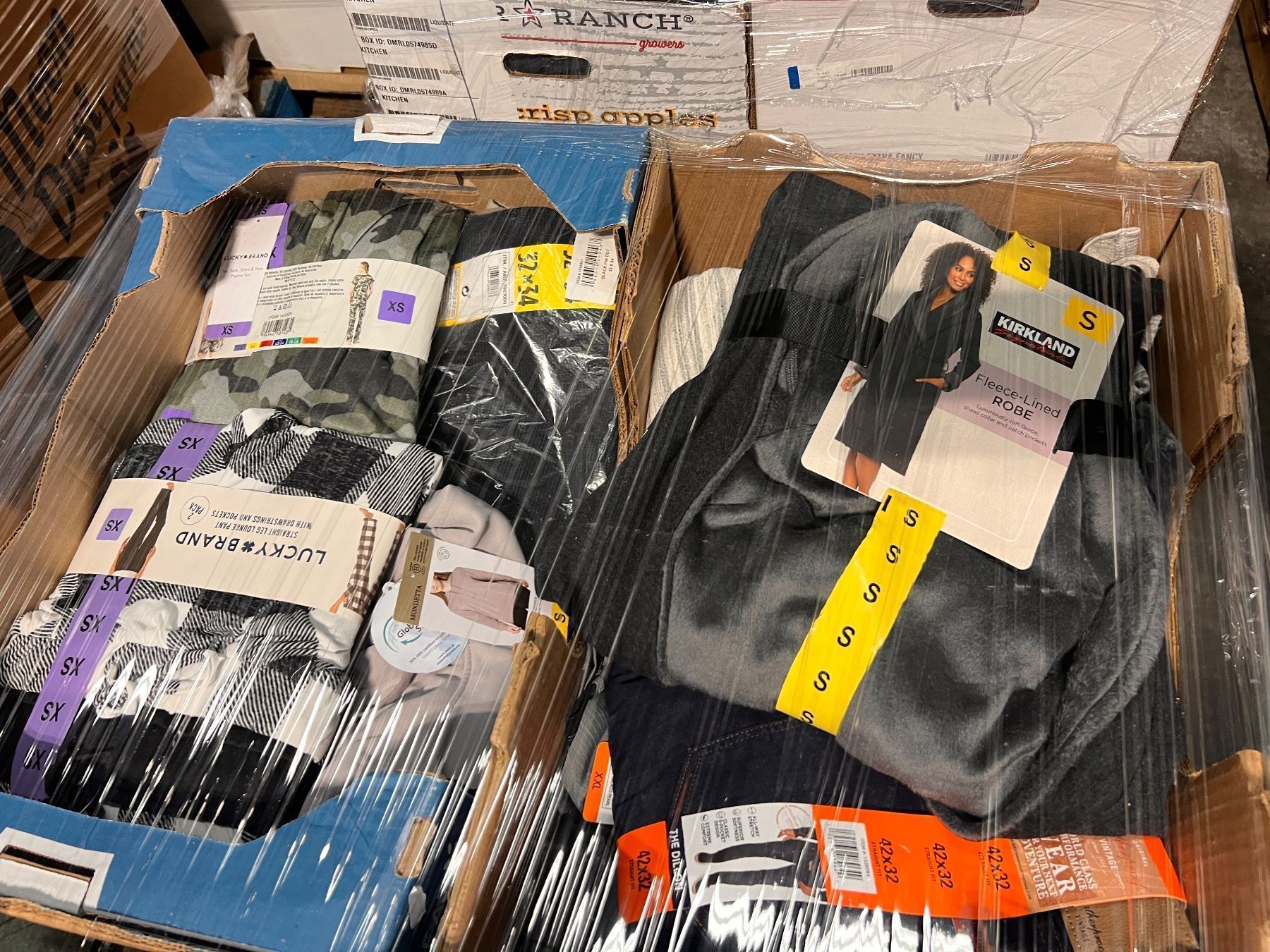 Pallet De ropa de Costco y target clasificada como liquidaciones y sobrecargo. Ropa variada en tamaños, estilos y colores