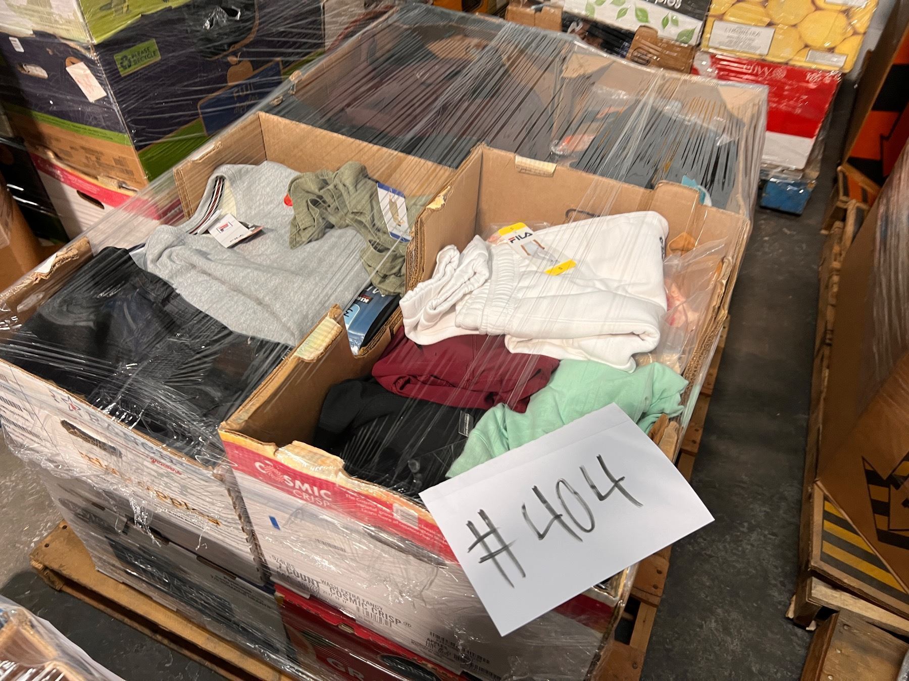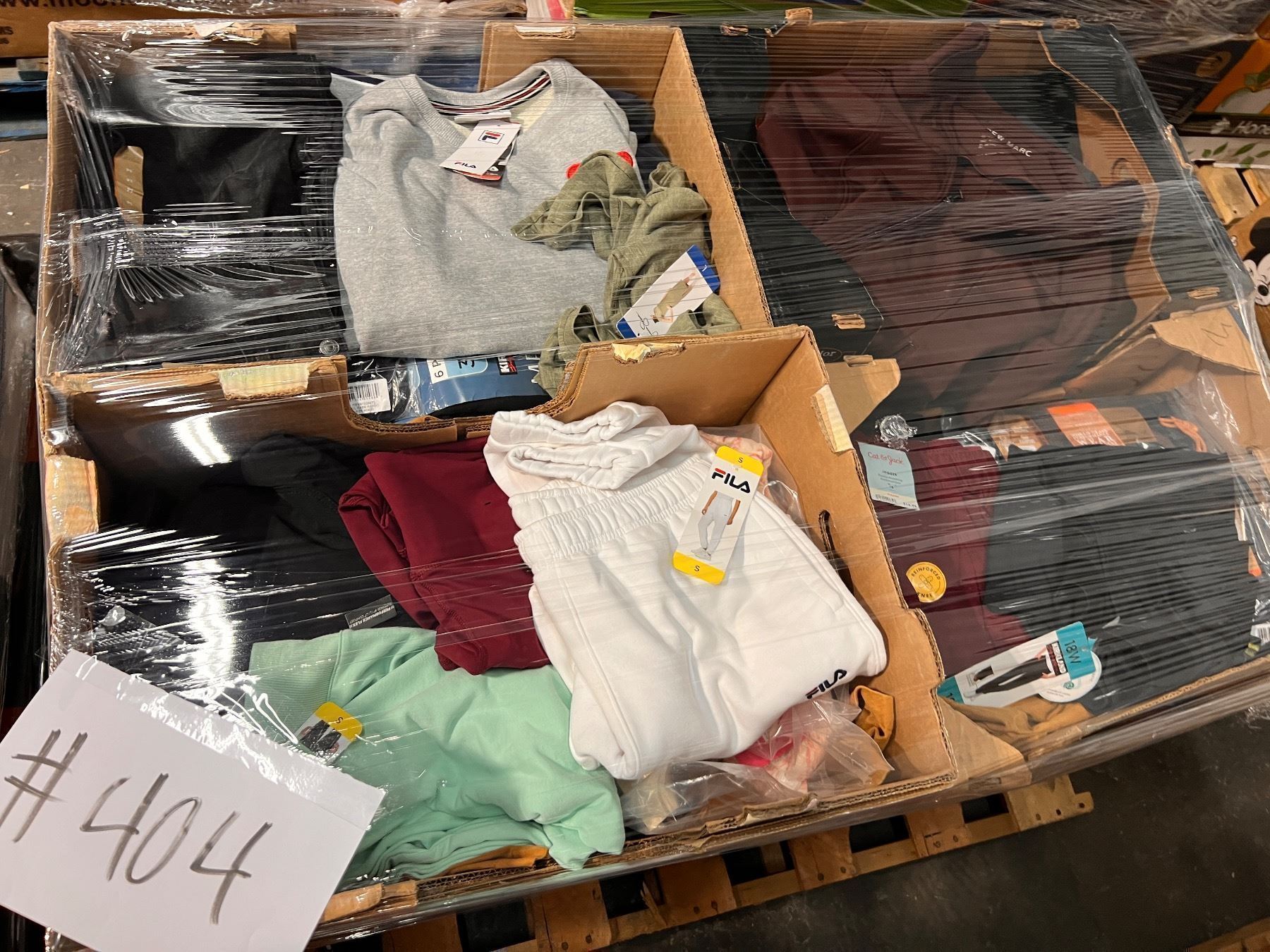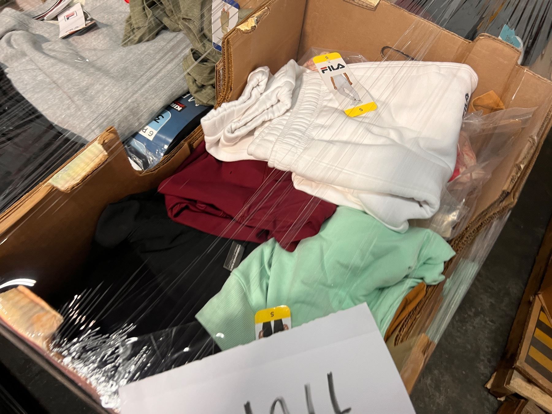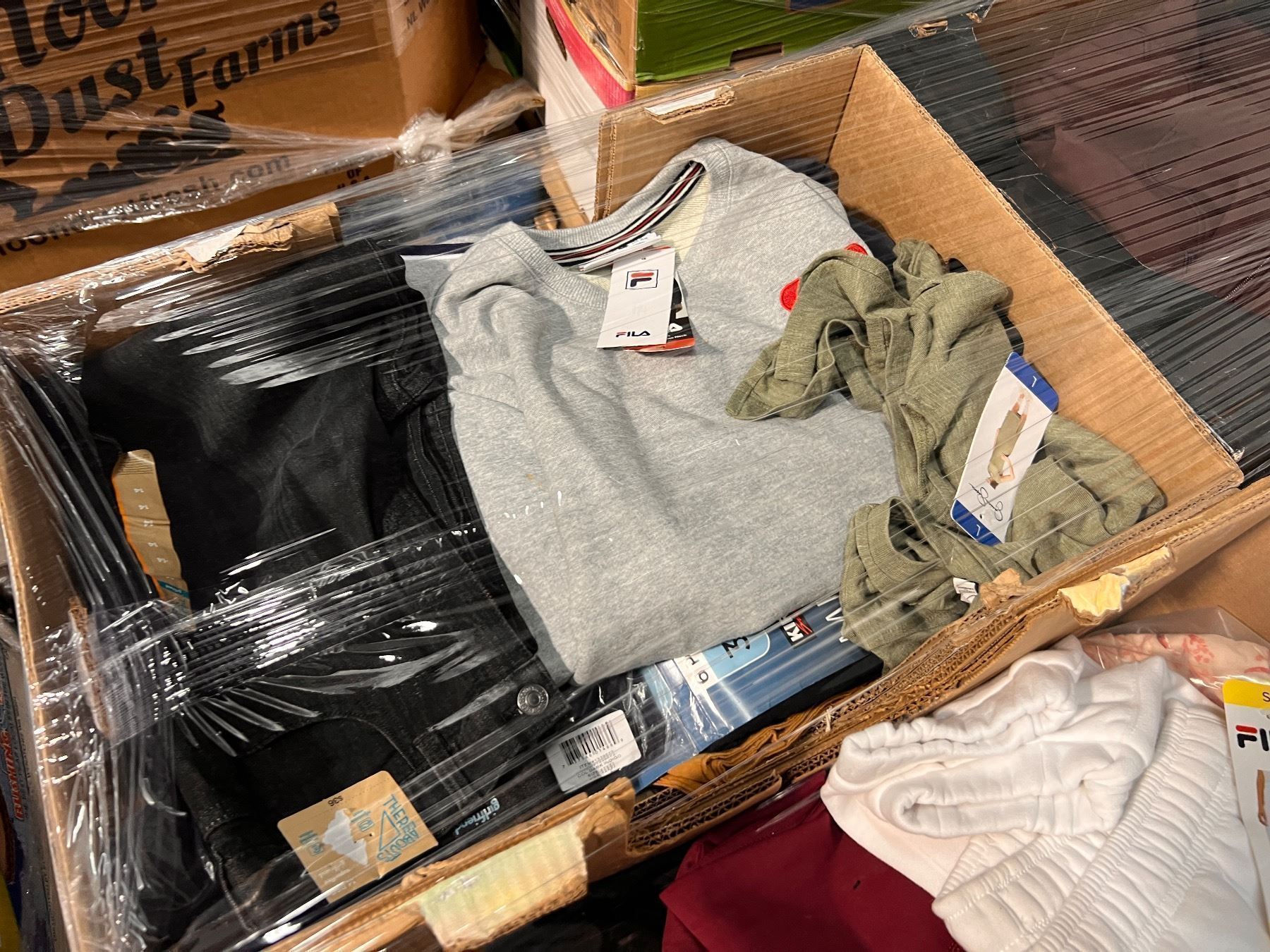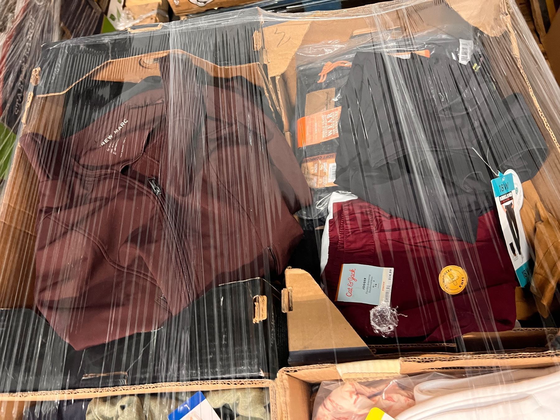 Pallet De ropa de Costco y target clasificada como liquidaciones y sobrecargo. Ropa variada en tamaños, estilos y colores