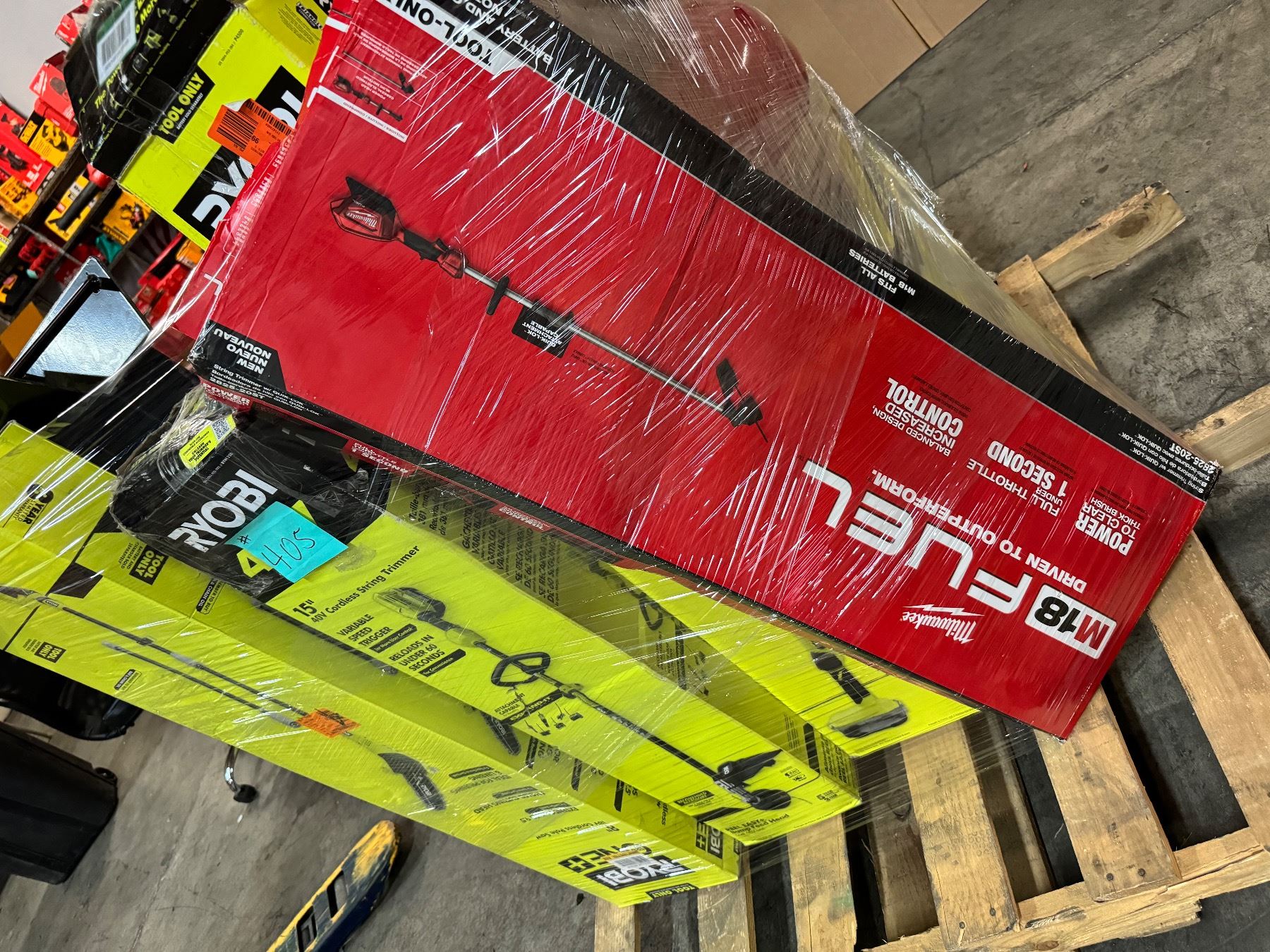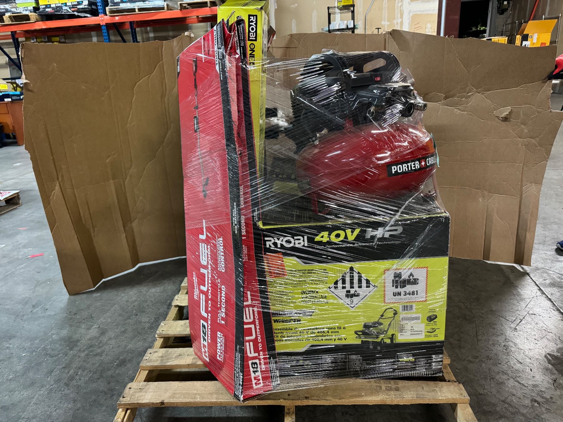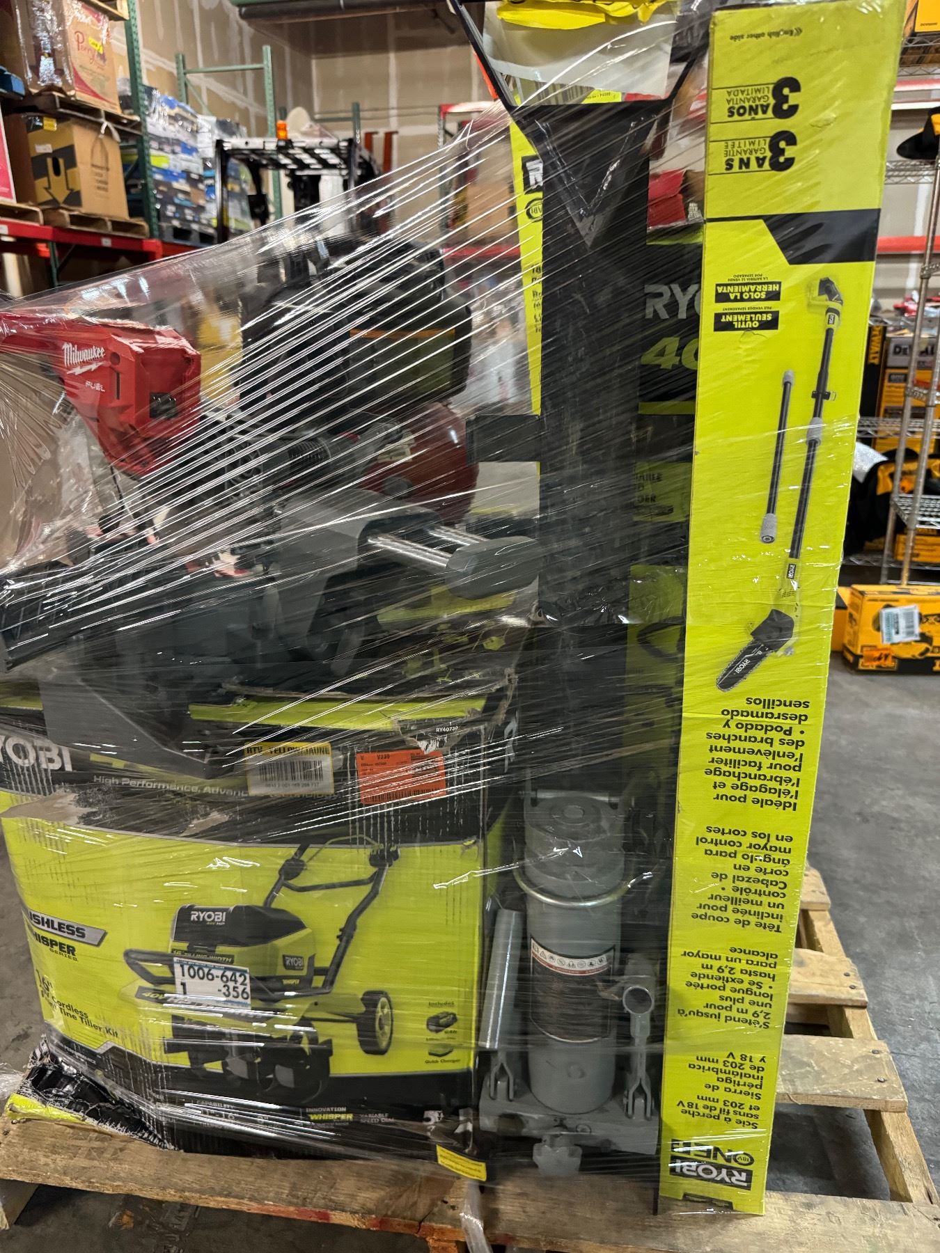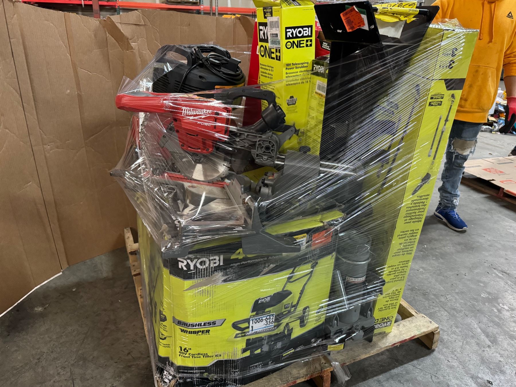 Pallet de Herramienta Home Depot, cada uno de los productos están clasificados como retornos y liquidaciones los cuales pueden venir usados, rotos y incluso completamente nuevos, apueste con responsabilidad y a lo que usted mire.