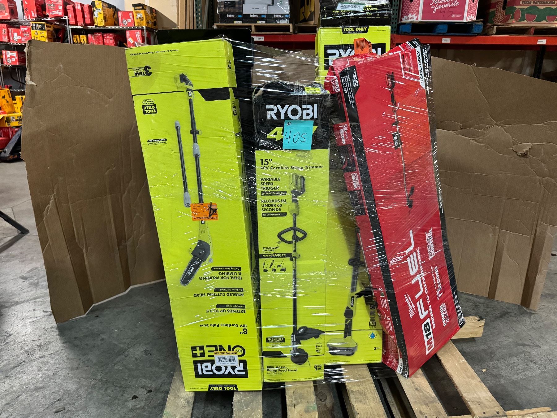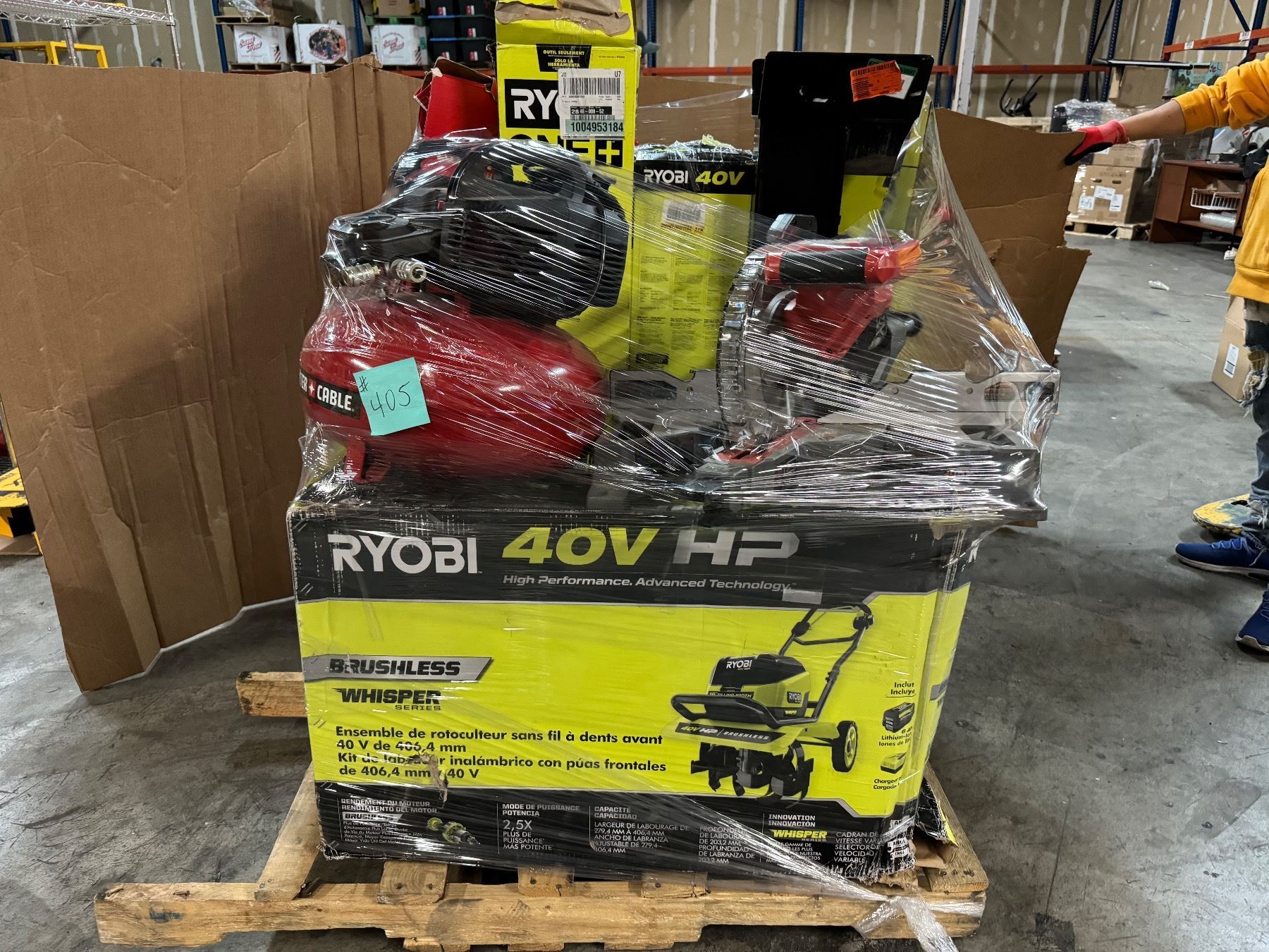 Pallet de Herramienta Home Depot, cada uno de los productos están clasificados como retornos y liquidaciones los cuales pueden venir usados, rotos y incluso completamente nuevos, apueste con responsabilidad y a lo que usted mire.