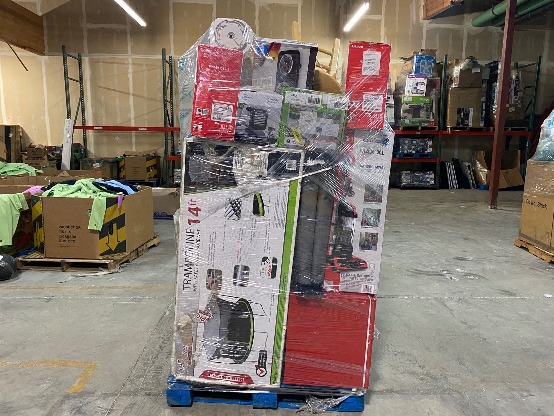 En este pallet usted podria encontrar mercancia general de los diferentes almacenes de los Estados Unidos tales como Walmart, Target, Home Depot, JCPenney