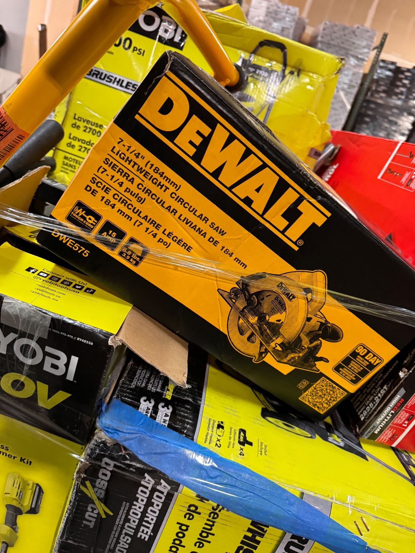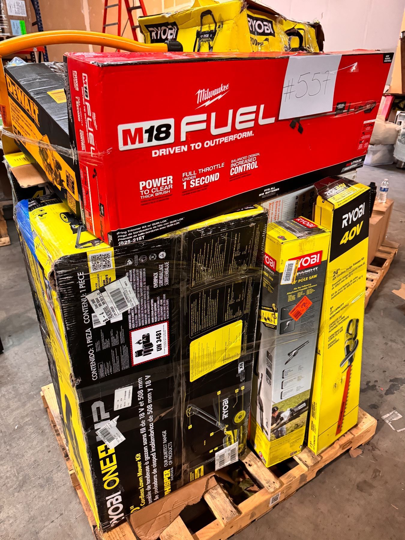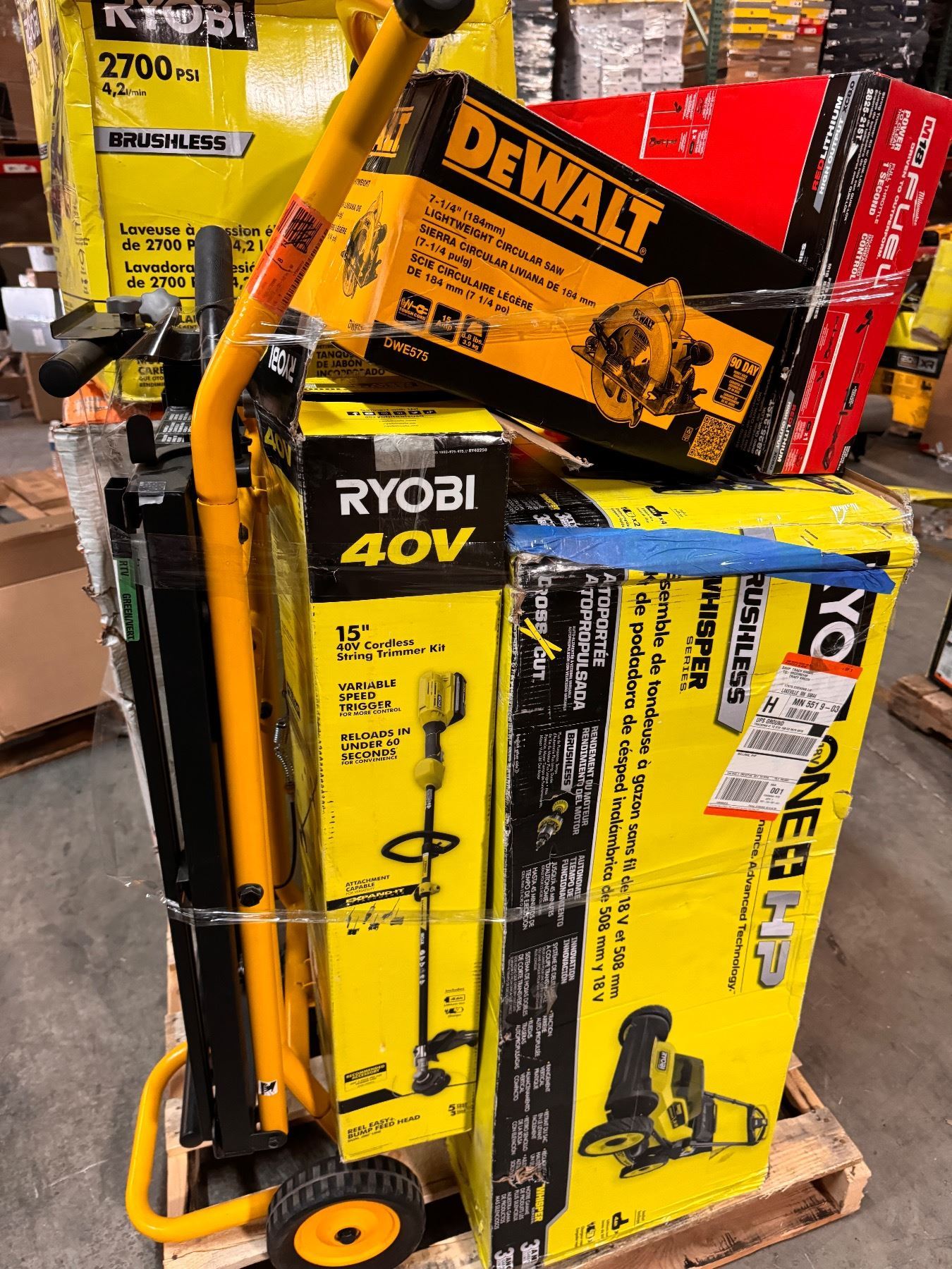 Pallet de Herramienta Home Depot, cada uno de los productos están clasificados como retornos y liquidaciones los cuales pueden venir usados, rotos y incluso completamente nuevos, apueste con responsabilidad y a lo que usted mire.
