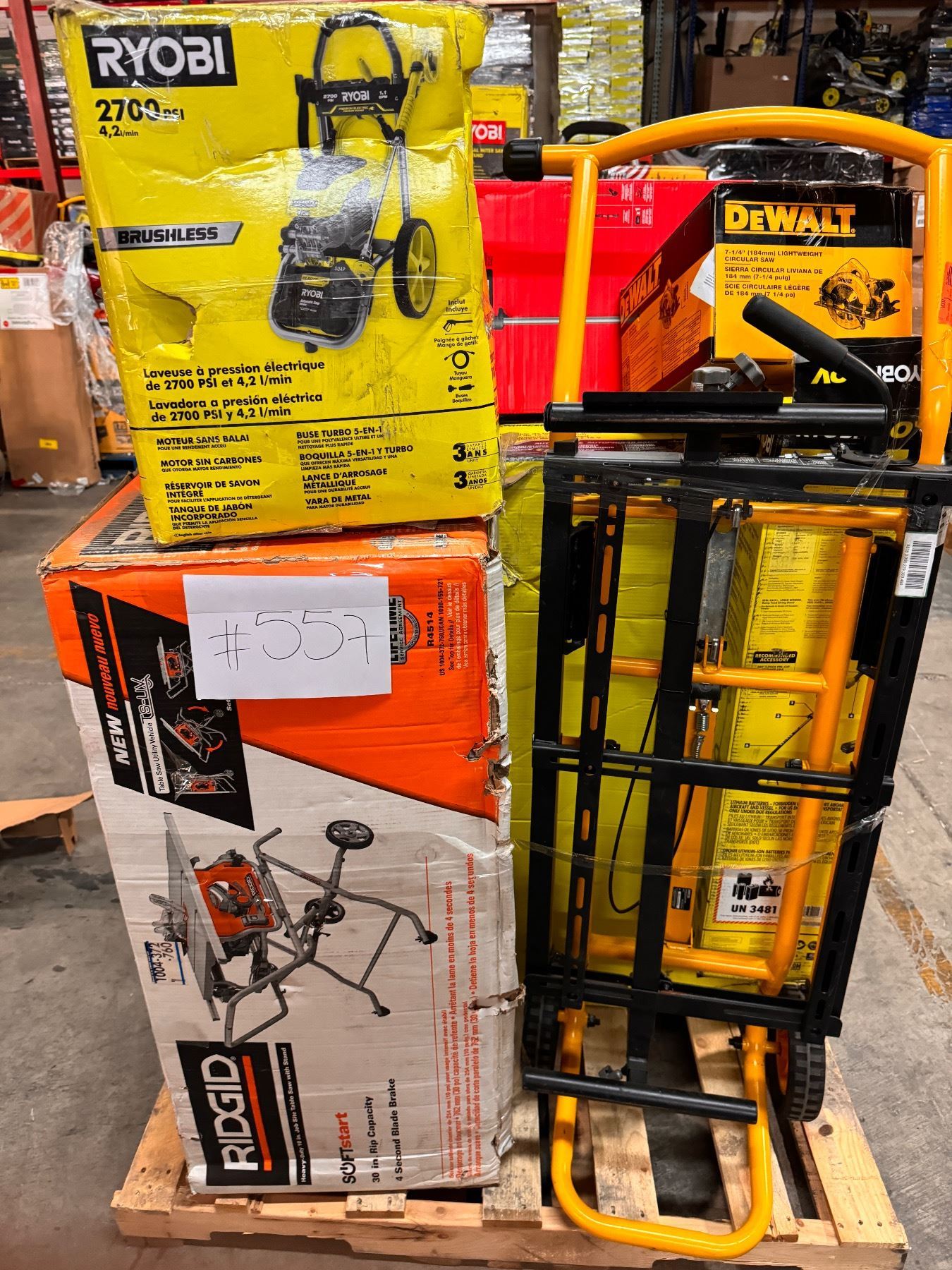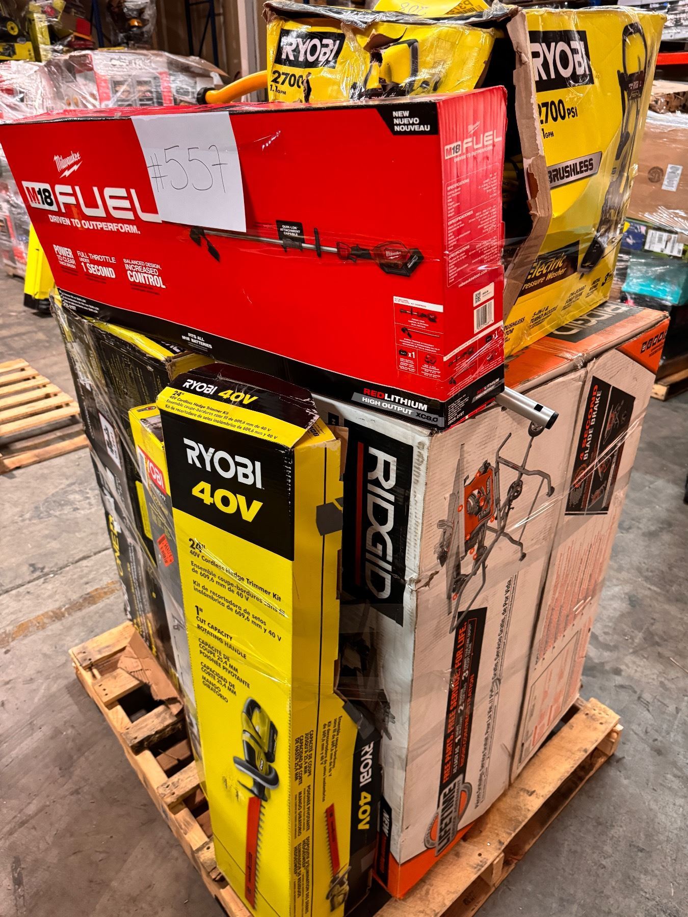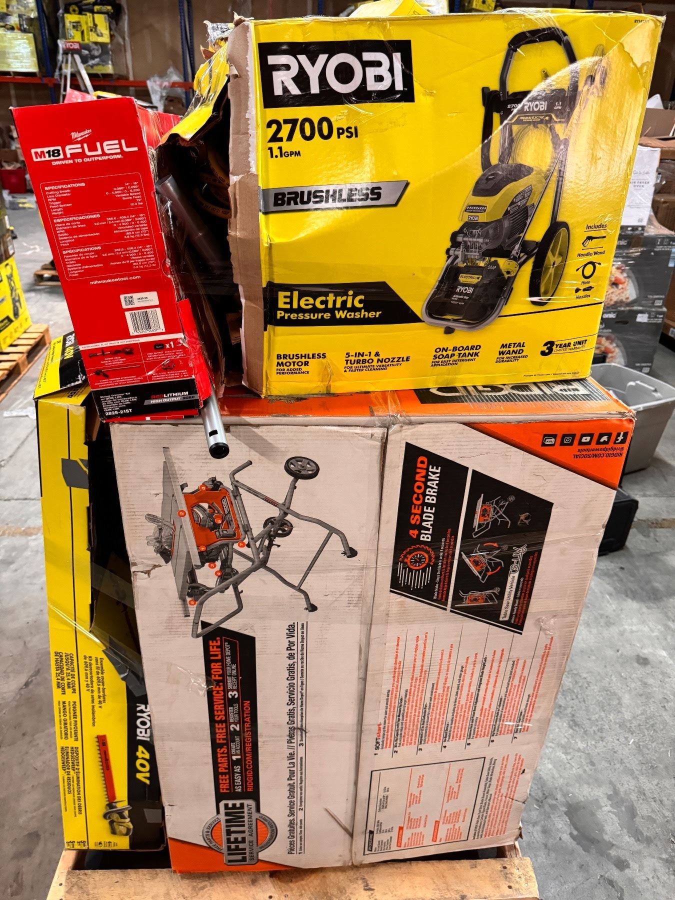 Pallet de Herramienta Home Depot, cada uno de los productos están clasificados como retornos y liquidaciones los cuales pueden venir usados, rotos y incluso completamente nuevos, apueste con responsabilidad y a lo que usted mire.