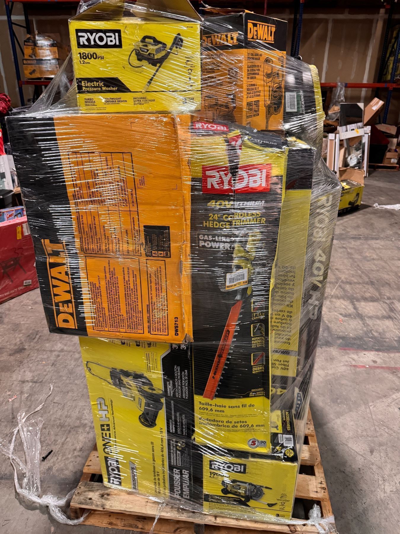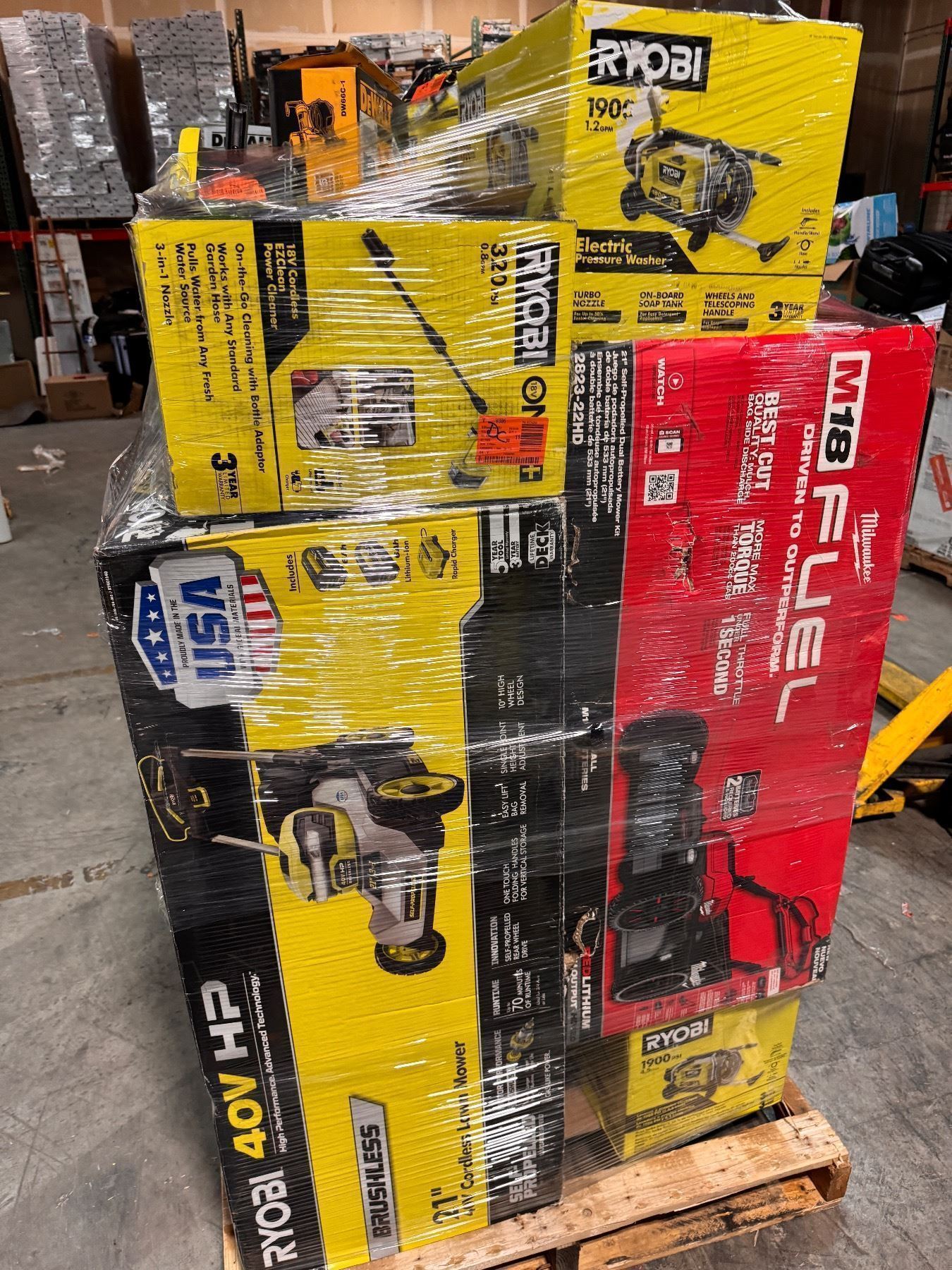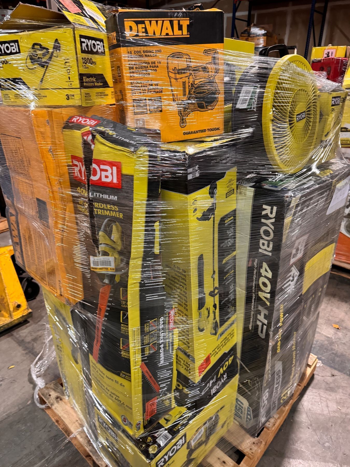 Pallet de Herramienta Home Depot, cada uno de los productos están clasificados como retornos y liquidaciones los cuales pueden venir usados, rotos y incluso completamente nuevos, apueste con responsabilidad y a lo que usted mire.