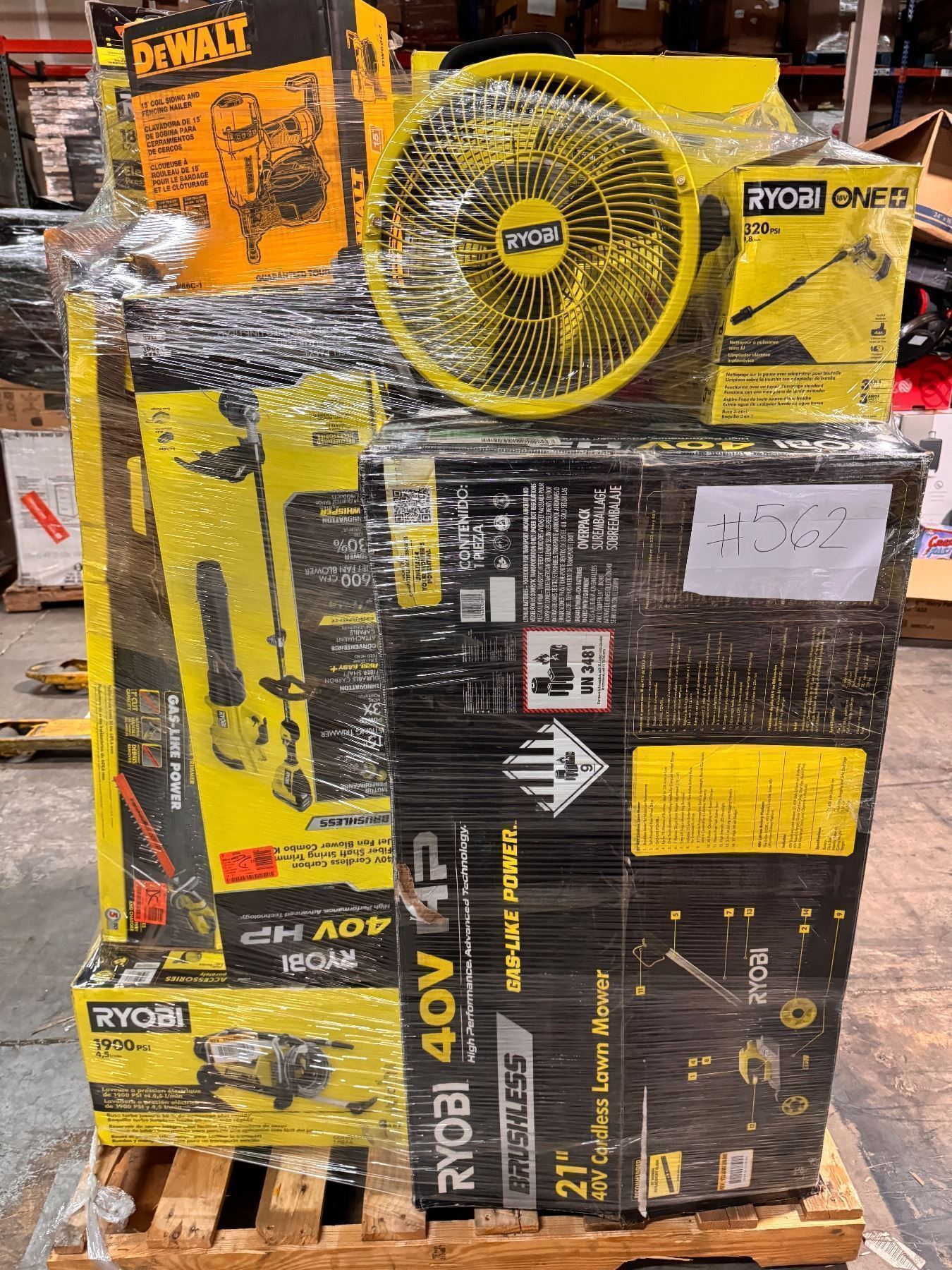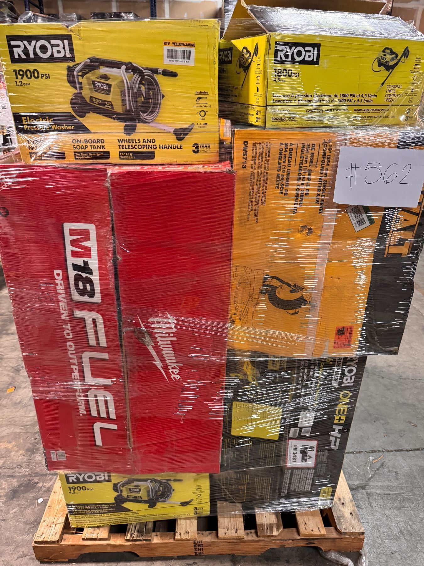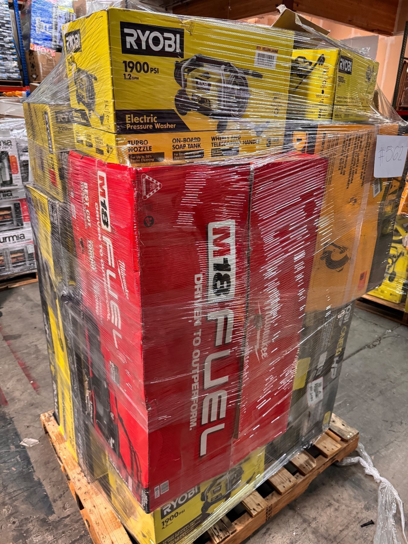 Pallet de Herramienta Home Depot, cada uno de los productos están clasificados como retornos y liquidaciones los cuales pueden venir usados, rotos y incluso completamente nuevos, apueste con responsabilidad y a lo que usted mire.