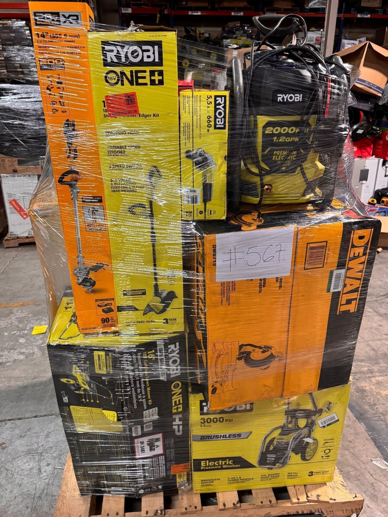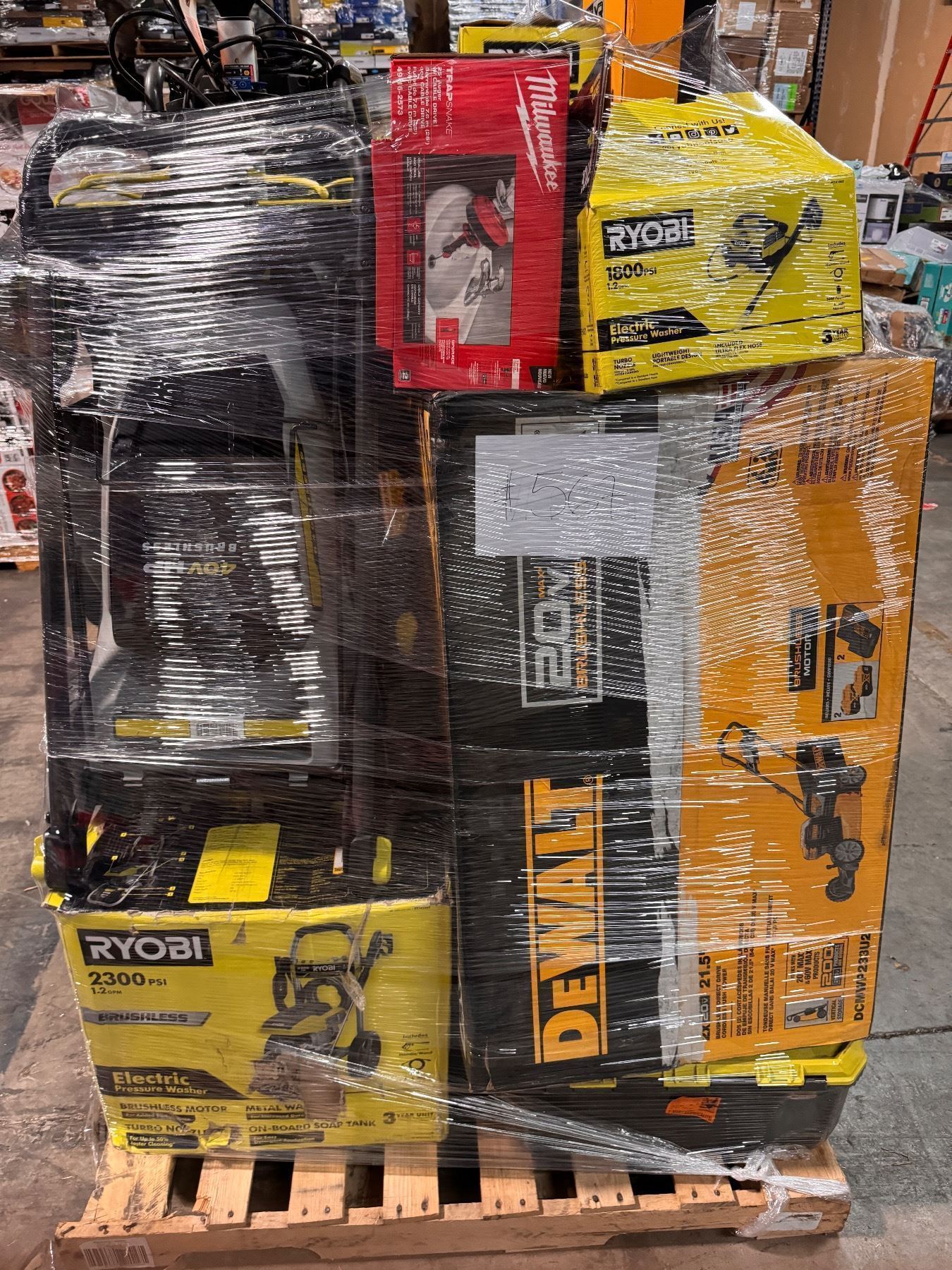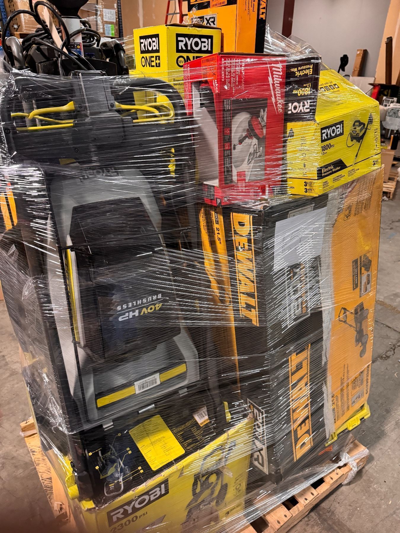 Pallet de Herramienta Home Depot, cada uno de los productos están clasificados como retornos y liquidaciones los cuales pueden venir usados, rotos y incluso completamente nuevos, apueste con responsabilidad y a lo que usted mire.
