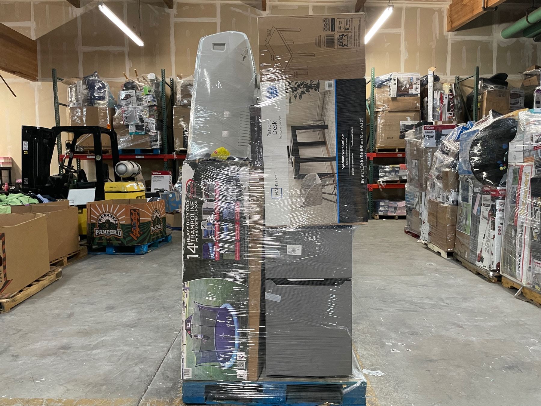 En este pallet usted podria encontrar mercancia general de los diferentes almacenes de los Estados Unidos tales como Walmart, Target, Home Depot, JCPenney