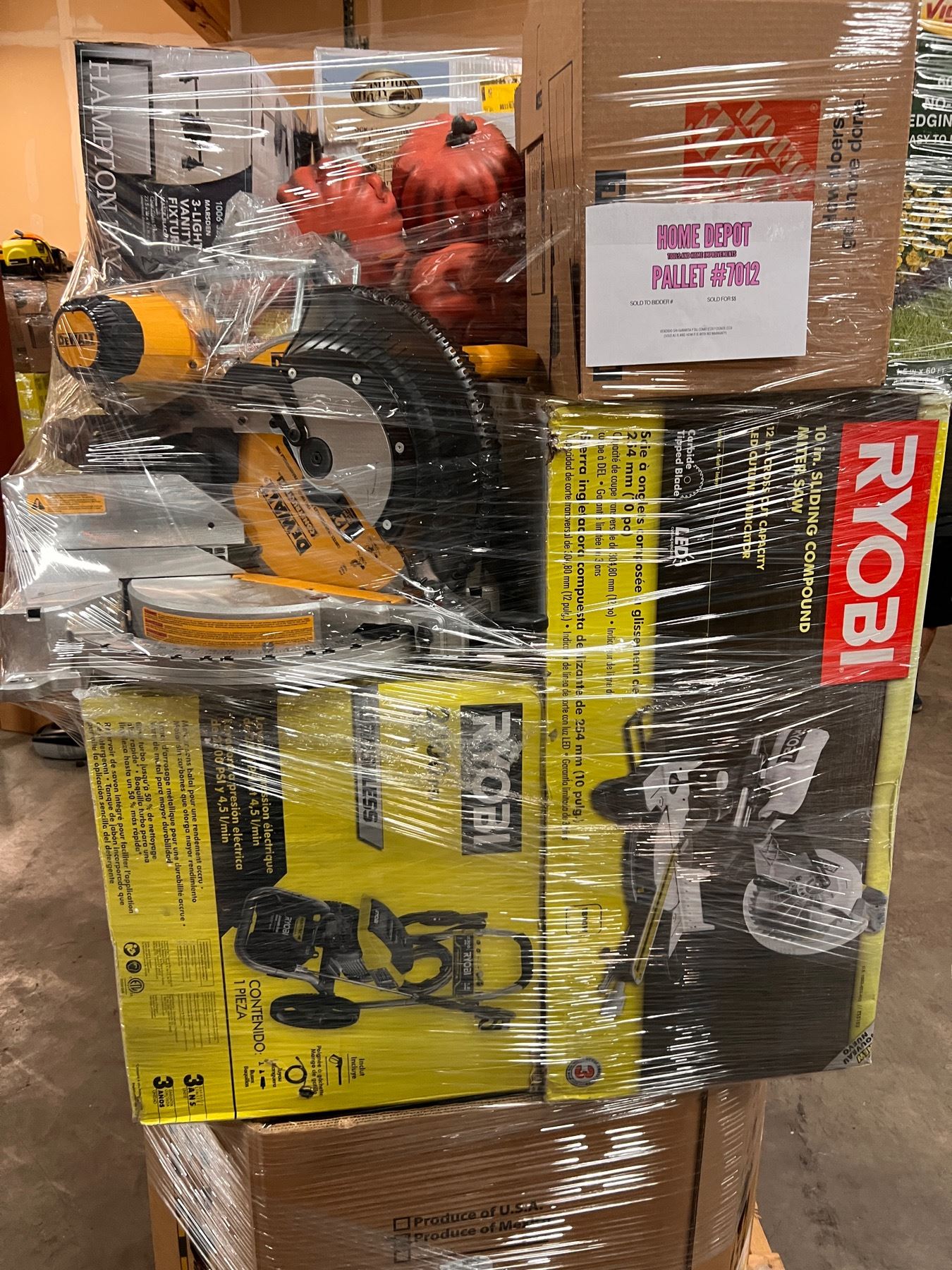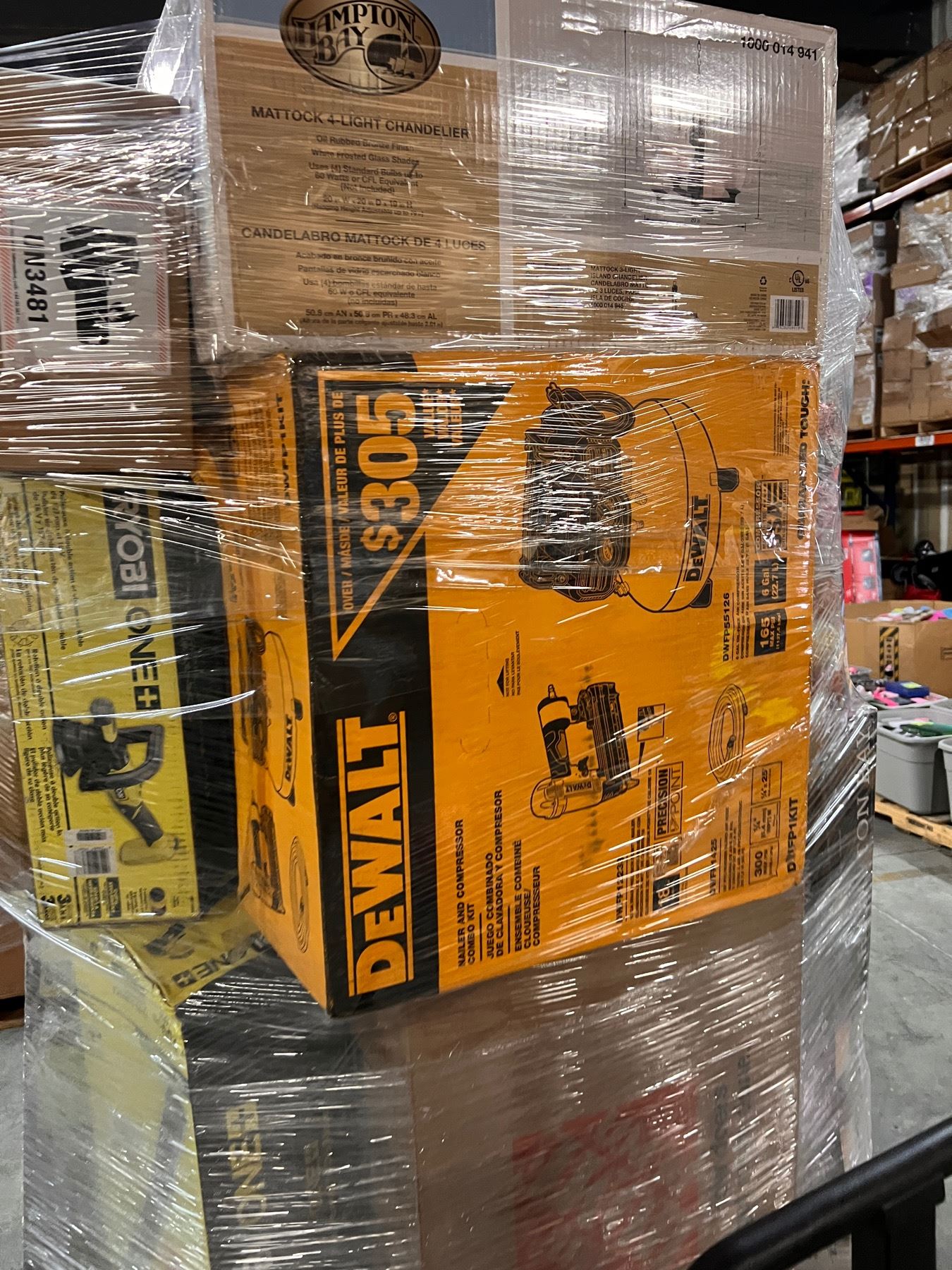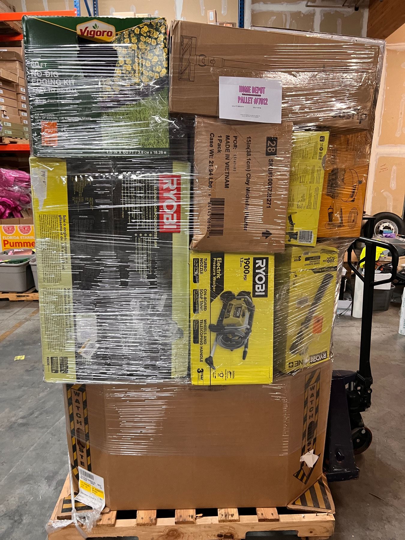 Pallet con Mercancia de Home Depot, Herramientas y Home Improvements. Usted es Responsable de agendar con la compañía de su preferencia para su traslado de mercancía o también tiene la opción de venir por ella a nuestra locación.
