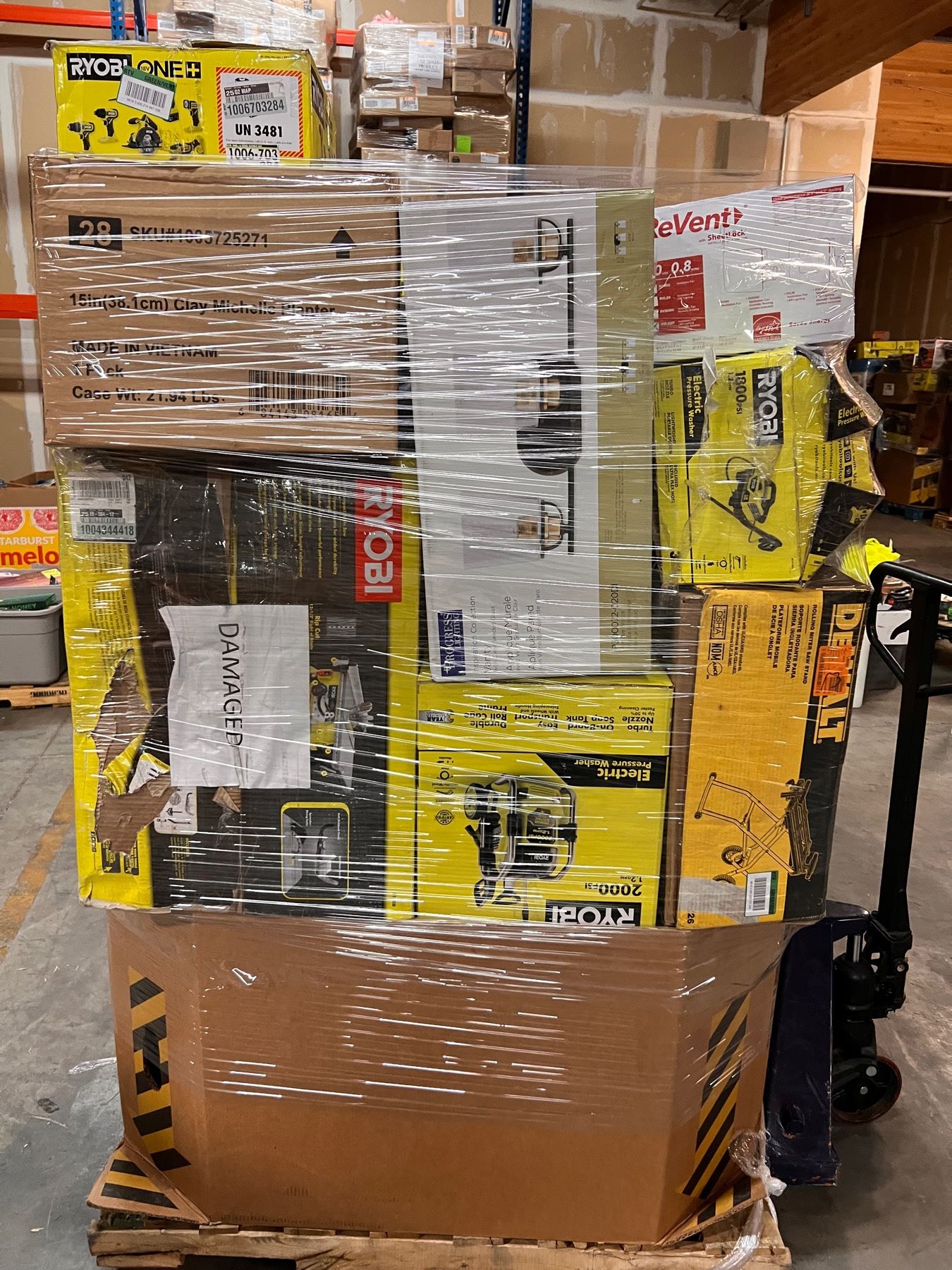 Pallet con Mercancia de Home Depot, Herramientas y Home Improvements. Usted es Responsable de agendar con la compañía de su preferencia para su traslado de mercancía o también tiene la opción de venir por ella a nuestra locación.