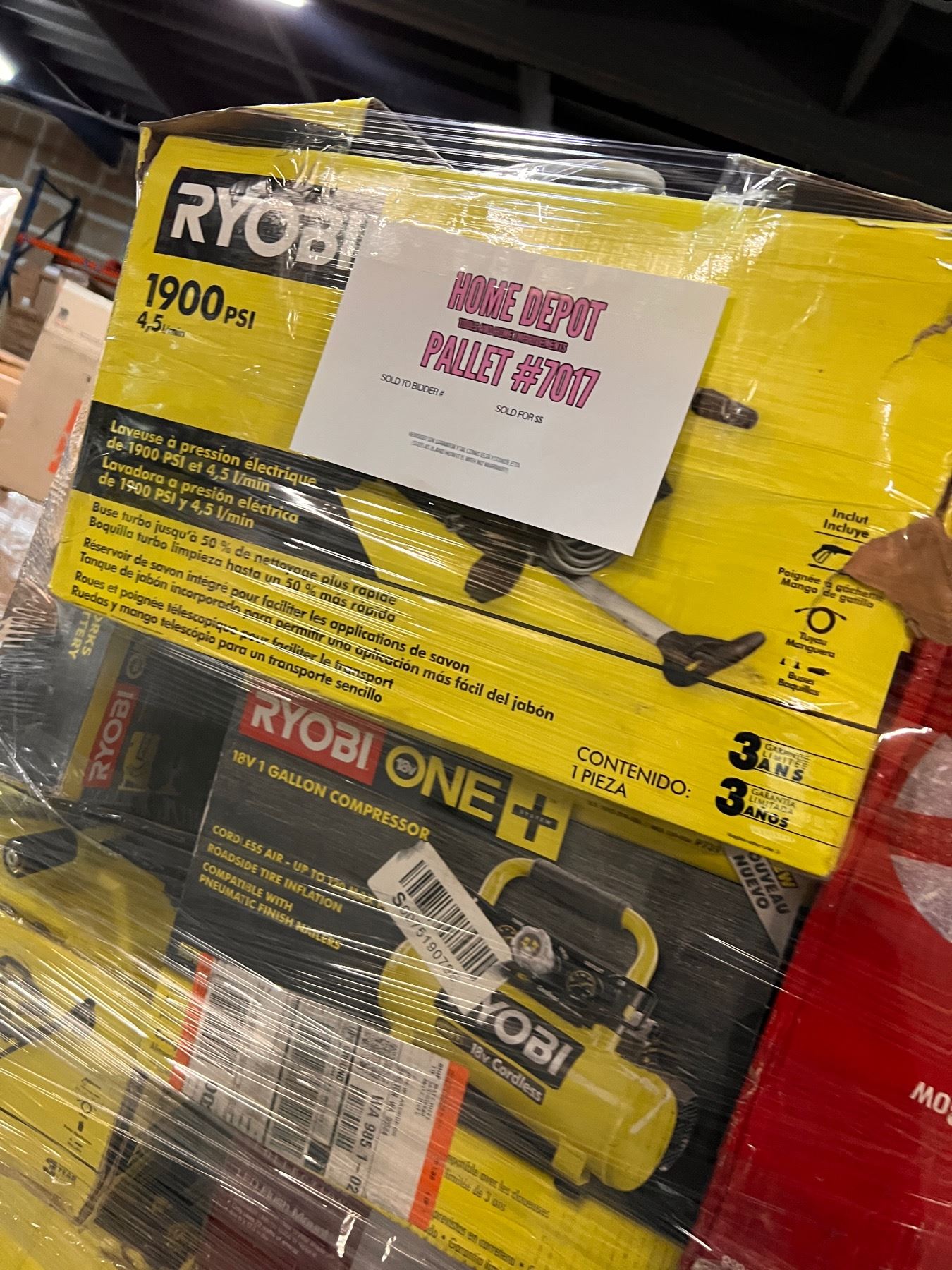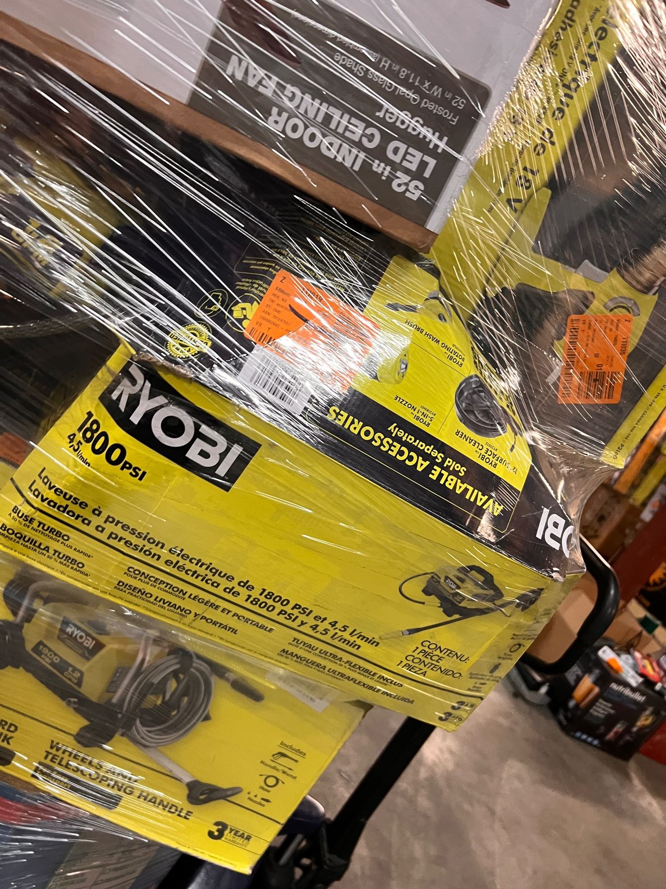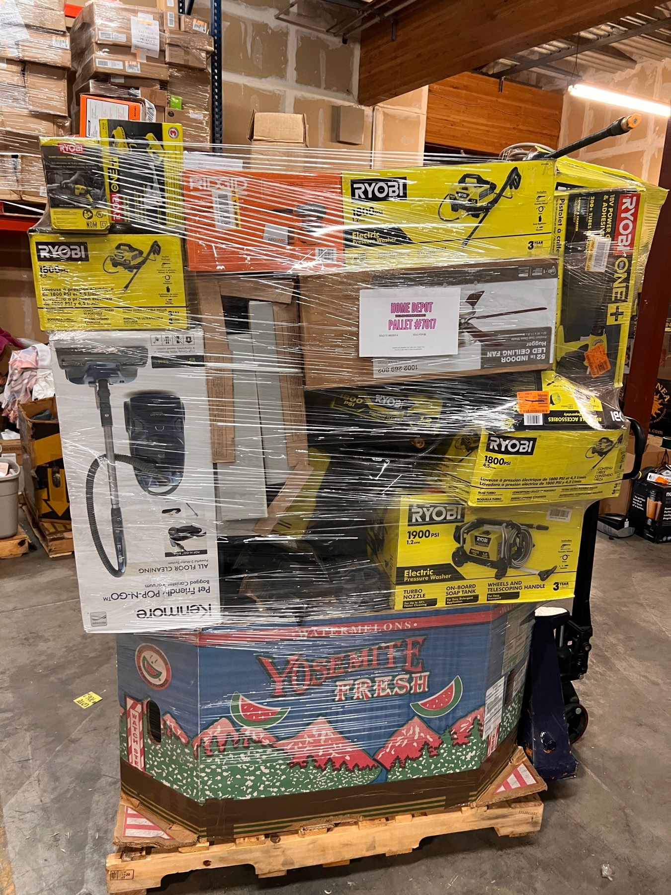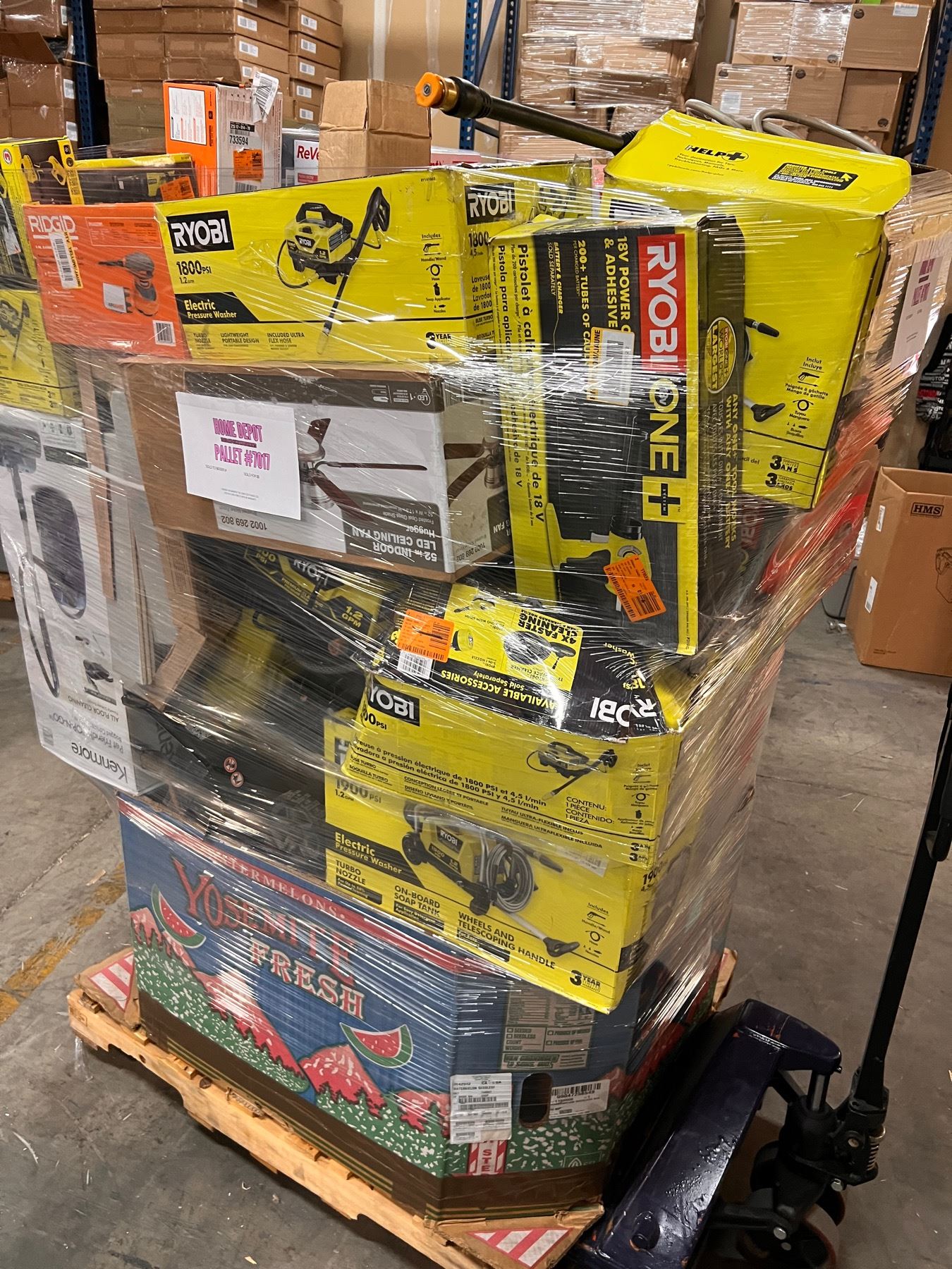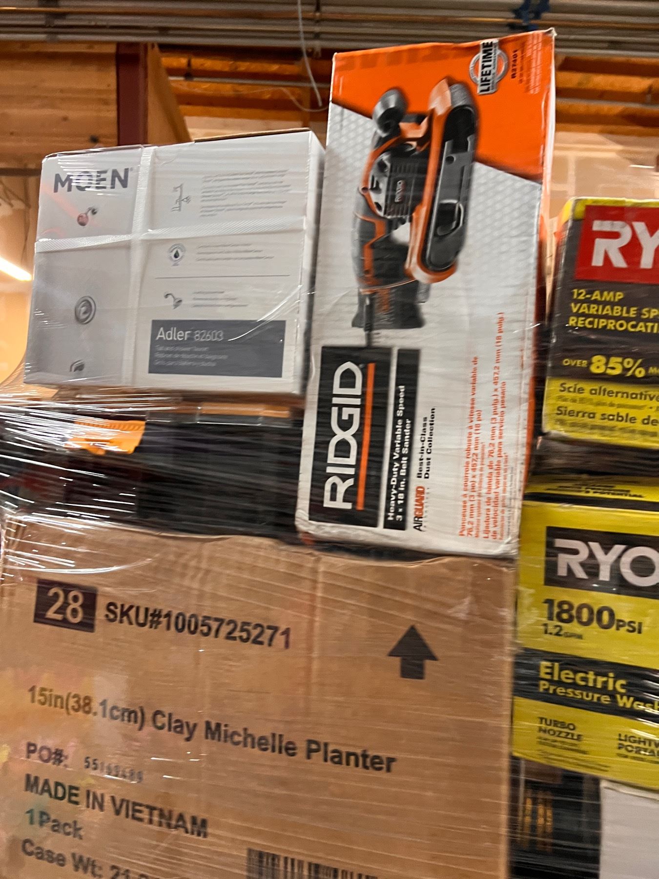 Pallet con Mercancia de Home Depot, Herramientas y Home Improvements. Usted es Responsable de agendar con la compañía de su preferencia para su traslado de mercancía o también tiene la opción de venir por ella a nuestra locación.