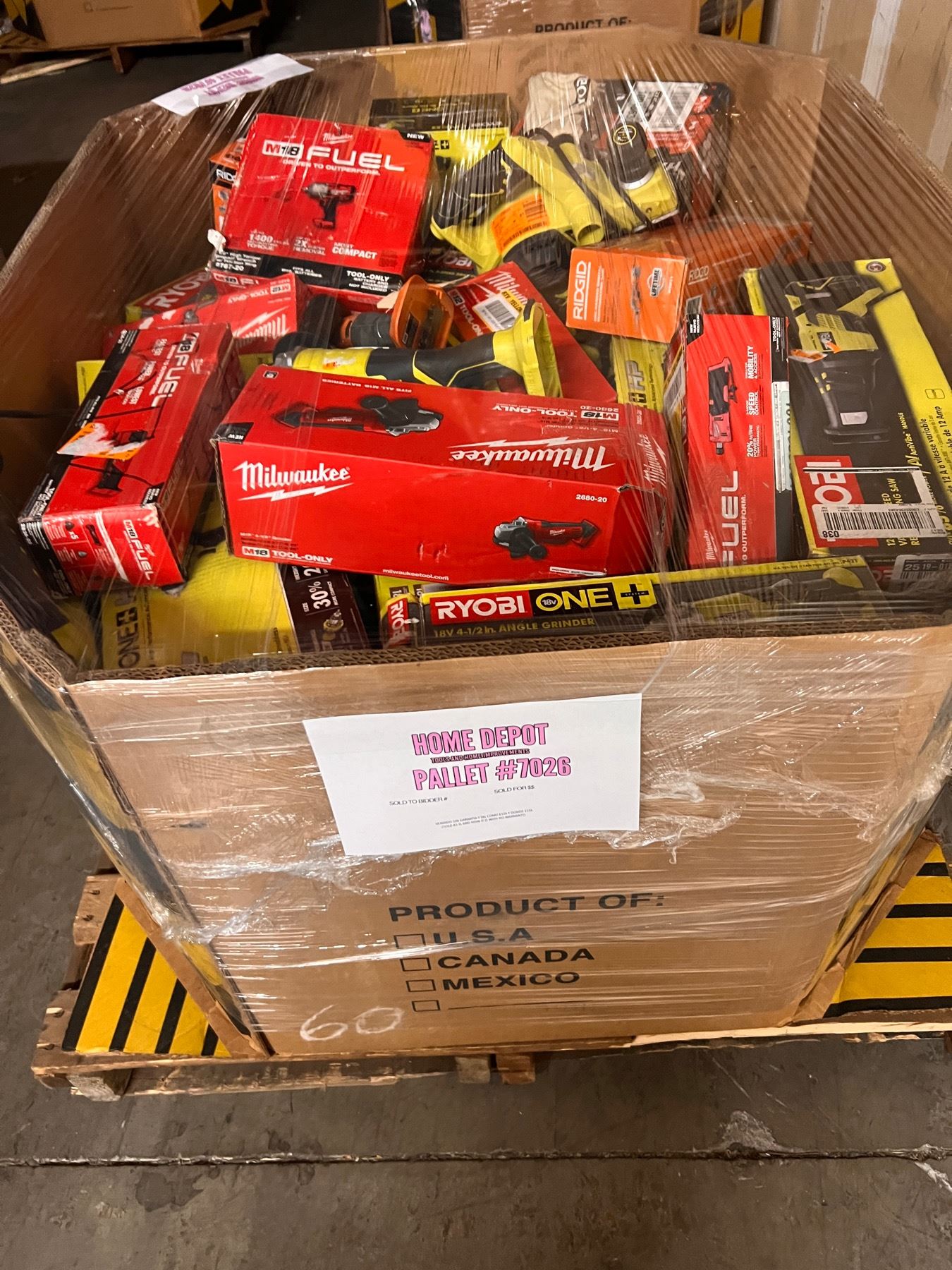 Pallet con Mercancia de Home Depot, Herramientas y Home Improvements. Usted es Responsable de agendar con la compañía de su preferencia para su traslado de mercancía o también tiene la opción de venir por ella a nuestra locación.