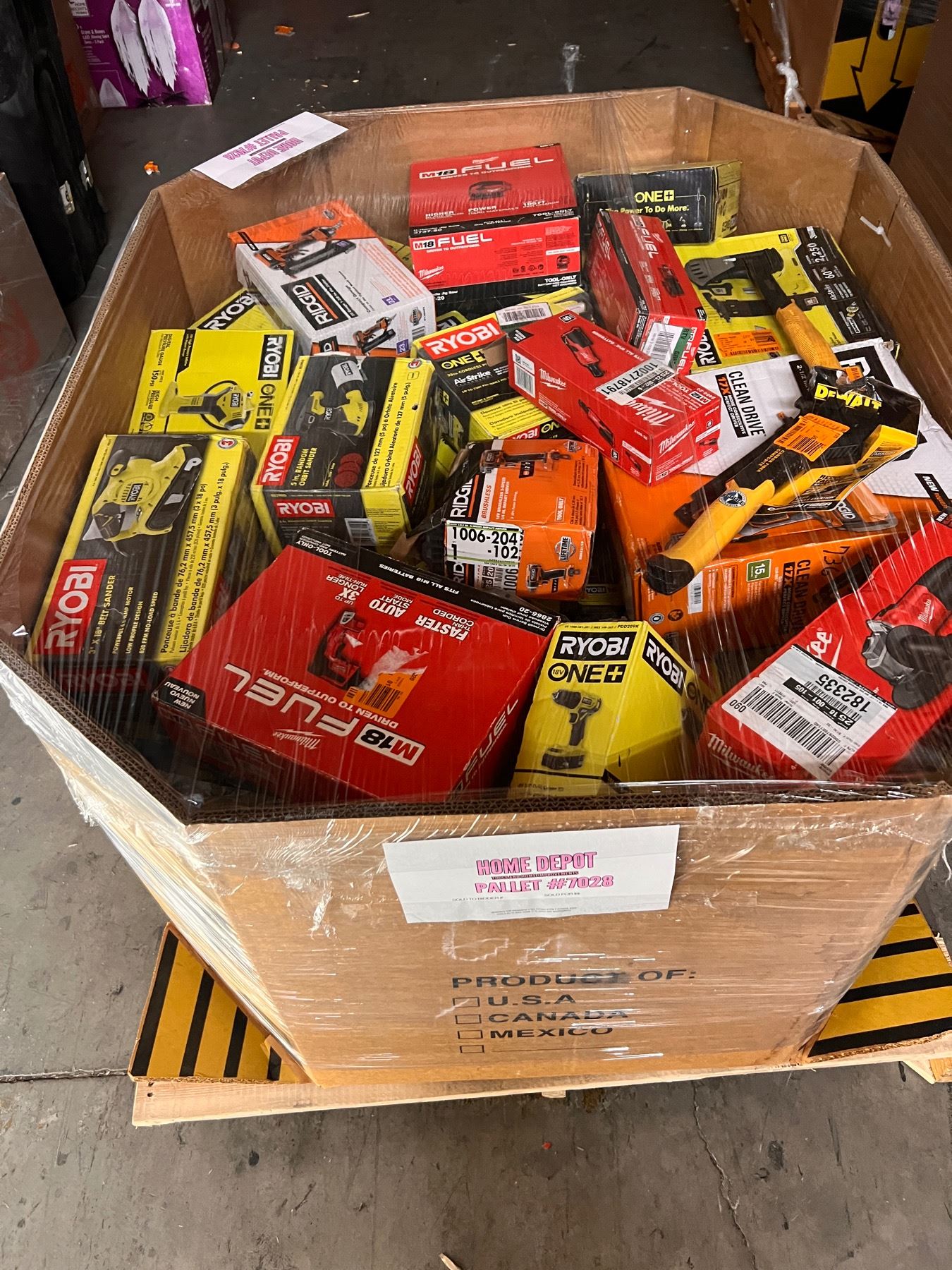 Pallet con Mercancia de Home Depot, Herramientas y Home Improvements. Usted es Responsable de agendar con la compañía de su preferencia para su traslado de mercancía o también tiene la opción de venir por ella a nuestra locación.