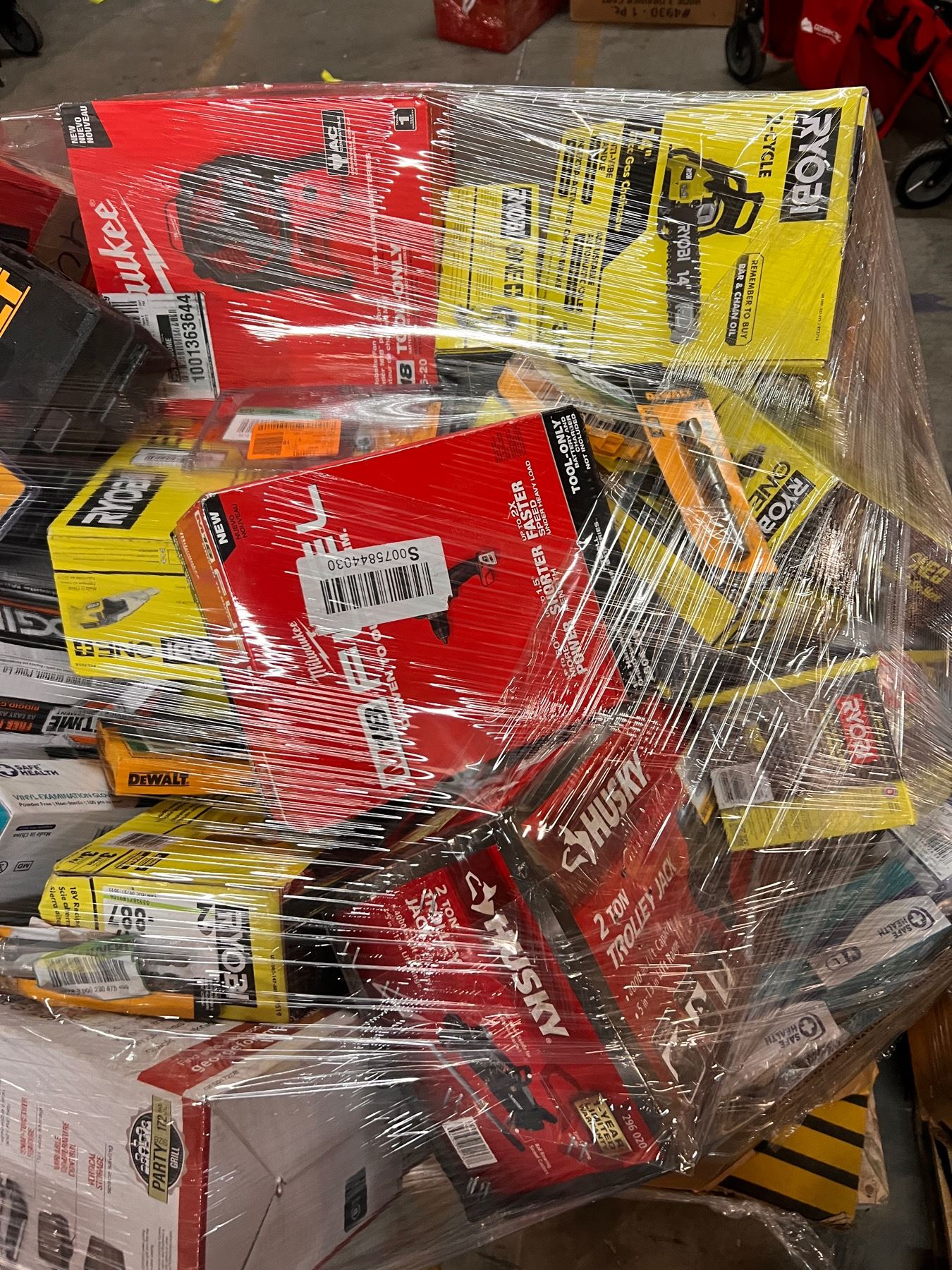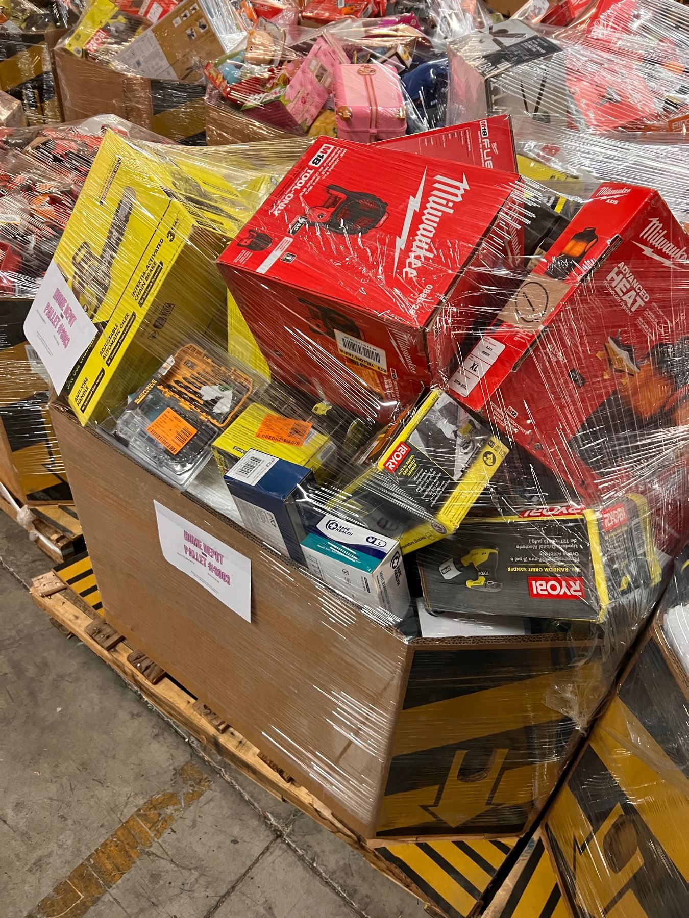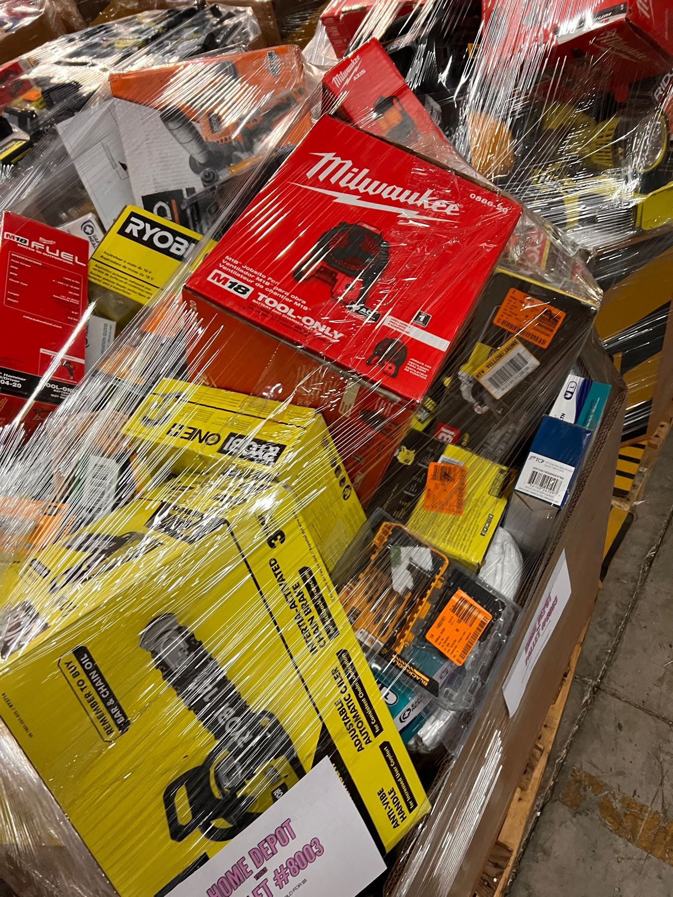 Pallet con Mercancia de Home Depot, la cual incluye Herramientas y Home Improvements. Toda la mercancia es clasificada como retornos y liquidaciones. Usted es responsable de venir por su mercancia al lugar donde la subasta se llevaba acabo o de los gastos de su traslado mediante envío el cual usted también es responsable de elegir la compañía de envíos.
