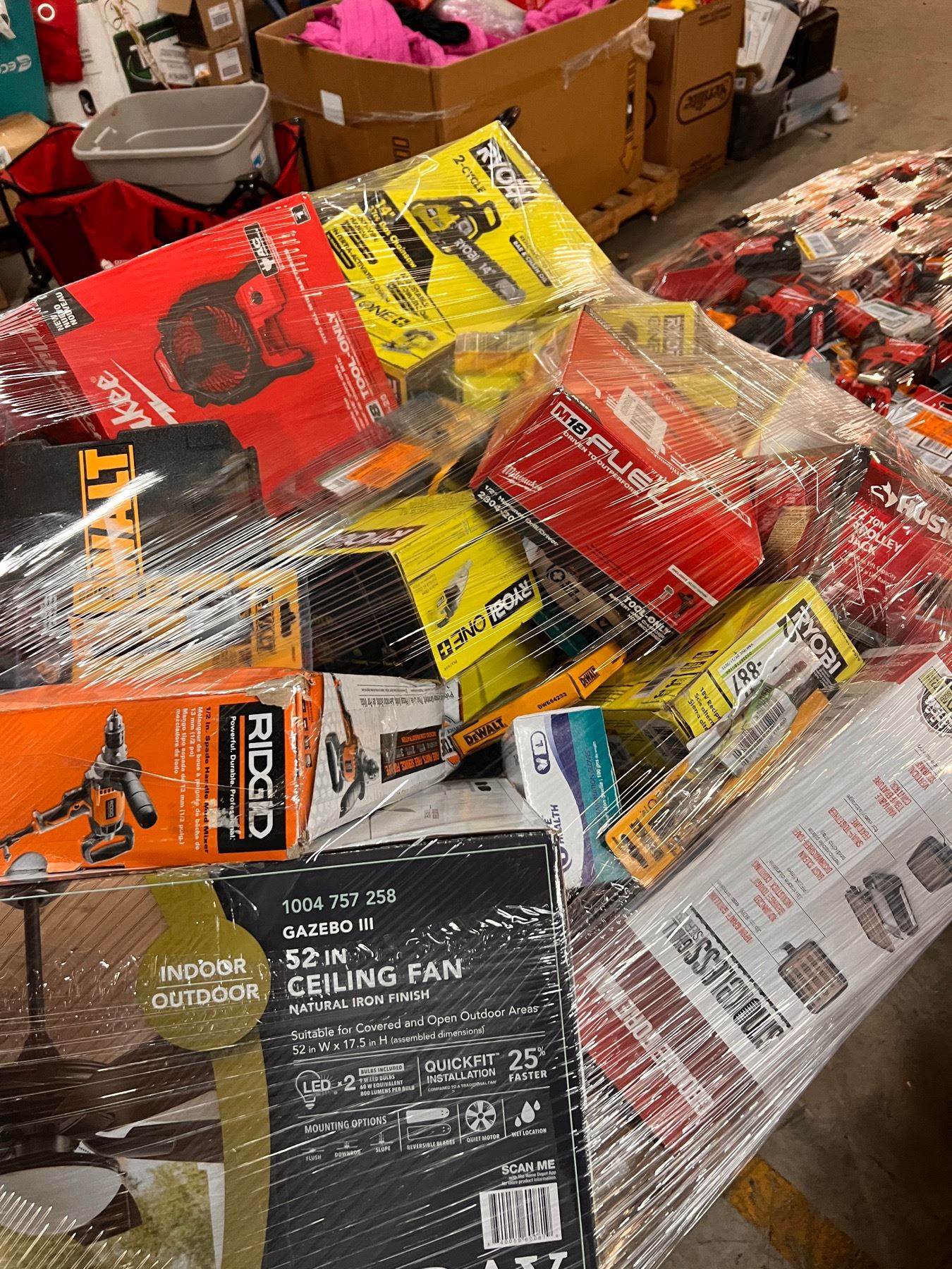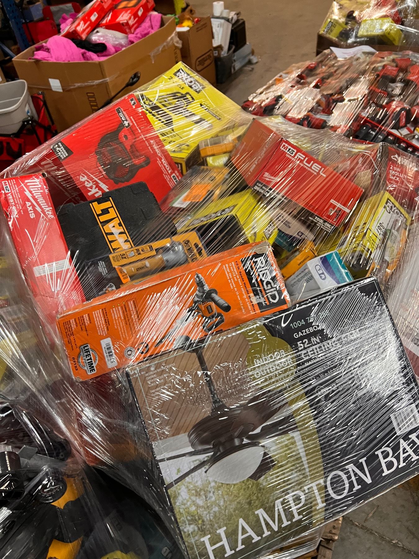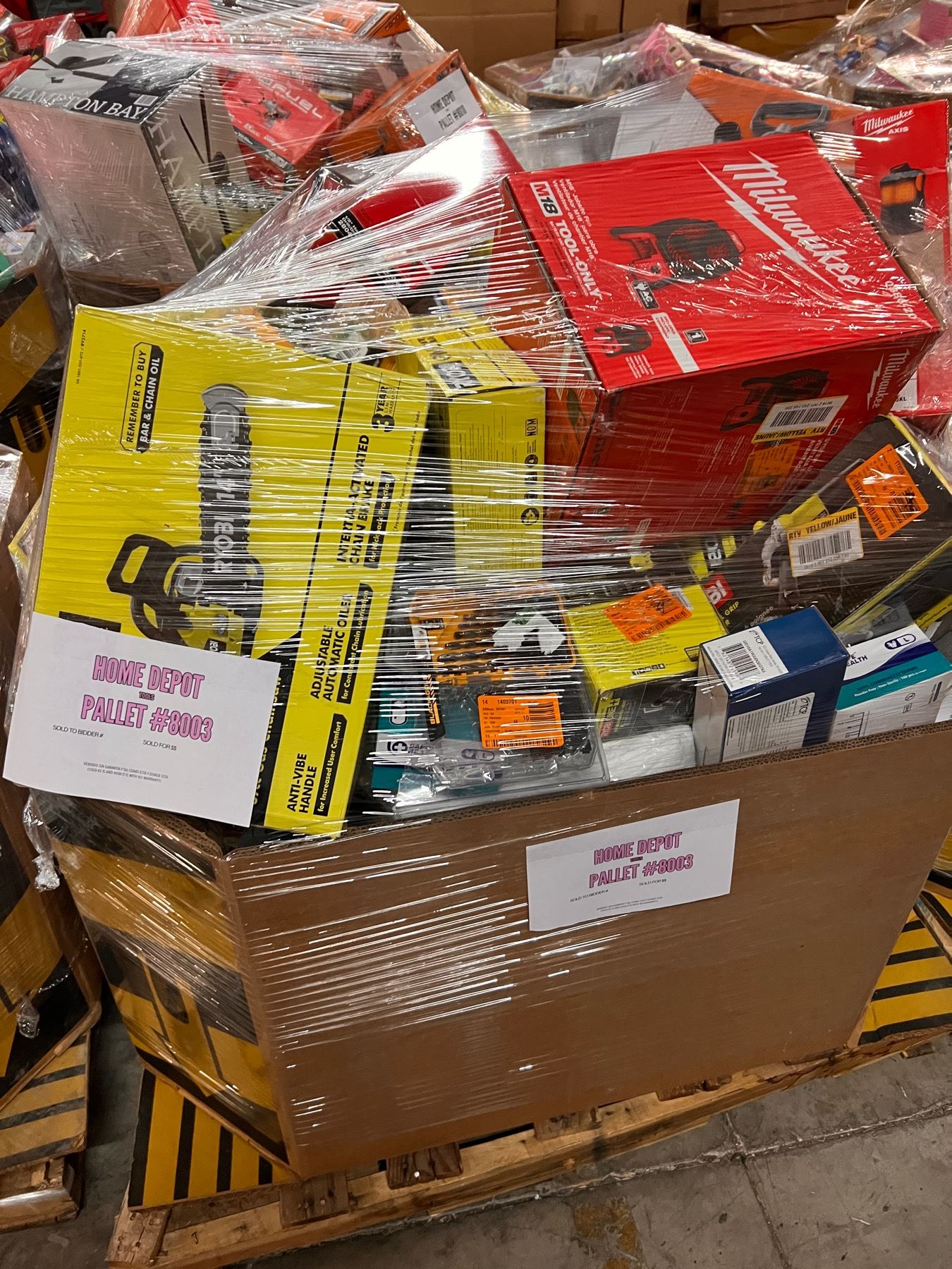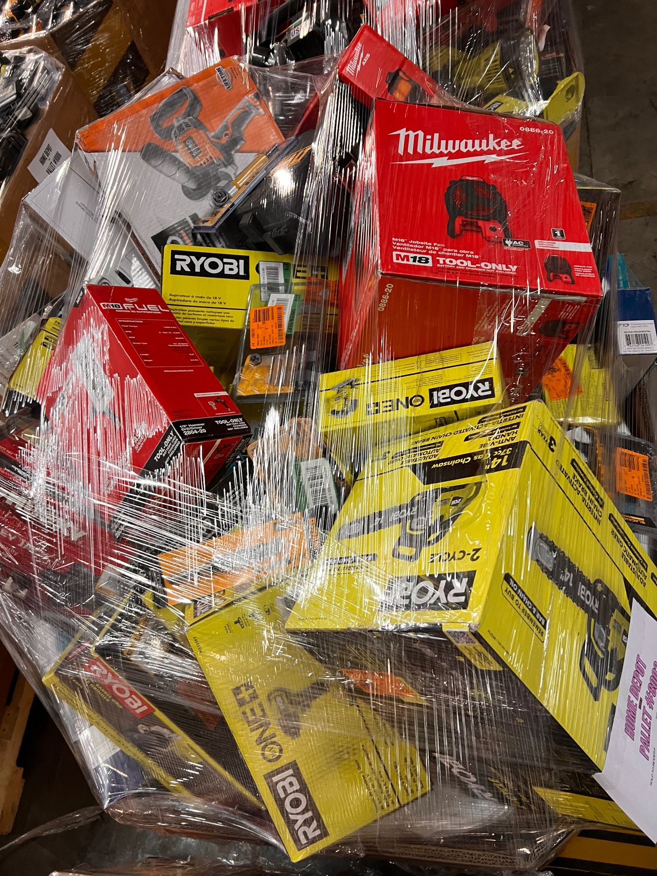 Pallet con Mercancia de Home Depot, la cual incluye Herramientas y Home Improvements. Toda la mercancia es clasificada como retornos y liquidaciones. Usted es responsable de venir por su mercancia al lugar donde la subasta se llevaba acabo o de los gastos de su traslado mediante envío el cual usted también es responsable de elegir la compañía de envíos.