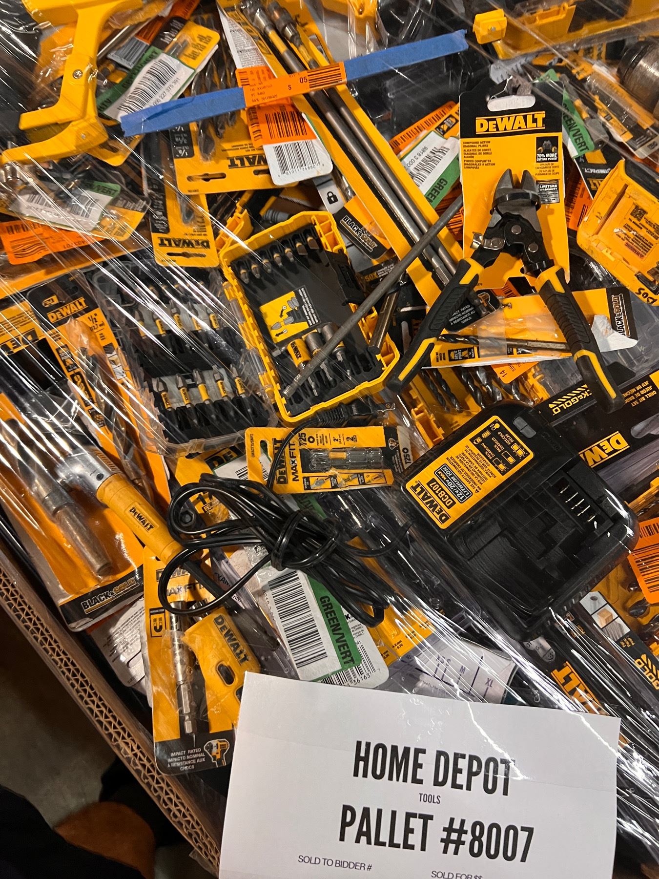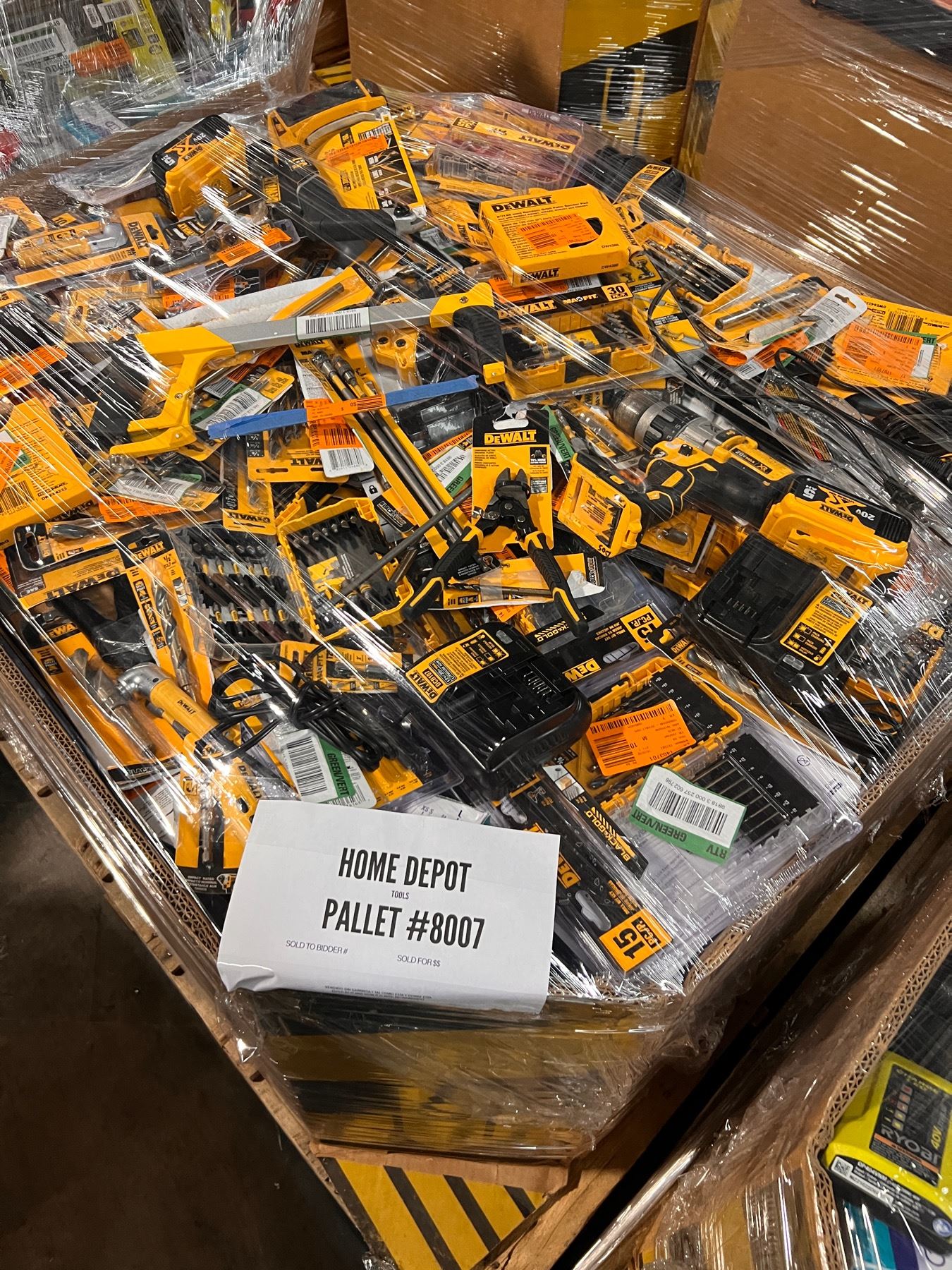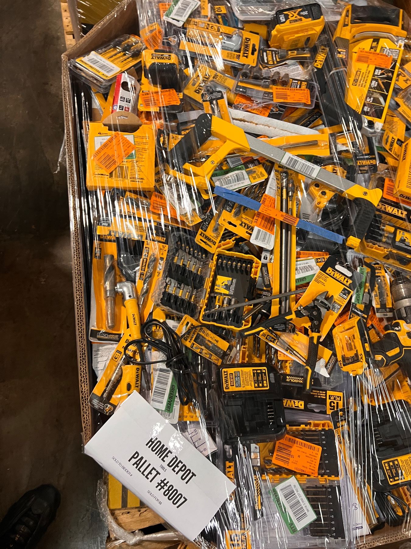 Pallet con Mercancia de Home Depot, la cual incluye Herramientas y Home Improvements. Toda la mercancia es clasificada como retornos y liquidaciones. Usted es responsable de venir por su mercancia al lugar donde la subasta se llevaba acabo o de los gastos de su traslado mediante envío el cual usted también es responsable de elegir la compañía de envíos.