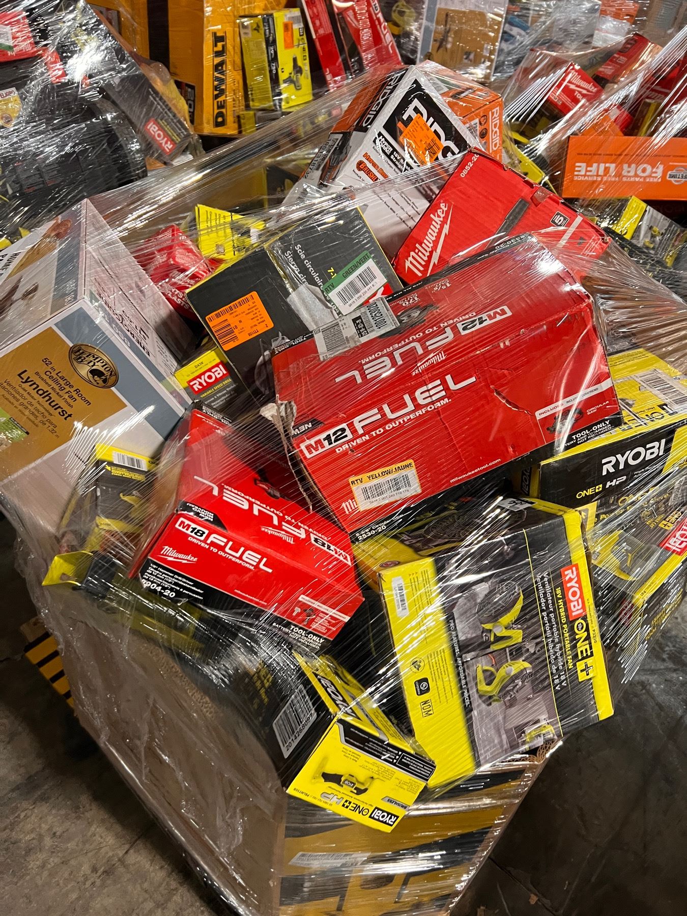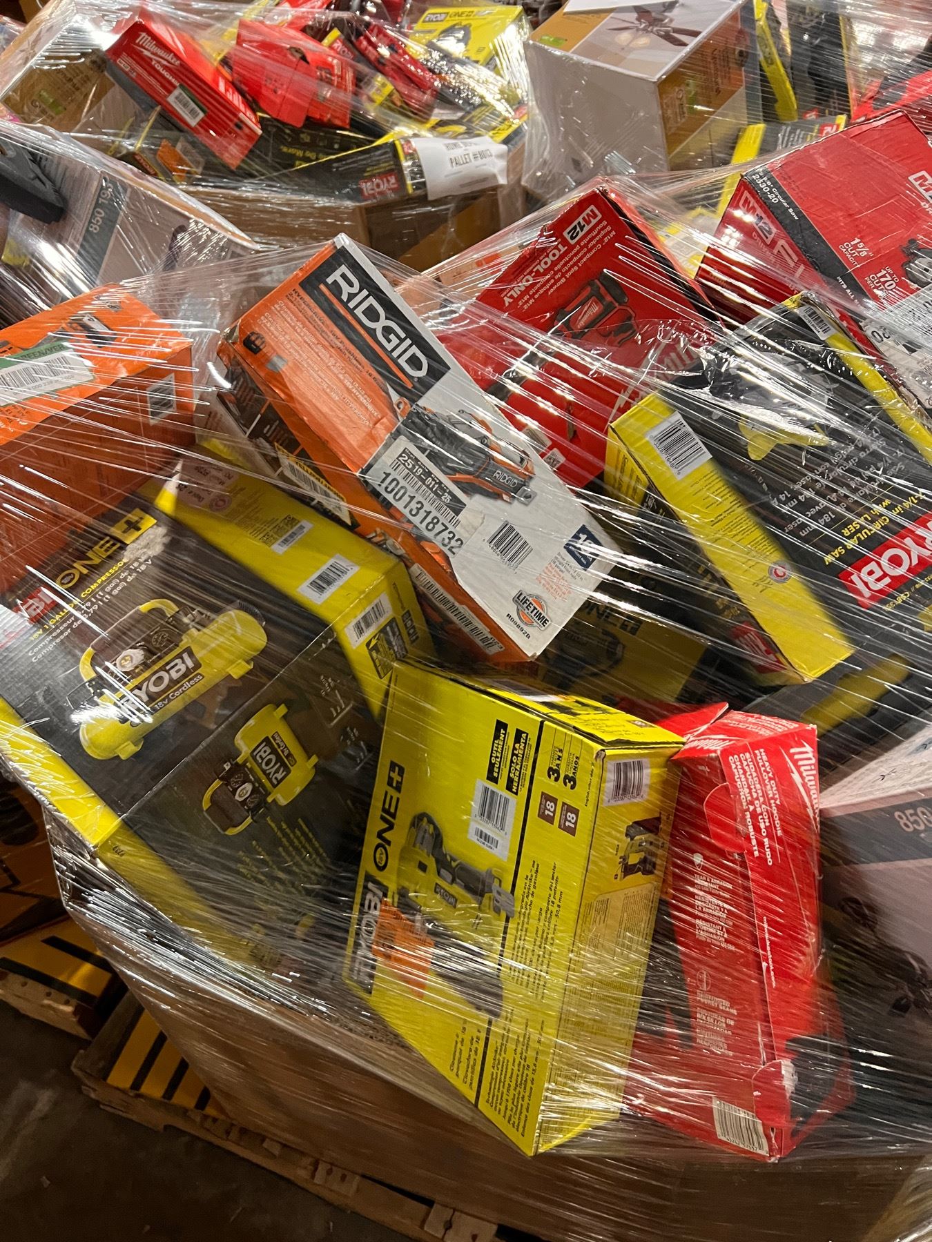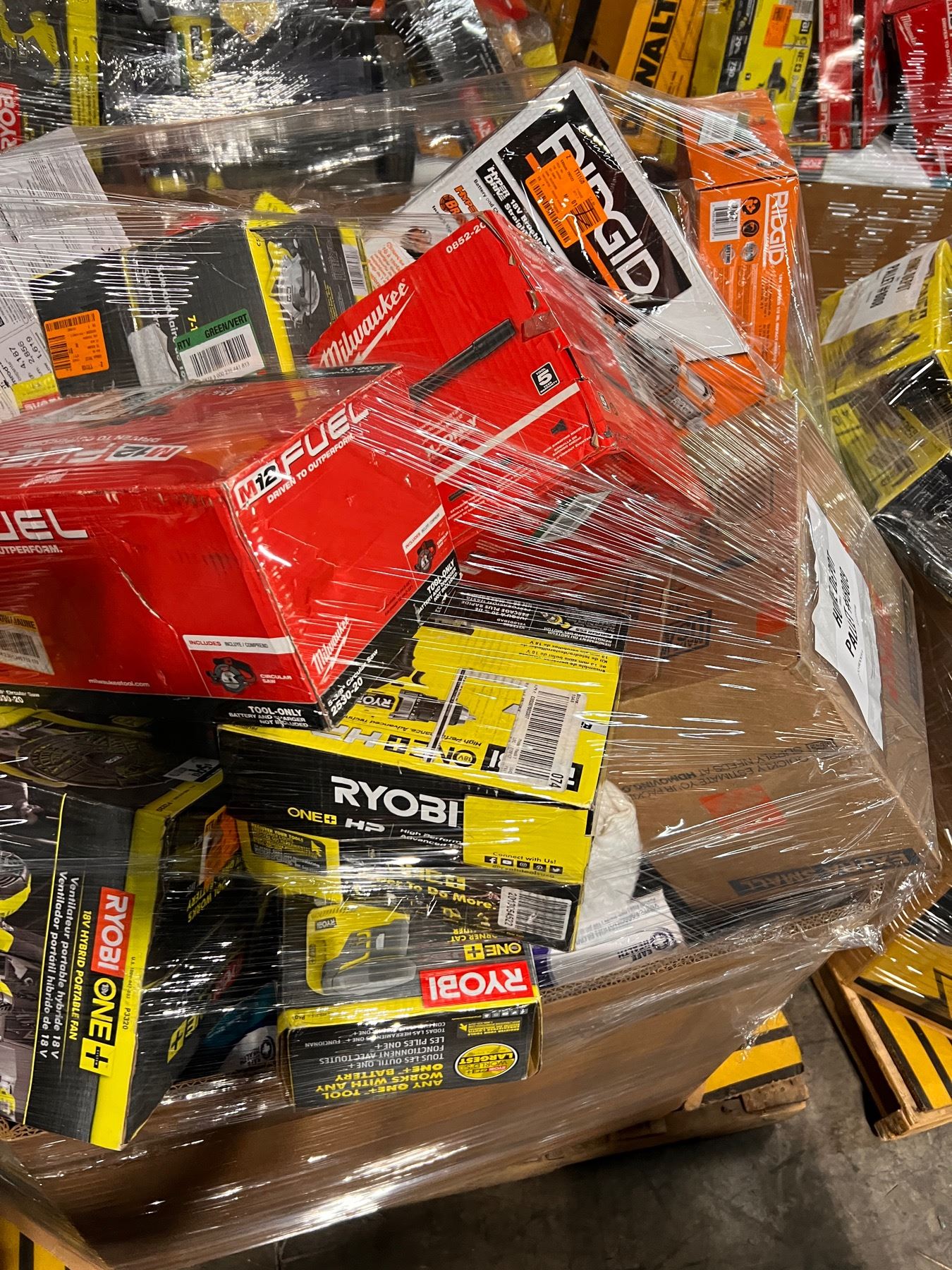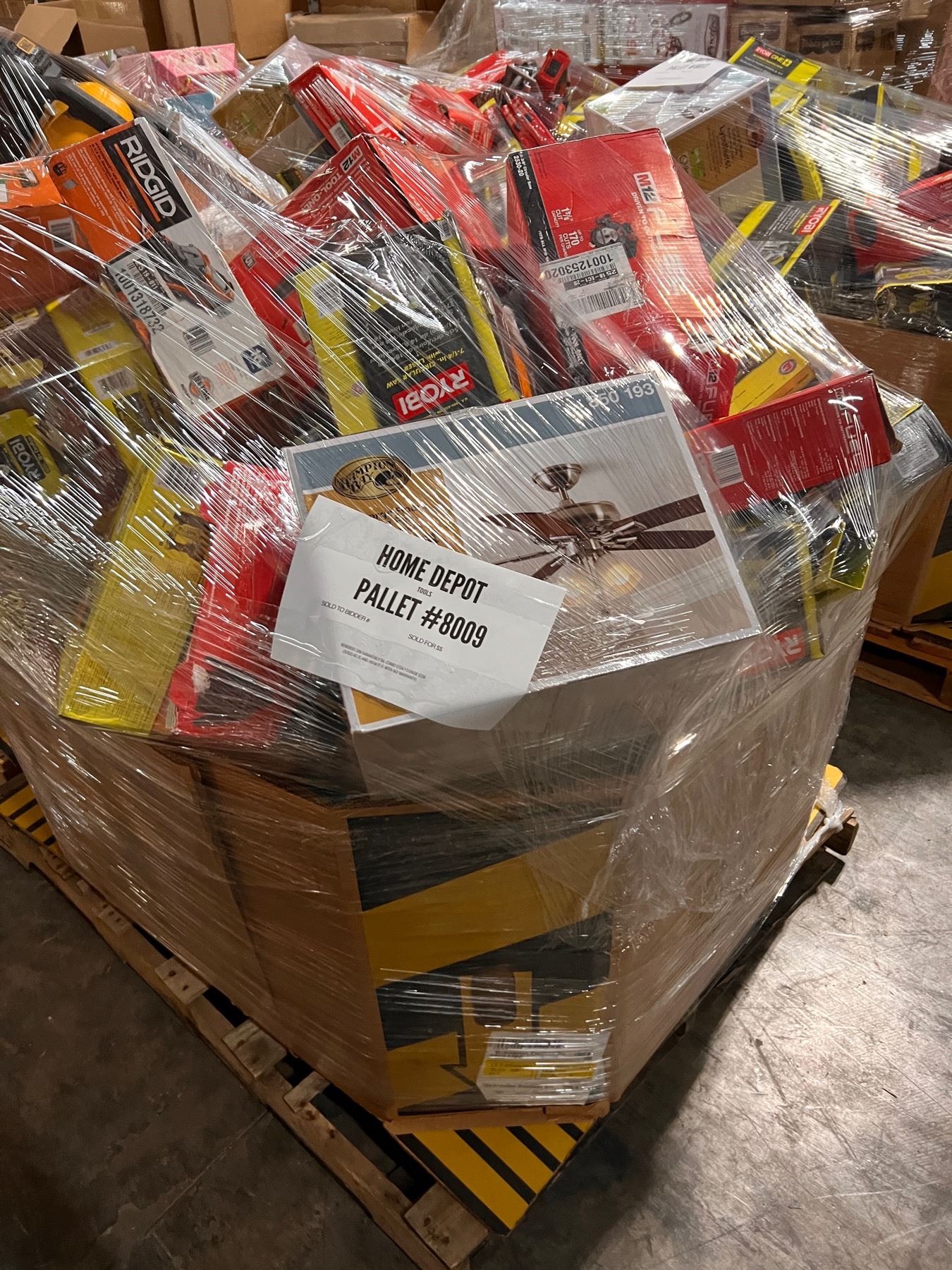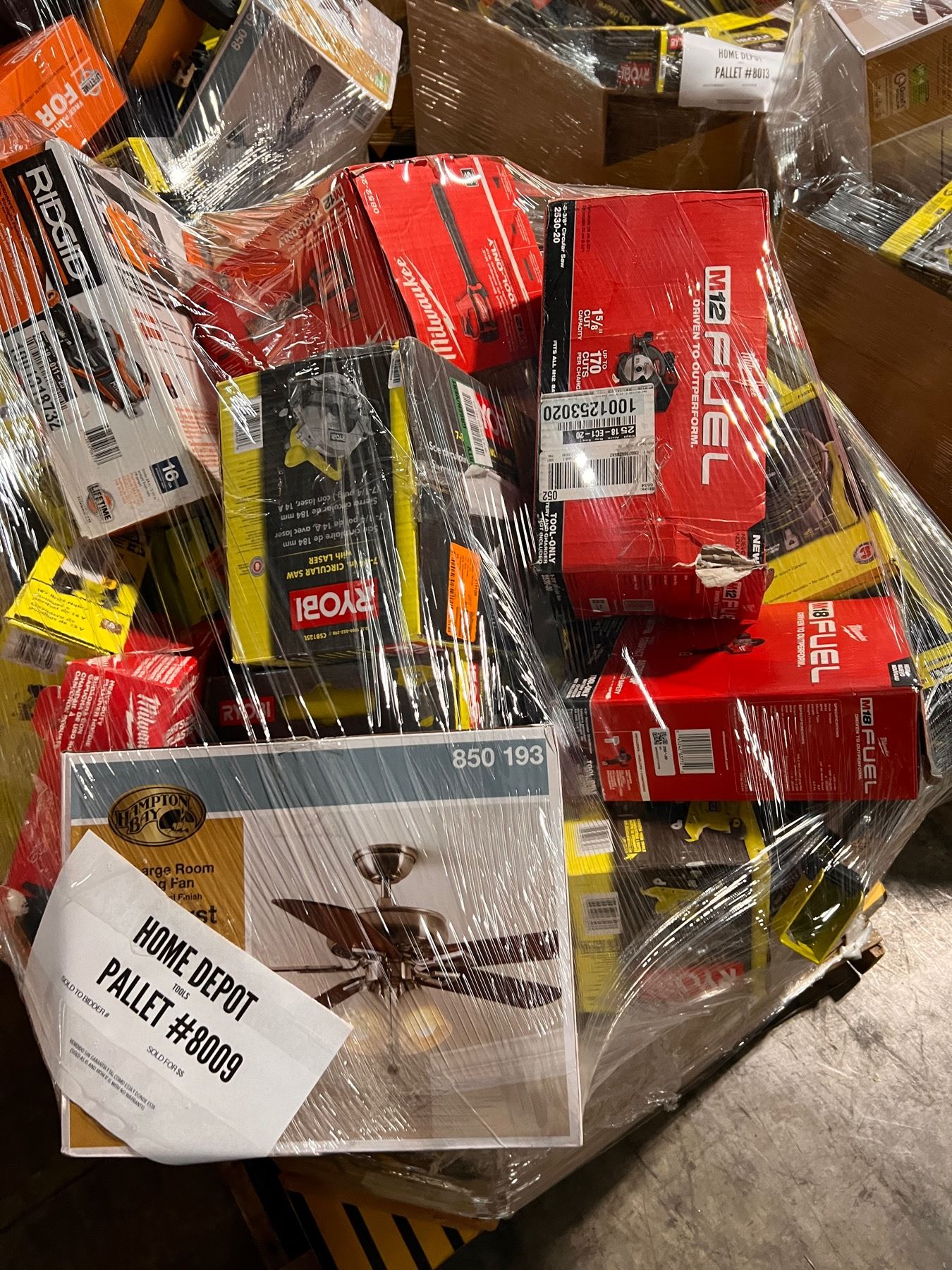 Pallet con Mercancia de Home Depot, la cual incluye Herramientas y Home Improvements. Toda la mercancia es clasificada como retornos y liquidaciones. Usted es responsable de venir por su mercancia al lugar donde la subasta se llevaba acabo o de los gastos de su traslado mediante envío el cual usted también es responsable de elegir la compañía de envíos.