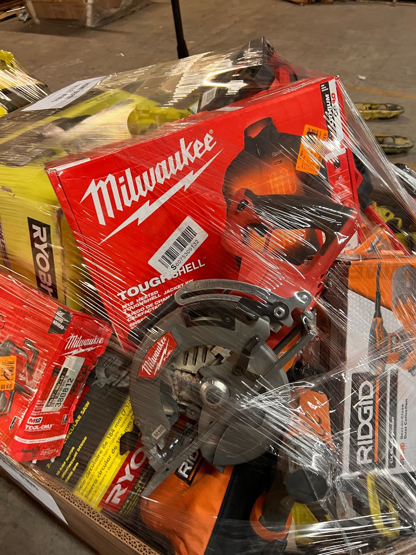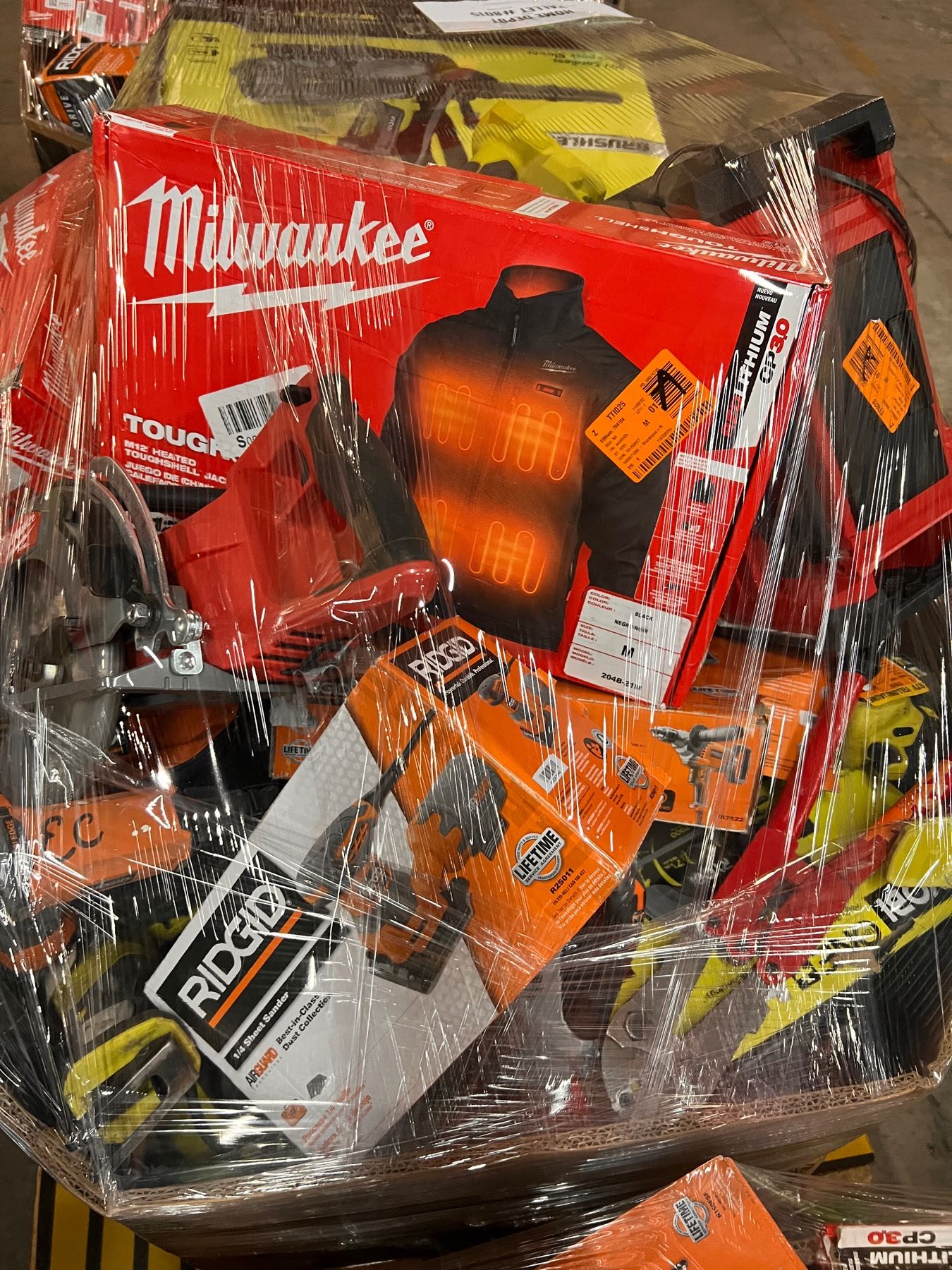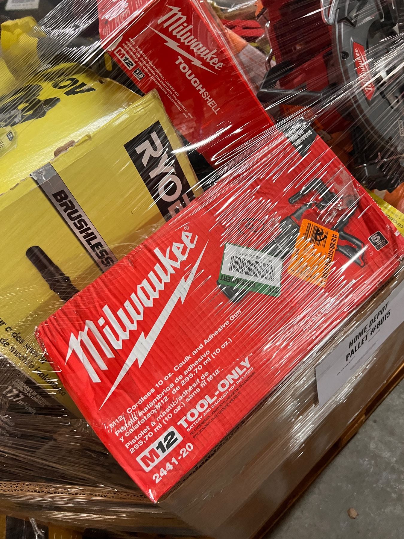 Pallet con Mercancia de Home Depot, la cual incluye Herramientas y Home Improvements. Toda la mercancia es clasificada como retornos y liquidaciones. Usted es responsable de venir por su mercancia al lugar donde la subasta se llevaba acabo o de los gastos de su traslado mediante envío el cual usted también es responsable de elegir la compañía de envíos.