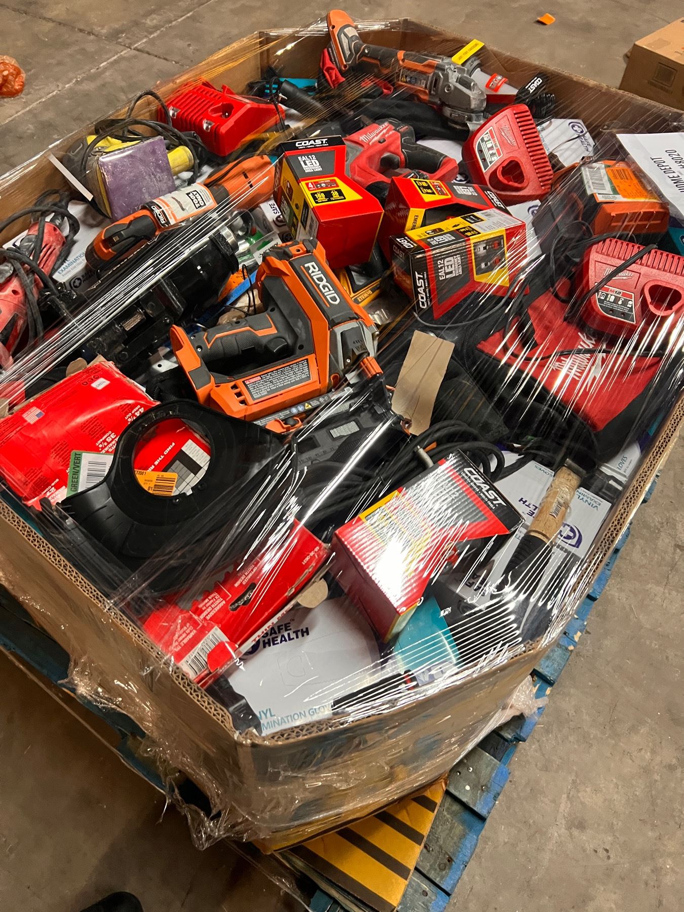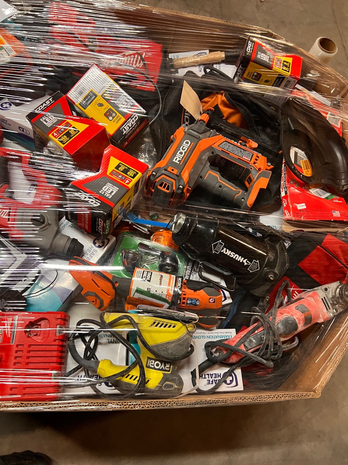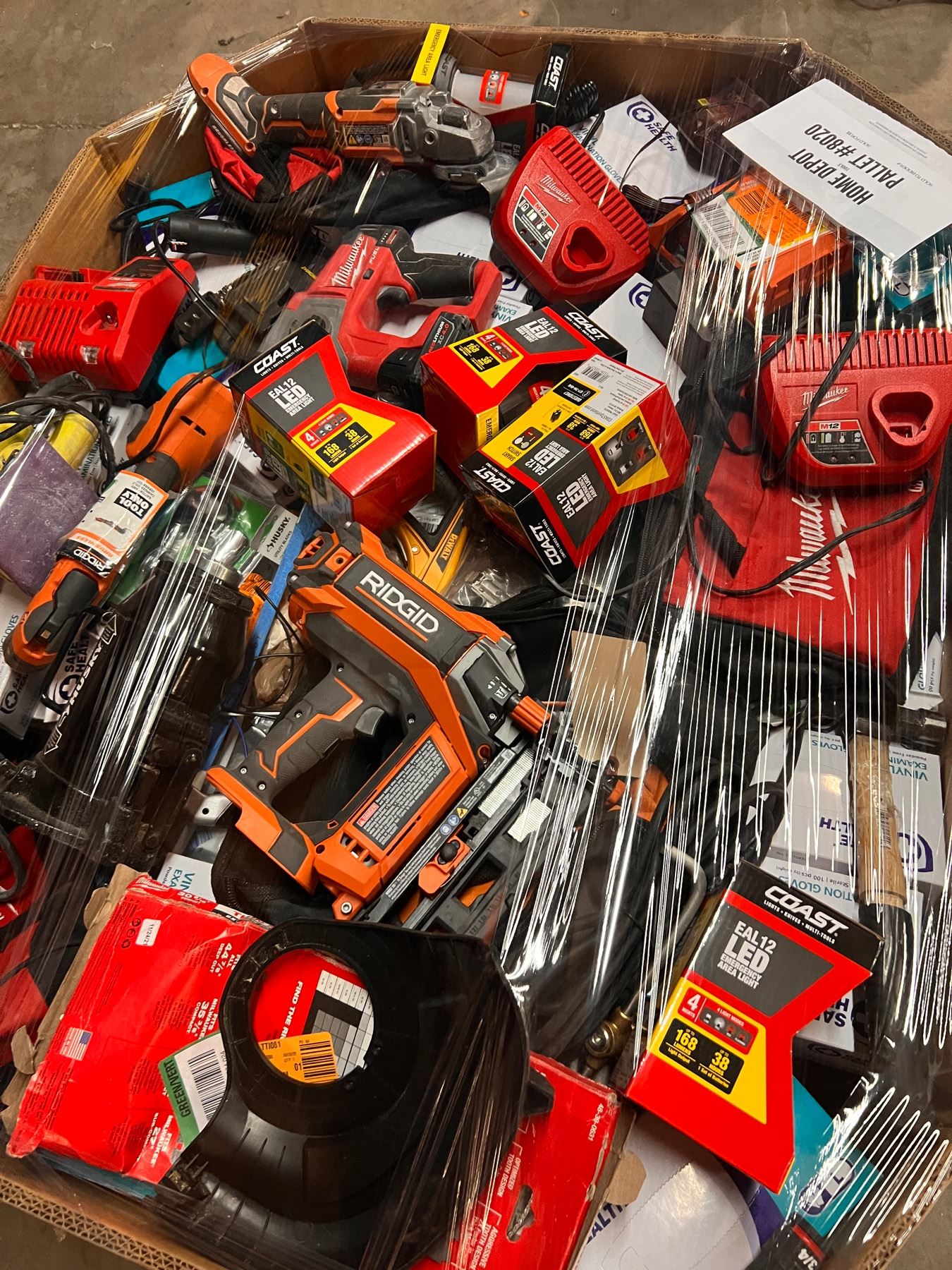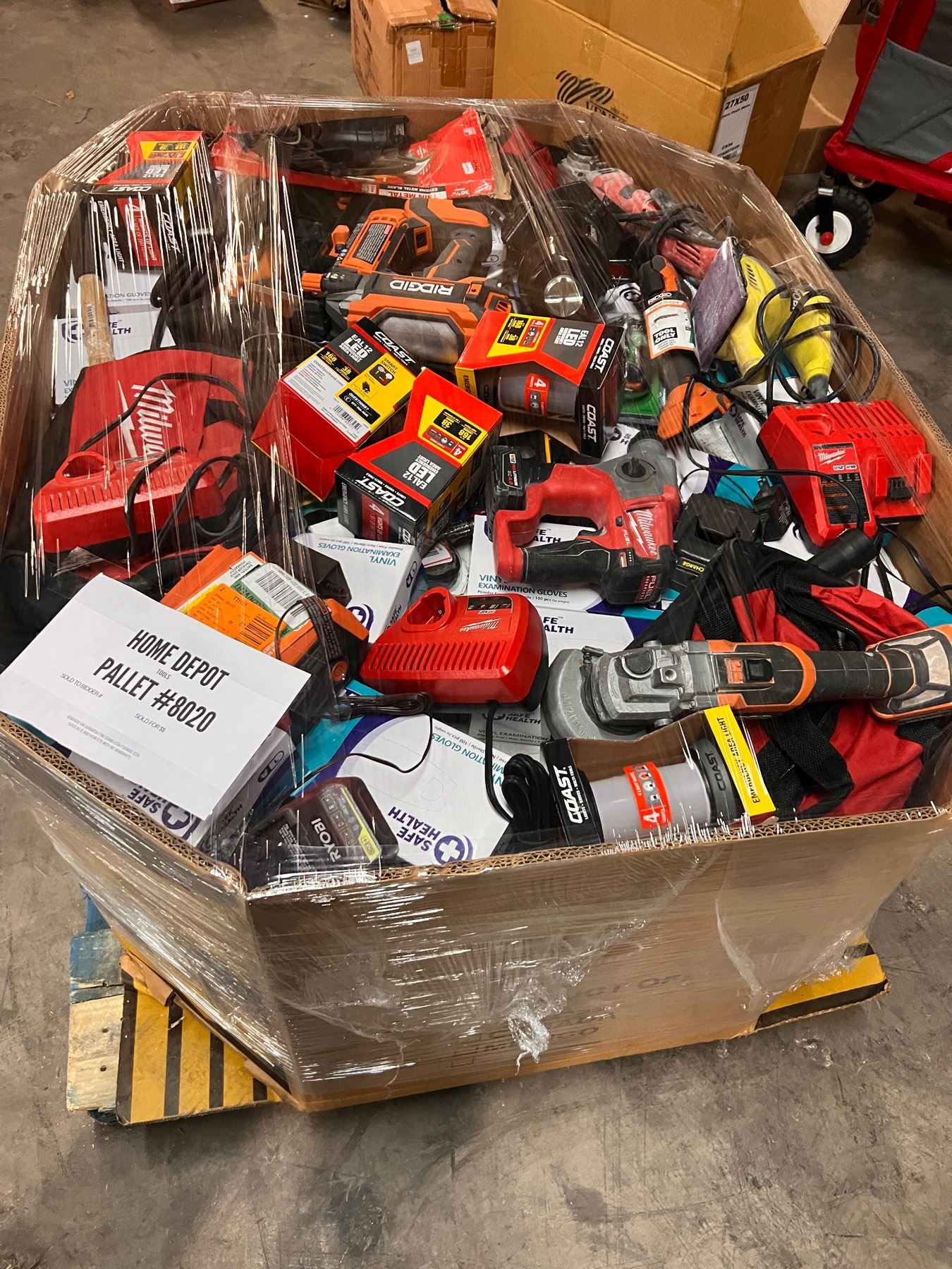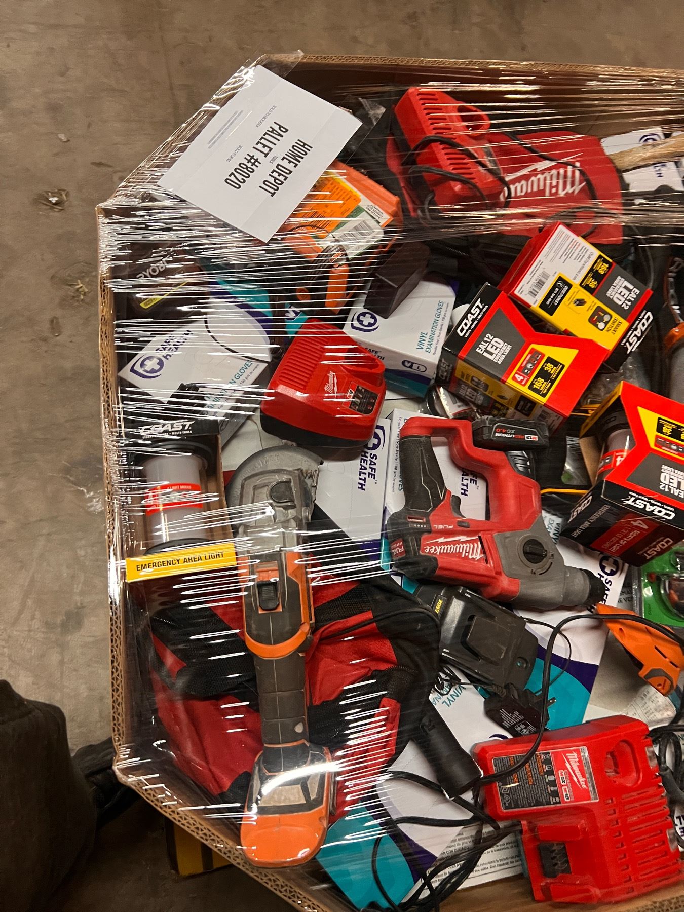 Pallet con Mercancia de Home Depot, la cual incluye Herramientas y Home Improvements. Toda la mercancia es clasificada como retornos y liquidaciones. Usted es responsable de venir por su mercancia al lugar donde la subasta se llevaba acabo o de los gastos de su traslado mediante envío el cual usted también es responsable de elegir la compañía de envíos.