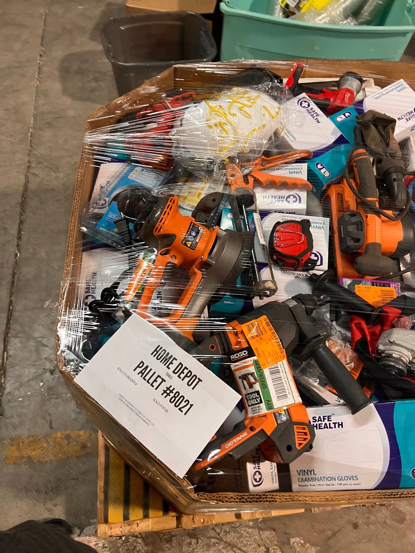 Pallet con Mercancia de Home Depot, la cual incluye Herramientas y Home Improvements. Toda la mercancia es clasificada como retornos y liquidaciones. Usted es responsable de venir por su mercancia al lugar donde la subasta se llevaba acabo o de los gastos de su traslado mediante envío el cual usted también es responsable de elegir la compañía de envíos.