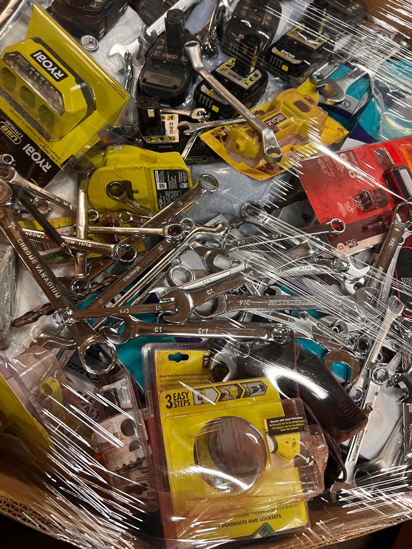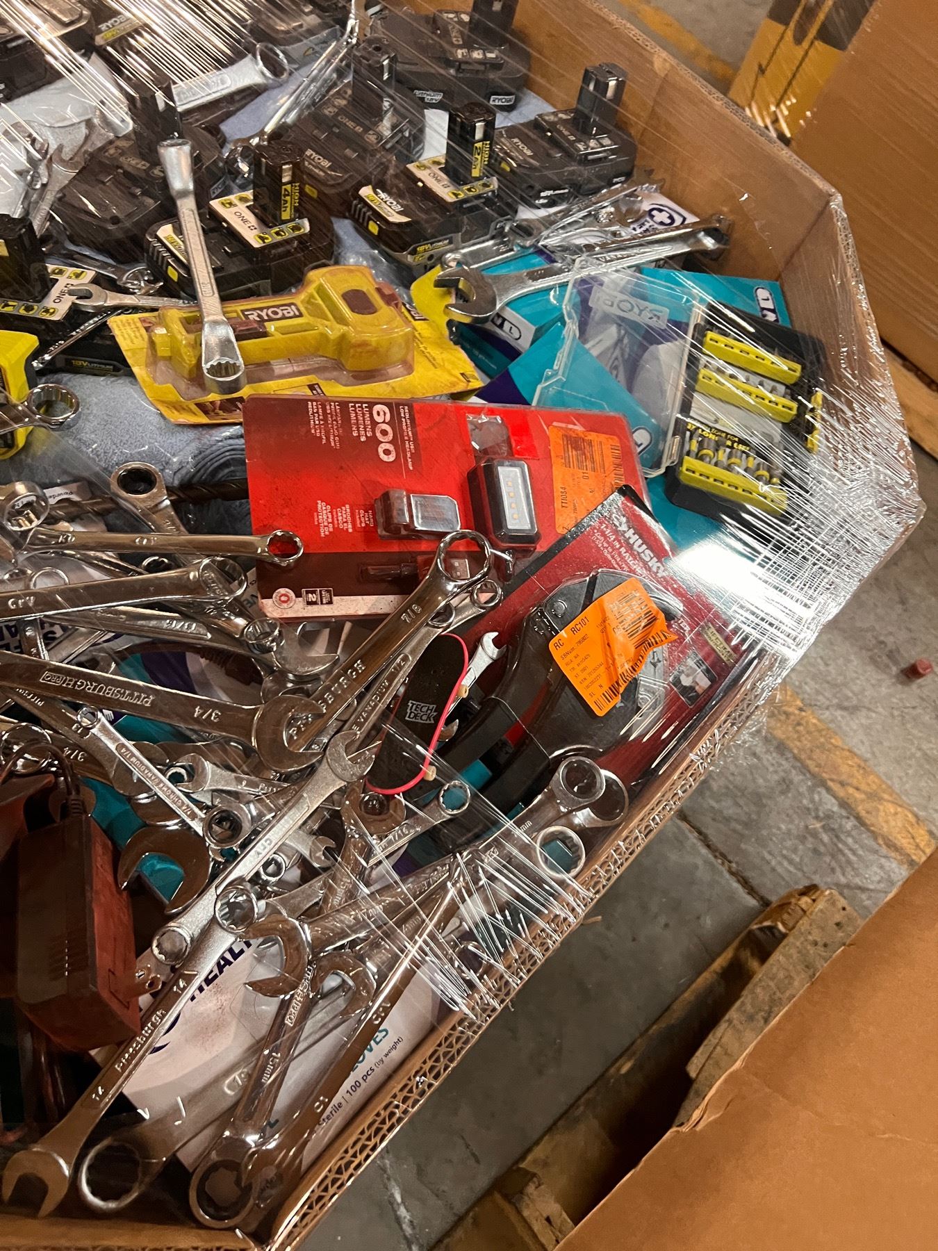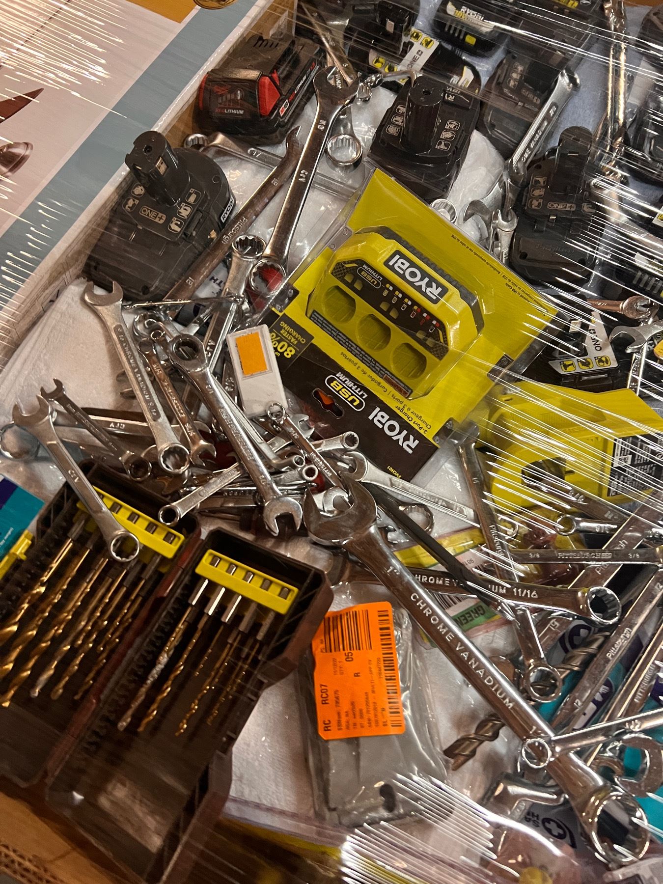 Pallet con Mercancia de Home Depot, la cual incluye Herramientas y Home Improvements. Toda la mercancia es clasificada como retornos y liquidaciones. Usted es responsable de venir por su mercancia al lugar donde la subasta se llevaba acabo o de los gastos de su traslado mediante envío el cual usted también es responsable de elegir la compañía de envíos.