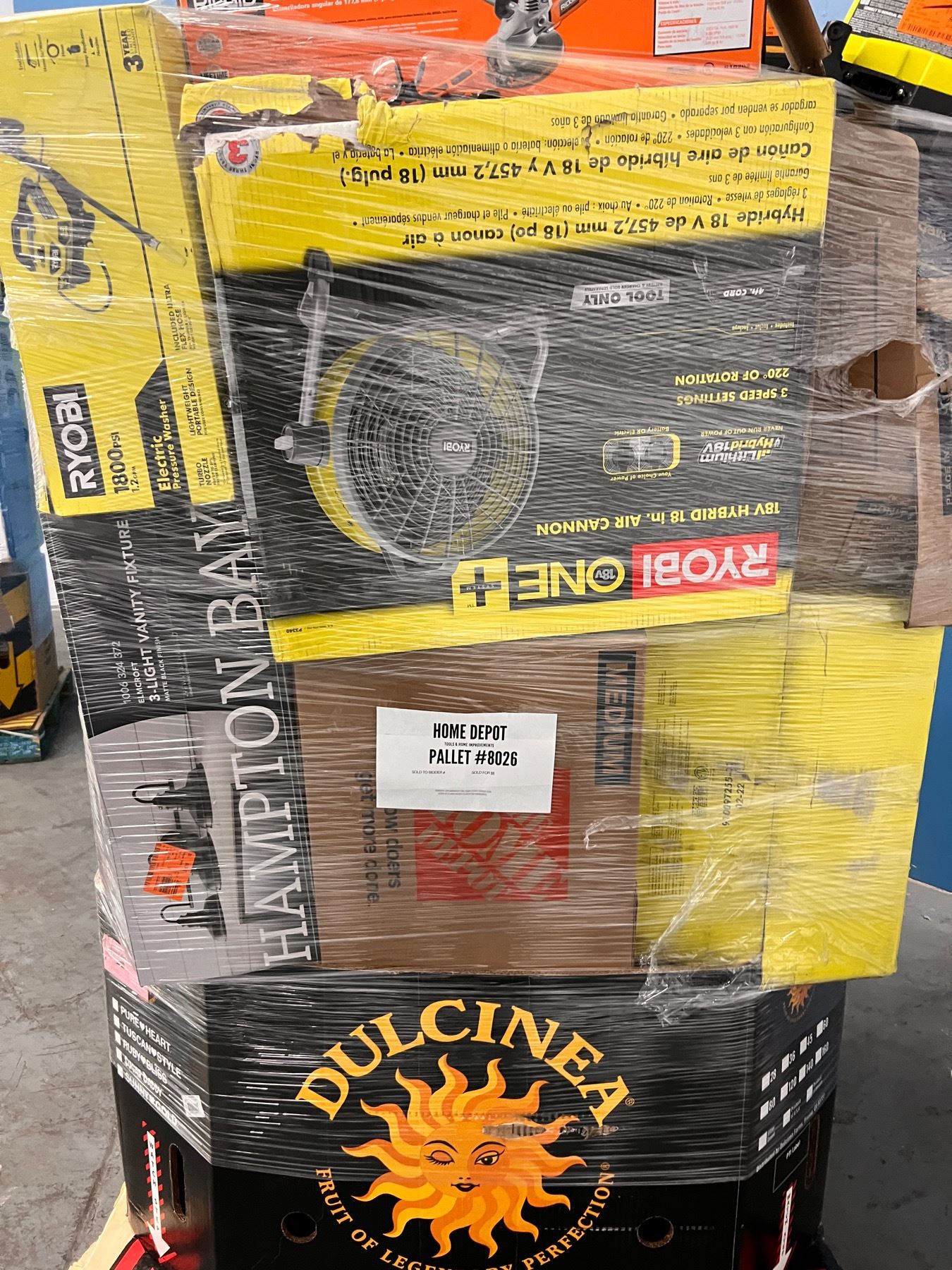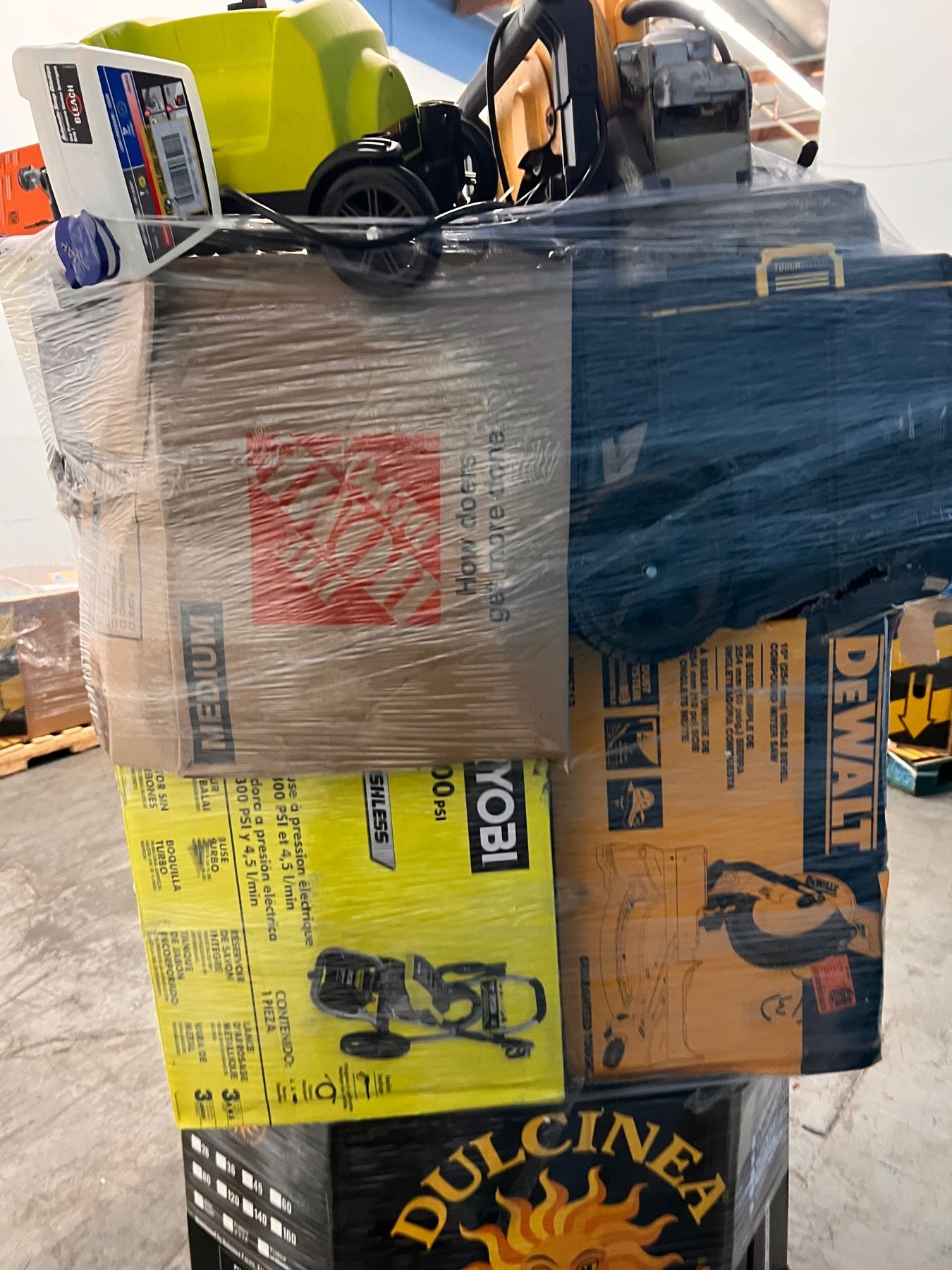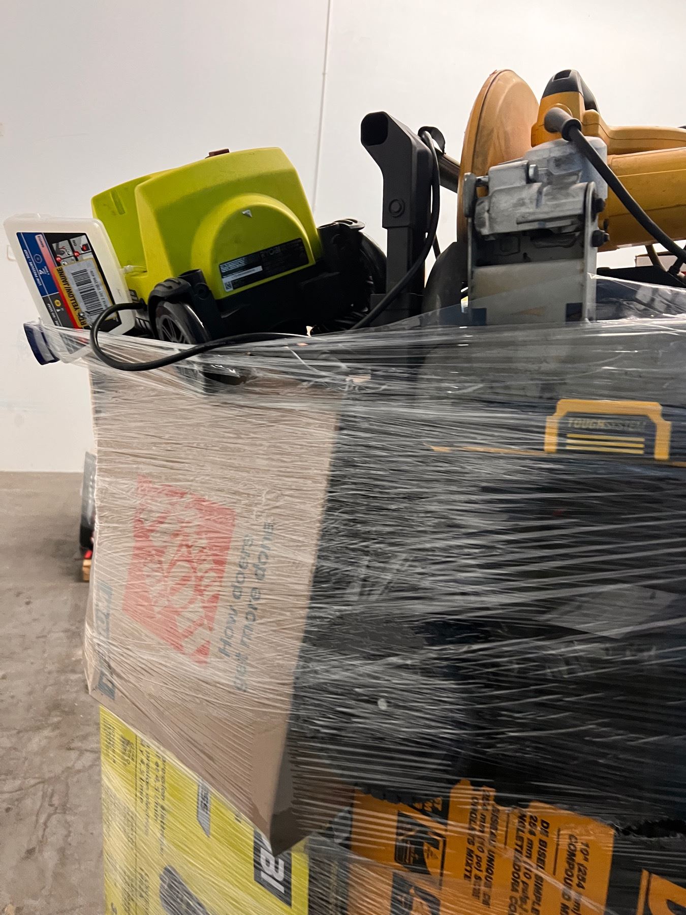 Pallet con Mercancia de Home Depot, la cual incluye Herramientas y Home Improvements. Toda la mercancia es clasificada como retornos y liquidaciones. Usted es responsable de venir por su mercancia al lugar donde la subasta se llevaba acabo o de los gastos de su traslado mediante envío el cual usted también es responsable de elegir la compañía de envíos.
